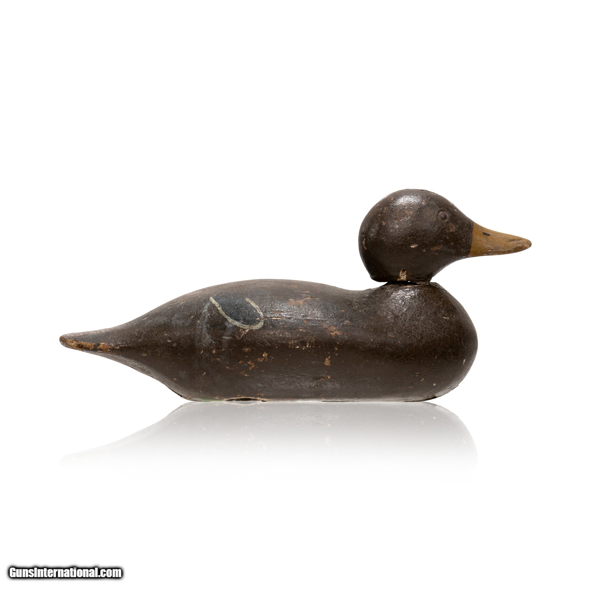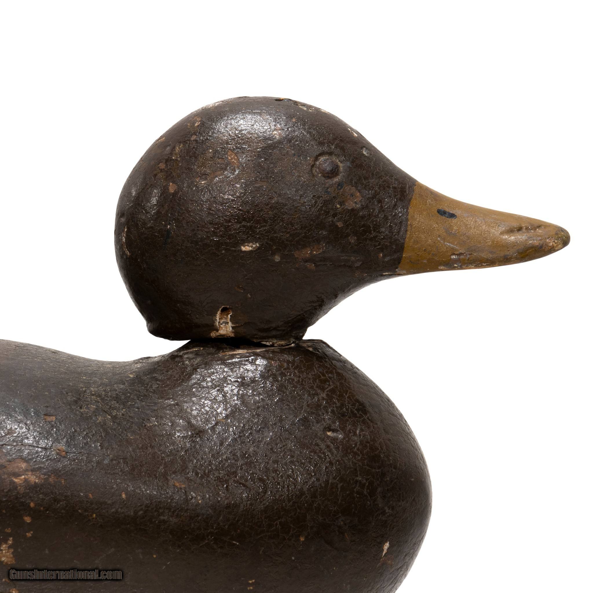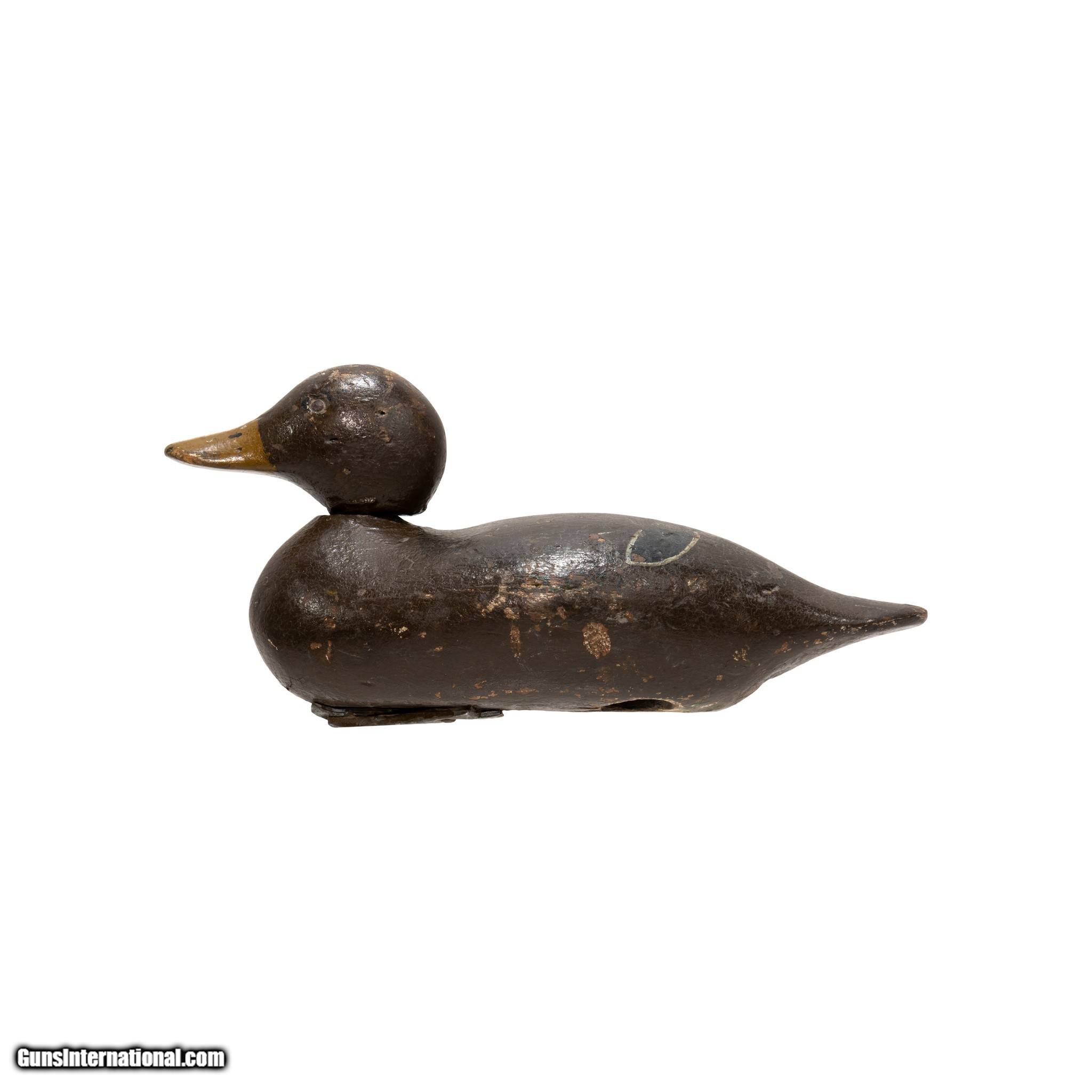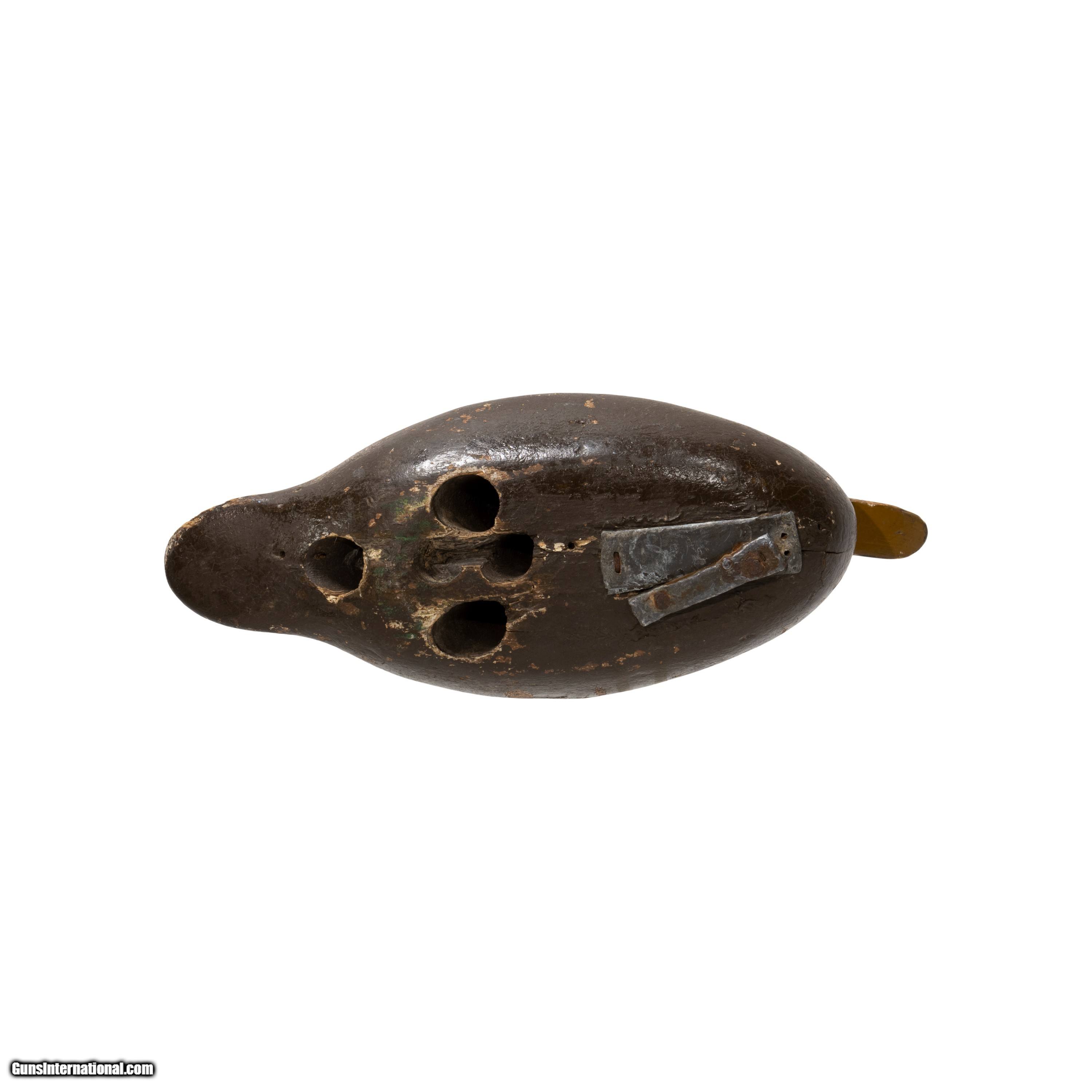 Description: Mason Detroit grade tack eyed mallard hen decoy. Multiple coats of hunter paint, featuring brown base color with gold, blue, and white details. Used in Washington. Head loose. Would make a great addition to a hunting, sporting good, or decoy collection. Perfect accent piece for a rustic home, cabin, or hunting lodge. Size: 14" x 7" Family Owned & Operated Cisco’s Gallery deals in the rare, exceptional, and one-of-a-kind pieces that define the history of America and the Old West. Our pieces range from American Indian to Cowboy Western and include original items of everyday life, commerce, art, and warfare that tamed America’s frontier. Our 14,000 square foot gallery opened in 1996 in beautiful Coeur d’Alene, Idaho. Personal Service Cisco’s operates on old fashioned values – honesty and integrity, and all of our items are backed by our money back guarantee. We appreciate the opportunity to earn your business. Whether you desire assistance with a jewelry purchase, choosing a gift, identification, or even selling – we hope to be your trusted source. SOLD |