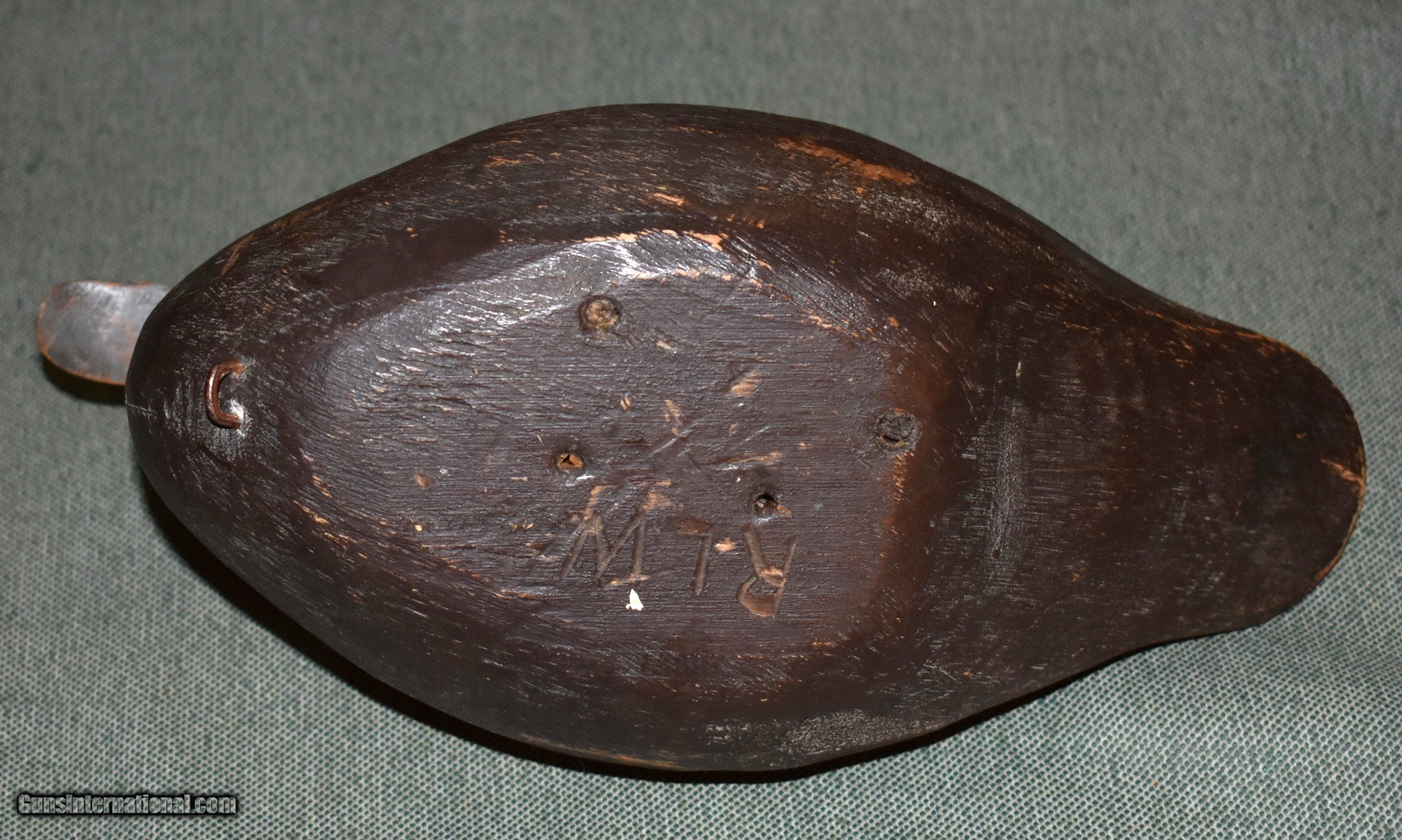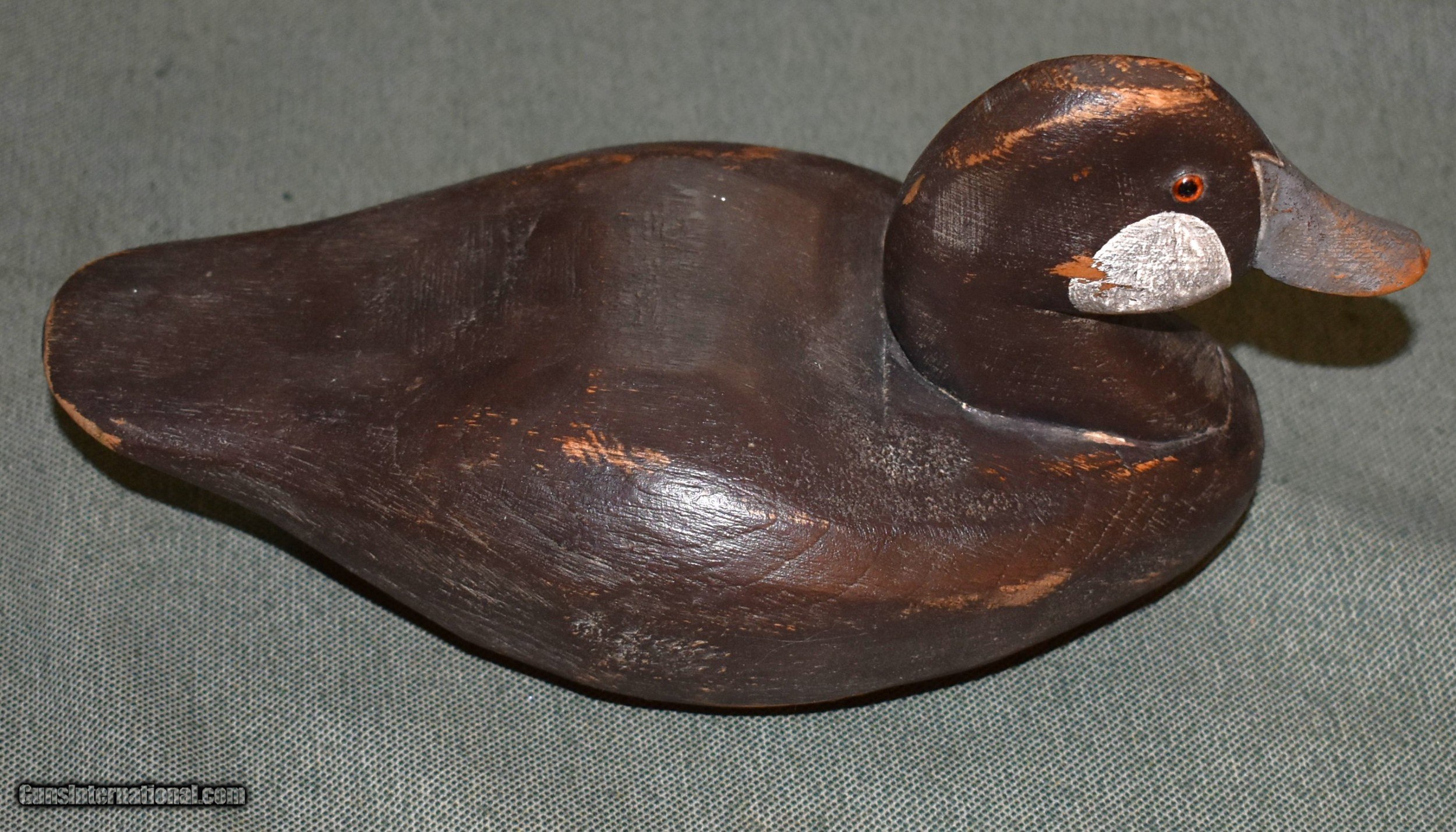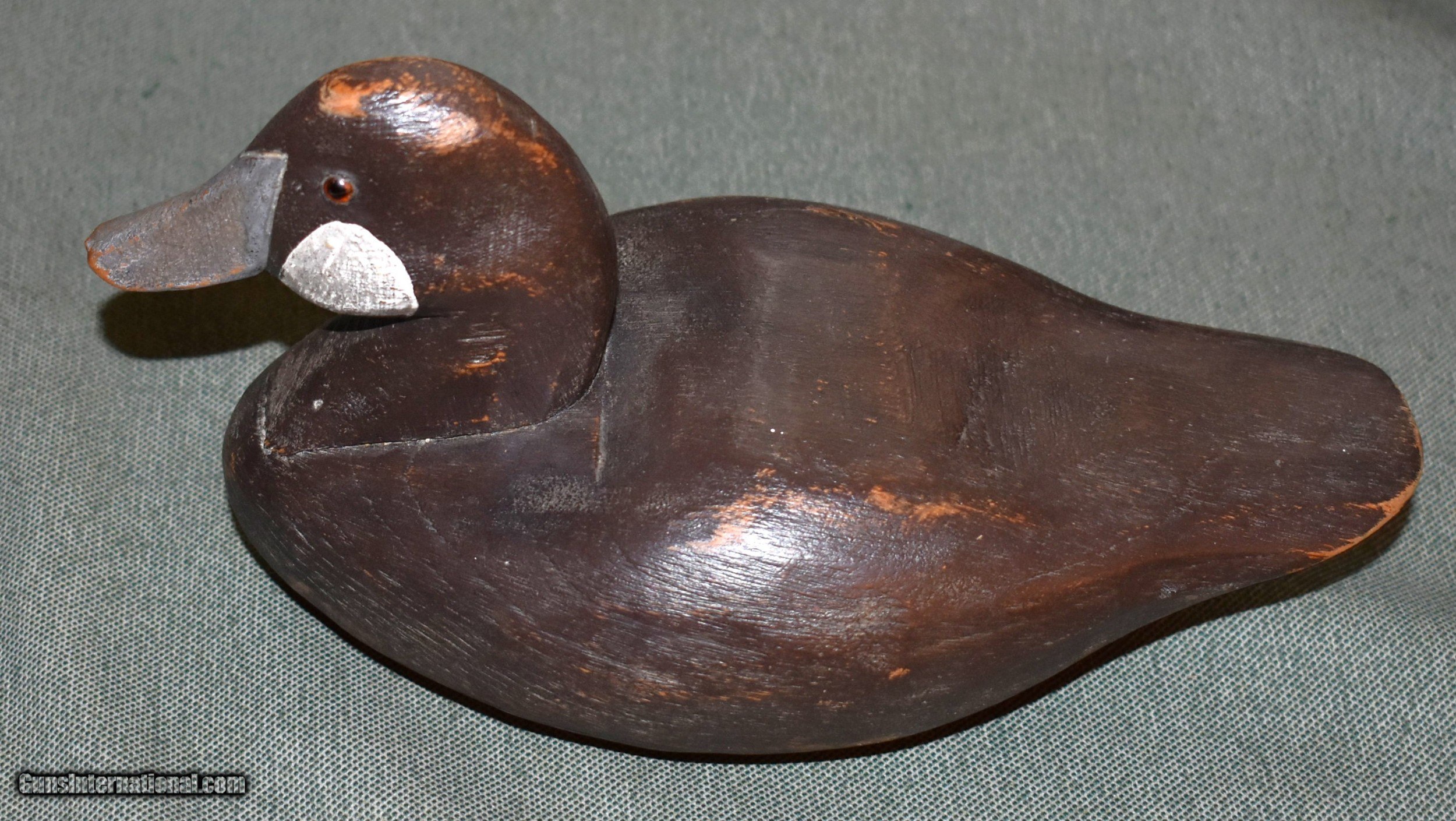 Description: A Ruddy Duck drake hand carved in the 1940s. Glass eyes and original paint. A nice working bird that you seldom see. 91/2" long. Price includes shipping. SOLD |