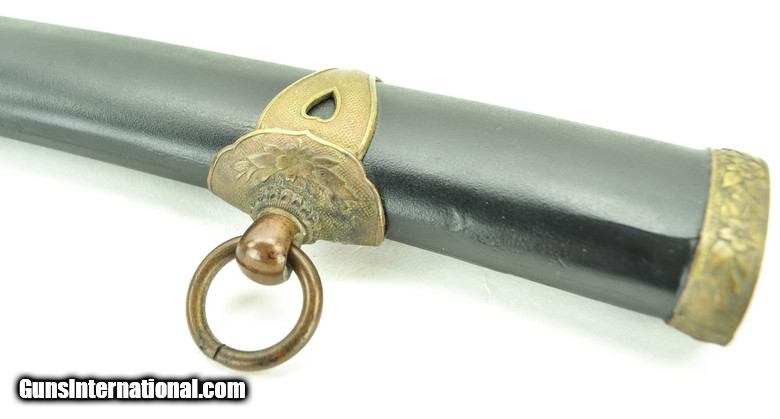 A Mune mitsu Gendaito signed: Mishimani Mai Oite Moriya Mune Mitsu Koreo Tsukuru. Date: Showa Ju Ku Nen Roku Gatsu Hi. This blade was forged by Mune Mitsu in June of 1944 in Shimane Province. It is 65.6cm or 25 13/16” long. It is ubu with 1 hole in the military mounts. Mune Mitsu is listed in Hawley’s on page 526 (Mun 234). He was relicensed after the war in 1954. He is listed in the Nihonto Meikan on page 452. , Gendaito Meikan on page 103, and Toko Taikan on page 630. Despite some pitting the hamon and hada are clearly visible.
