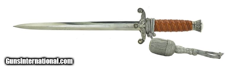 Description: German Army Officer’s Dagger. Ricosso is marked “Eichhorn Solingen”. Blade is very good. Very good overall with hanger. SOLD |