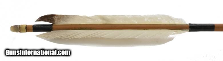 Description: Japanese arrow. White and gray fletching with hunting arrowhead tips. SOLD |