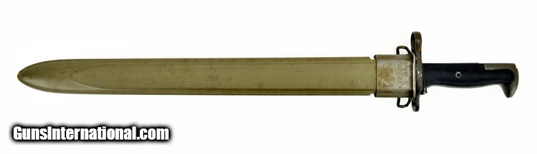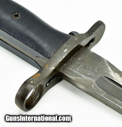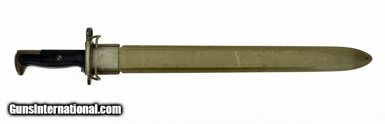 U.S. model 1905/42. Bayonet produced by Oneida LTD. in 1942. Blade has been sharpened at some point. Scabbard is U.S. Navy marked. Good overall condition.