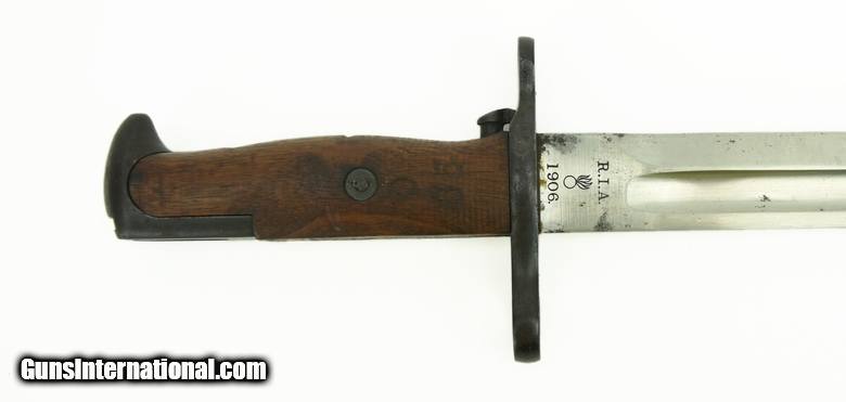 U.S. Model 1905 Bayonet. Blade is dated 1906 and was manufactured by Rock Island Arsenal. Excellent condition.