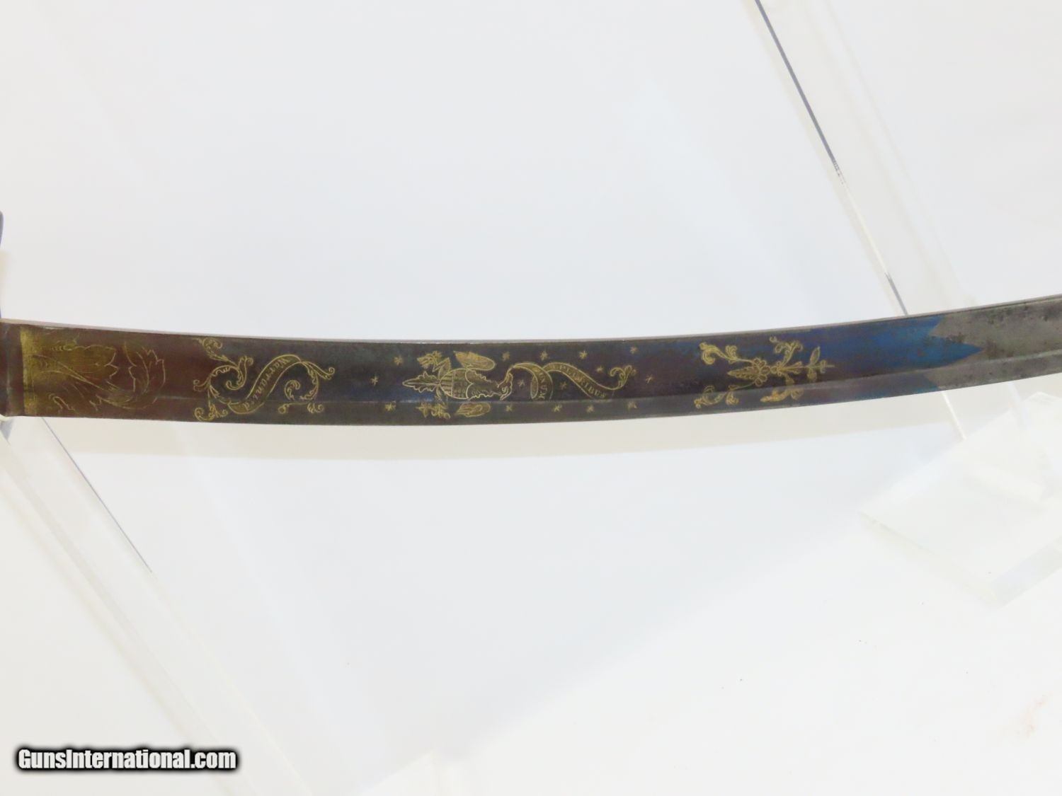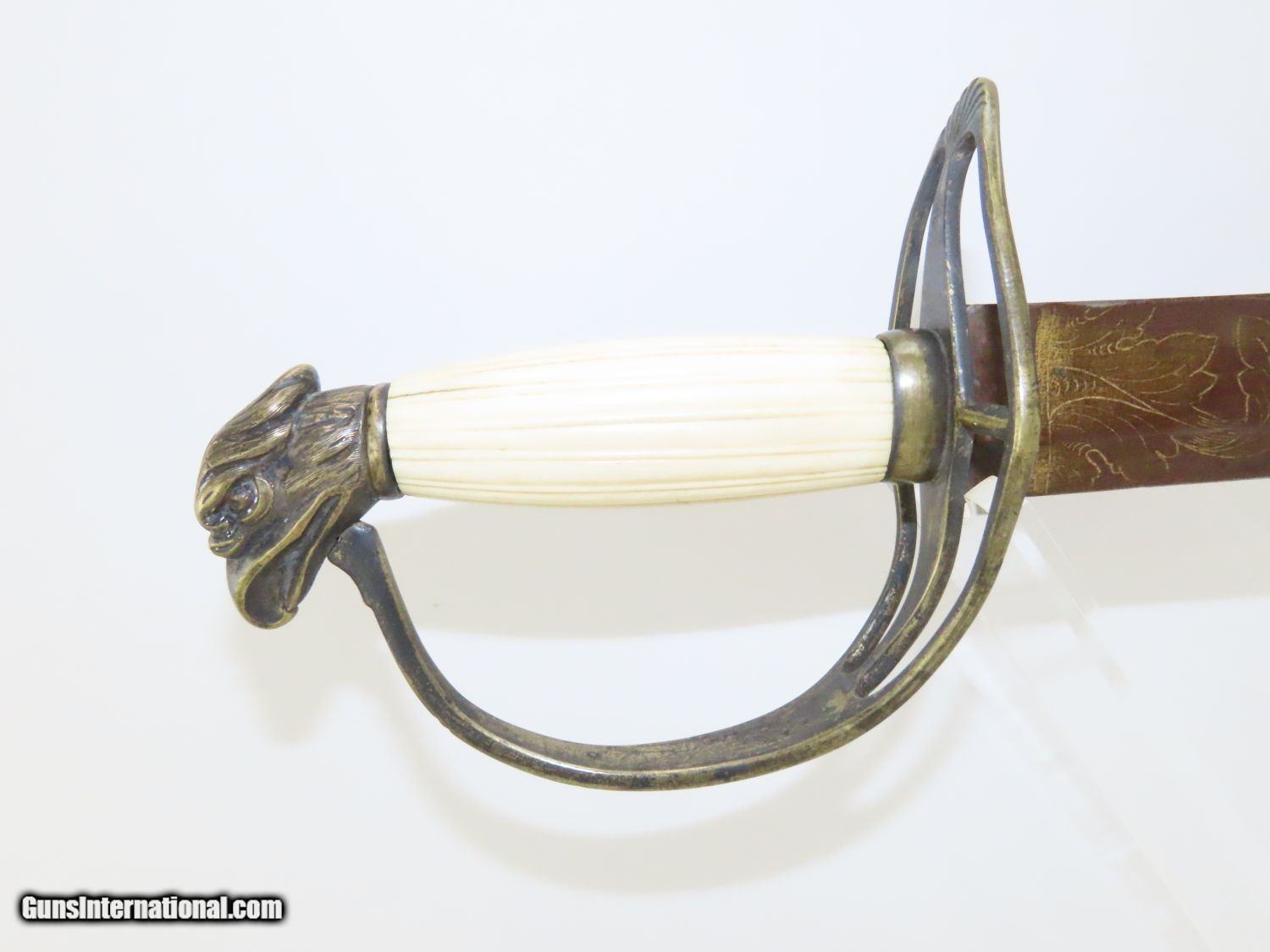 Patriotic EARLY AMERICAN Antique OFFICER’S SABER with EAGLE HEAD POMMEL IVORY Grip, Nitre Blue and GOLD Finish