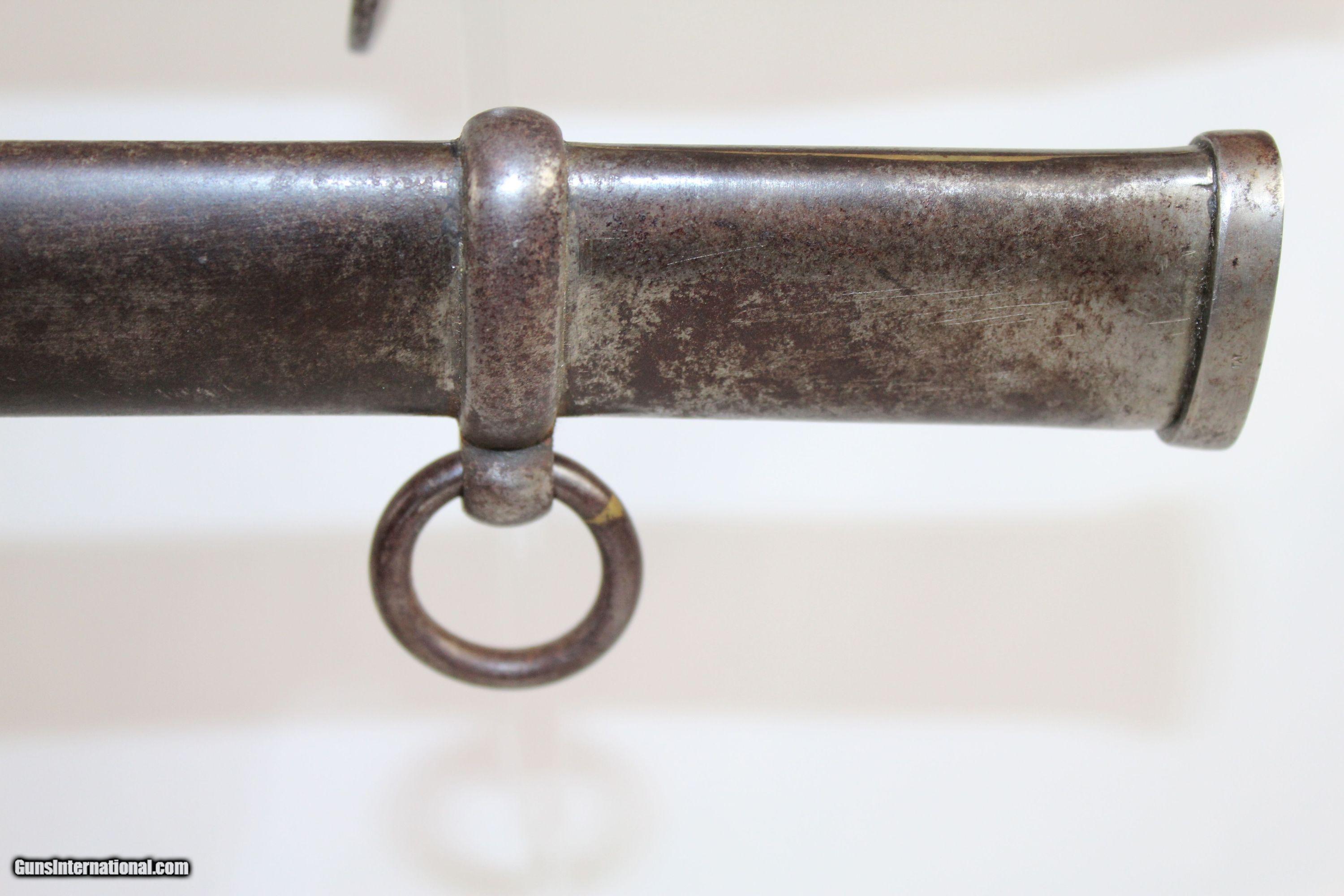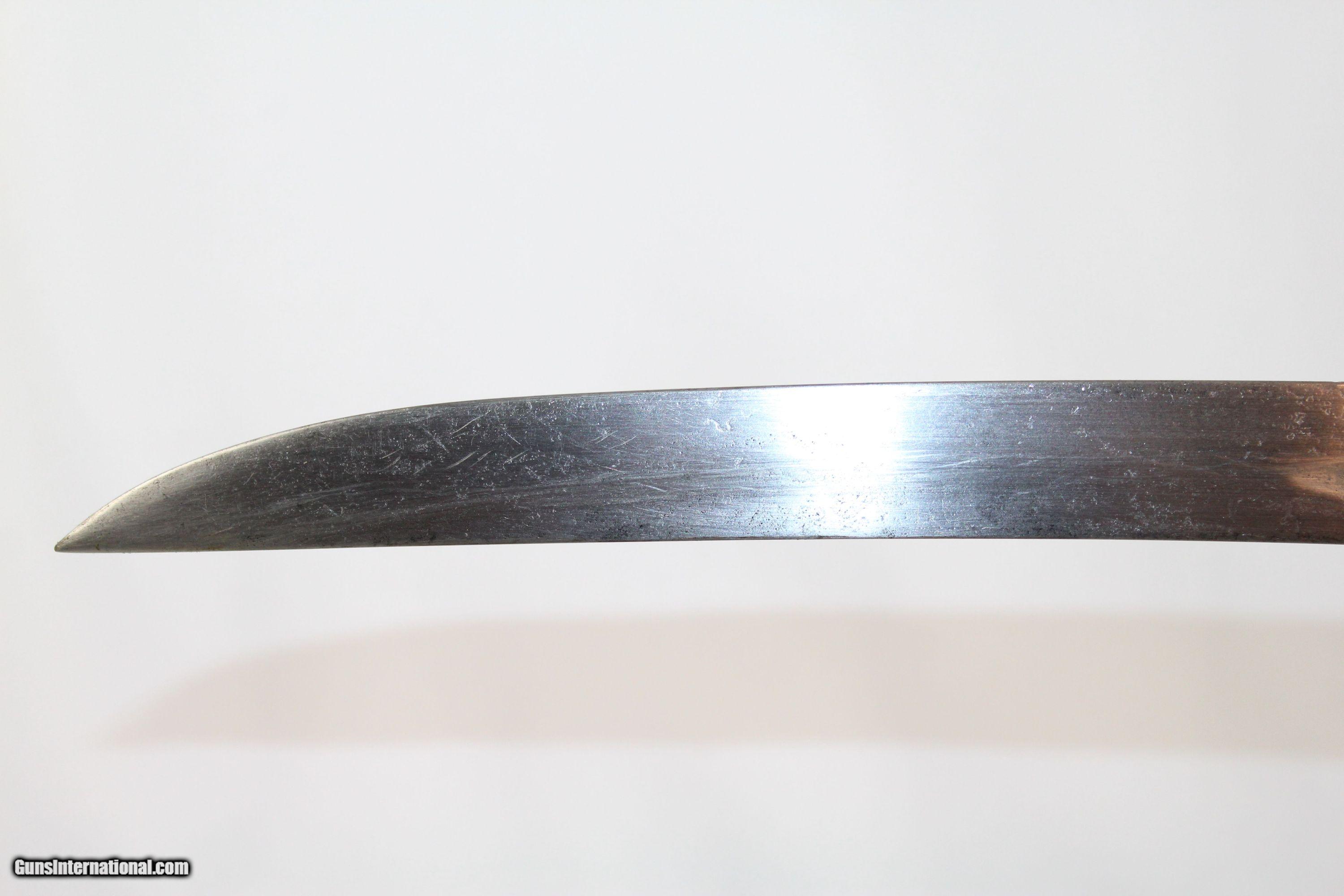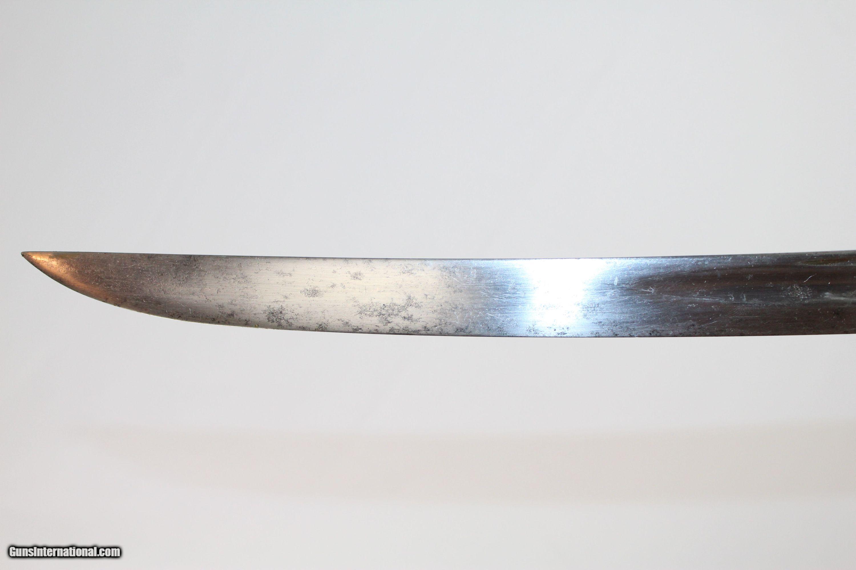 Description: SCARCE US Model 1906 LIGHT CAVALRY Saber by AMES Last Issued Light Cavalry Blade Issued to US Cavalry Here we present a scarce Ames U.S. Model 1906 Light Cavalry Saber, made in 1906 by Ames Sword Company in Chicopee Falls, Massachusetts. Fewer than 20,000 of these blades were made. This model is significant to the collector in that it was the last light cavalry saber issued to U.S. cavalry troops and the second to last cavalry sword issued at all to U.S. cavalry (replaced soon after by young George Patton’s straight bladed sword). It was during this period when traditional cavalry use and blade use was drawing its last breaths. This saber would have been used in conflicts such as the Moro Rebellion in the Philippines. The design was a fairly old one, not changing much from the original Model 1860 Light Cavalry Saber from the American Civil War. The brass guard was replaced with an iron one, and the rings on the scabbard moved closer together for ease of carry. This specimen is marked “A.S.Co.” with a U.S. Ordnance Dept. flaming bomb proof mark and the date “1906”. The other side of the ricasso is marked “US” and “J.H.C.”, which are the government inspector’s initials. The scabbard is marked with the inspector’s initials “G.E.W.” for G.E. Worgen, and “A20”, which may be a unit rack number. The overall condition is very good. The iron hardware and scabbard are dark with age. The markings are clear. The original leather wrap is thinning, but 90% there, with original wire wrap still tight. The original leather washer remains. The blade is bright, having been protected by the scabbard. Here is a scarce example of a U.S. Cavalry blade. Own the original! This is a legitimate antique and not a reproduction. Overall condition as seen in photos. Very Fast. Very Safe. FREE SHIPPING WORLDWIDE. Delivered directly to your door by express mail! Guaranteed AUTHENTIC & Includes CERTIFICATE OF AUTHENTICITY. ancestryguns $750 #5194 SOLD |