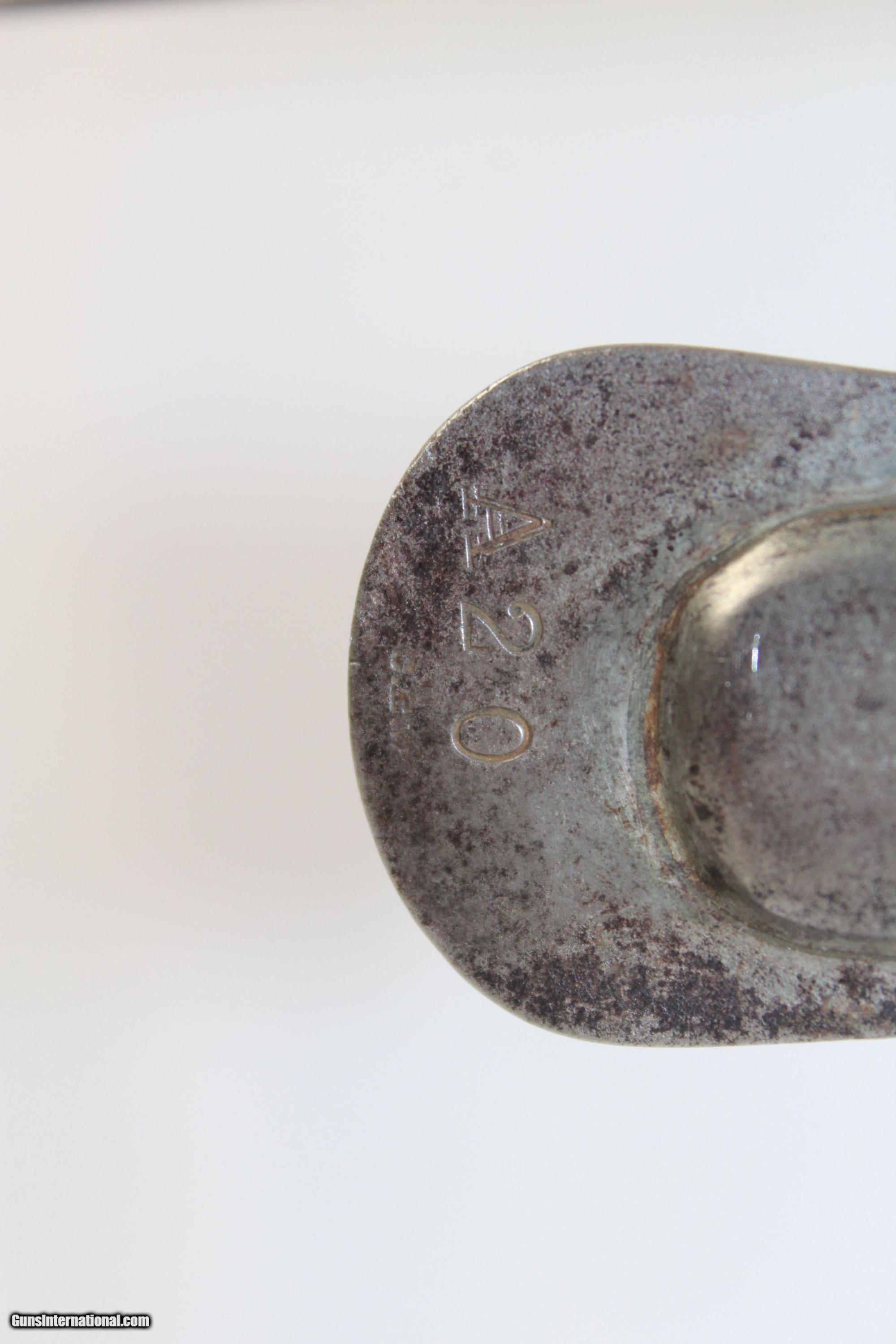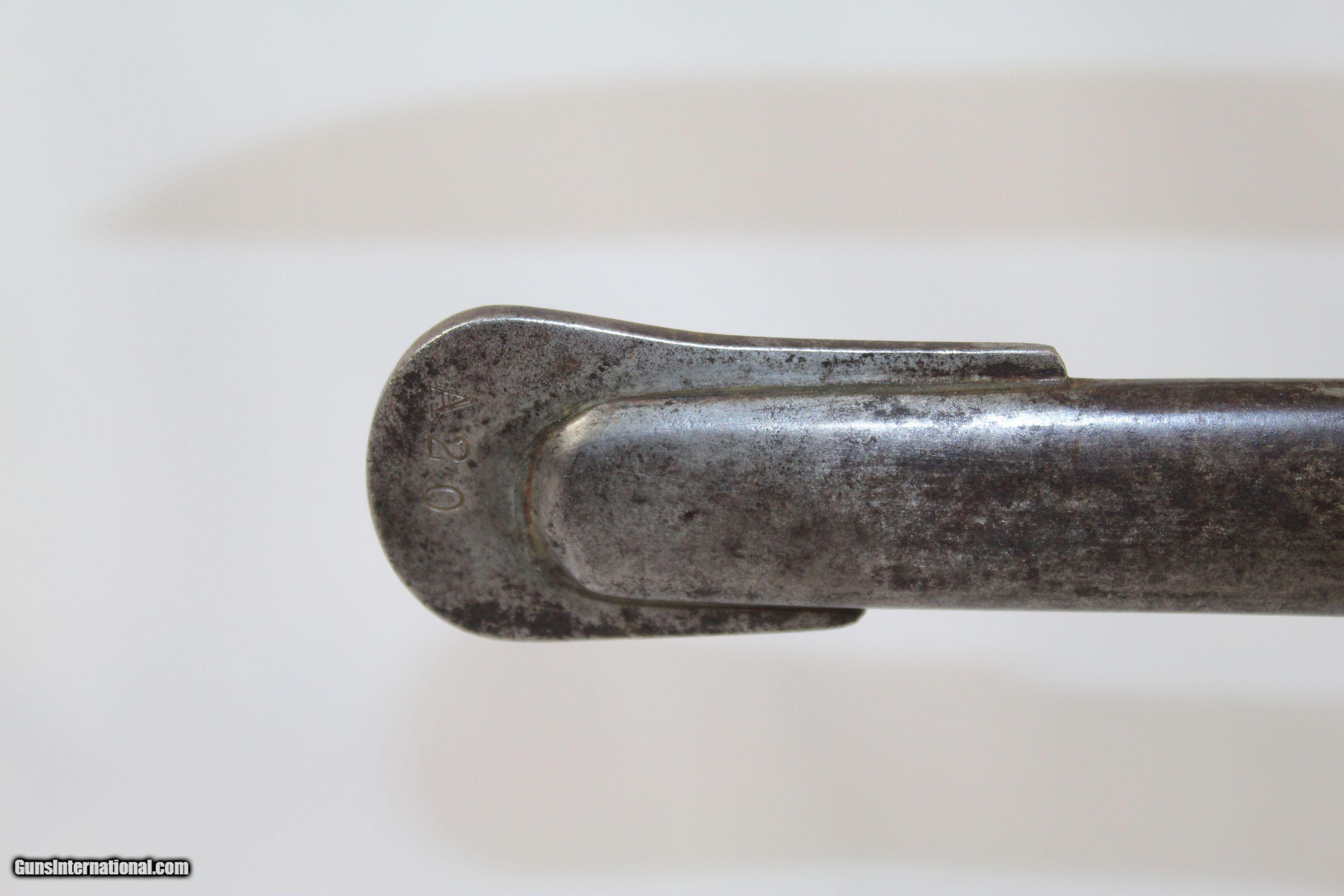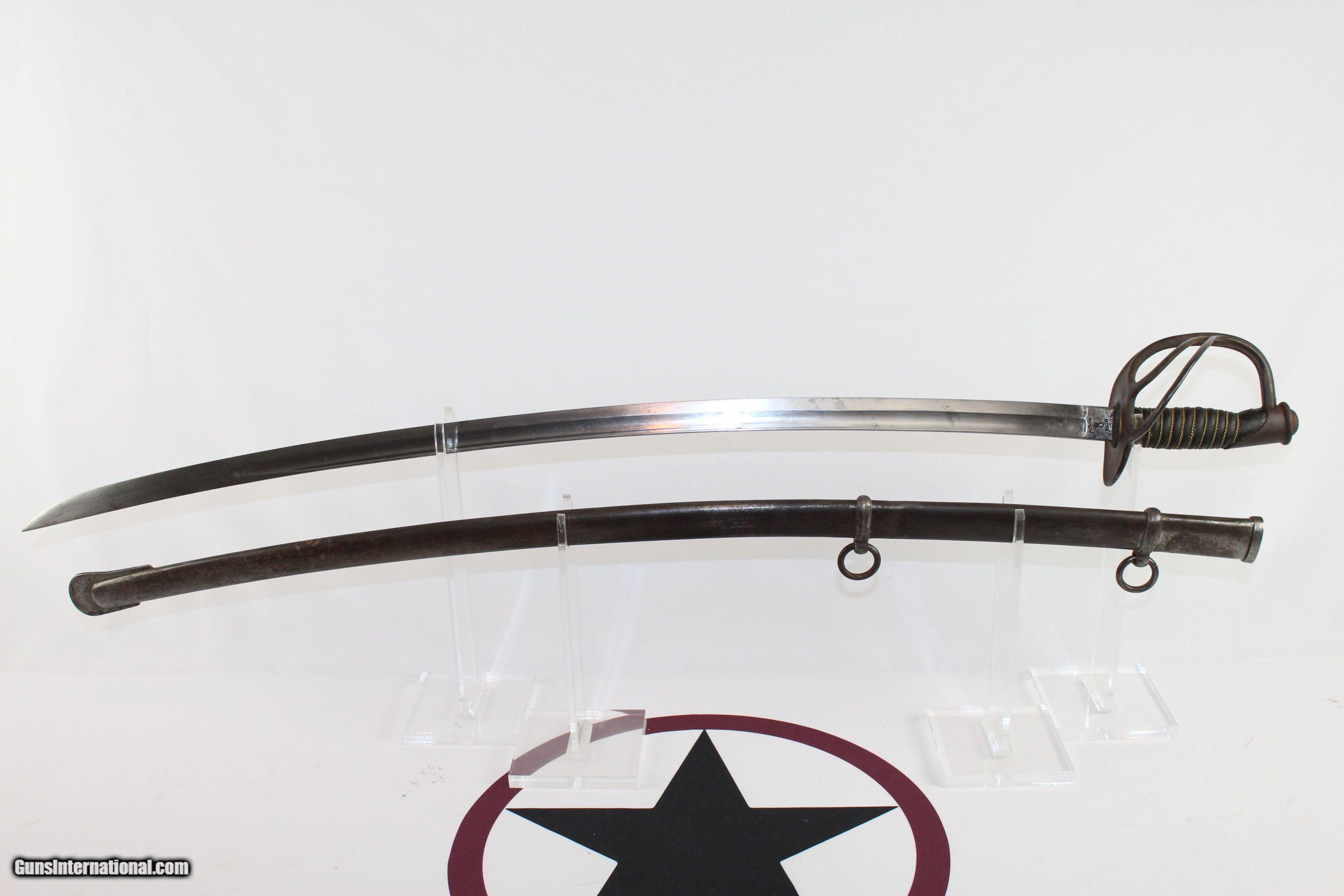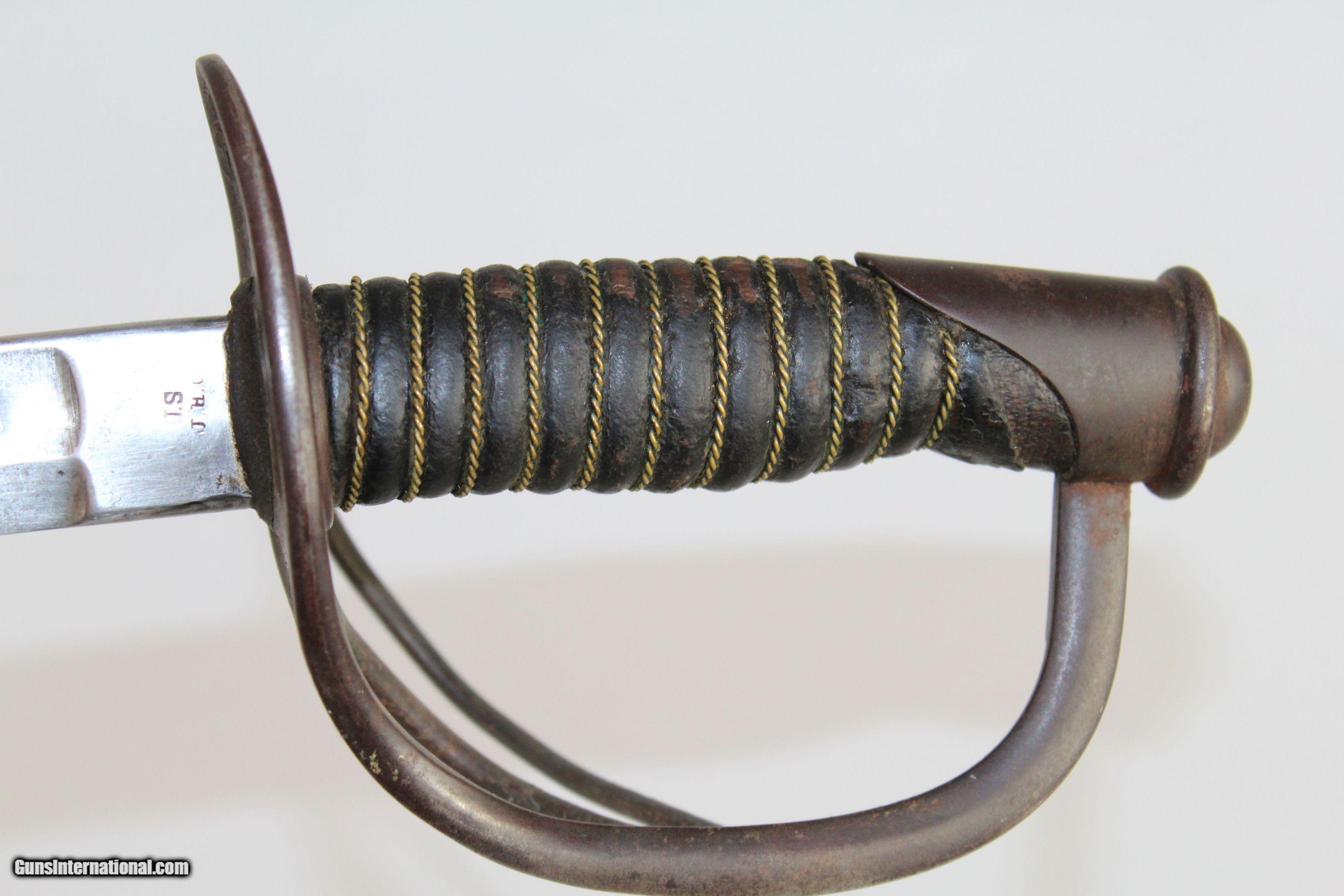 Description: SCARCE US Model 1906 LIGHT CAVALRY Saber by AMES Last Issued Light Cavalry Blade Issued to US Cavalry Here we present a scarce Ames U.S. Model 1906 Light Cavalry Saber, made in 1906 by Ames Sword Company in Chicopee Falls, Massachusetts. Fewer than 20,000 of these blades were made. This model is significant to the collector in that it was the last light cavalry saber issued to U.S. cavalry troops and the second to last cavalry sword issued at all to U.S. cavalry (replaced soon after by young George Patton’s straight bladed sword). It was during this period when traditional cavalry use and blade use was drawing its last breaths. This saber would have been used in conflicts such as the Moro Rebellion in the Philippines. The design was a fairly old one, not changing much from the original Model 1860 Light Cavalry Saber from the American Civil War. The brass guard was replaced with an iron one, and the rings on the scabbard moved closer together for ease of carry. This specimen is marked “A.S.Co.” with a U.S. Ordnance Dept. flaming bomb proof mark and the date “1906”. The other side of the ricasso is marked “US” and “J.H.C.”, which are the government inspector’s initials. The scabbard is marked with the inspector’s initials “G.E.W.” for G.E. Worgen, and “A20”, which may be a unit rack number. The overall condition is very good. The iron hardware and scabbard are dark with age. The markings are clear. The original leather wrap is thinning, but 90% there, with original wire wrap still tight. The original leather washer remains. The blade is bright, having been protected by the scabbard. Here is a scarce example of a U.S. Cavalry blade. Own the original! This is a legitimate antique and not a reproduction. Overall condition as seen in photos. Very Fast. Very Safe. FREE SHIPPING WORLDWIDE. Delivered directly to your door by express mail! Guaranteed AUTHENTIC & Includes CERTIFICATE OF AUTHENTICITY. ancestryguns $750 #5194 SOLD |