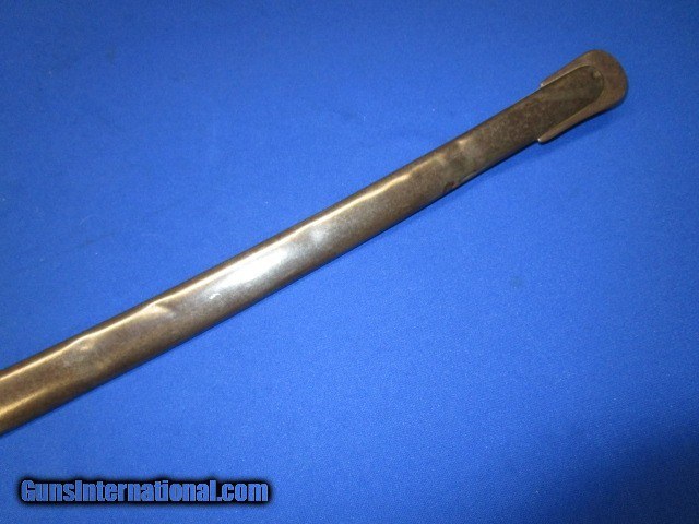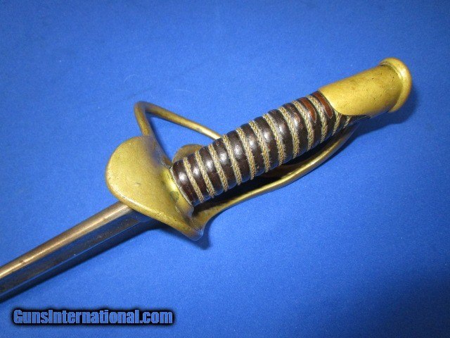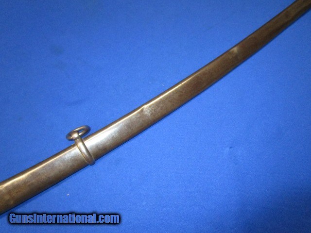 Description: This is an original and scarce U.S. Civil War Ames model 1860 Cavalry Sword Dated 1864 in nice untouched condition. The sword is all original and complete. The sword has a fine blade and markings with nice edges. The sword is marked on one side “AMES MFG CO. and U.S./G.W.S./1864” on the other side. The original grip and wire are in excellent condition throughout. The brass guard and pommel are in fine untouched condition with a wonderful mellow color to them. The original scabbard is in very nice throughout with a nice even color and has a few small dents. This is a very nice example of a very scarce 1864 dated Ames U.S. Model 1860 Cavalry Sword. Please e-mail me with any questions. SOLD |