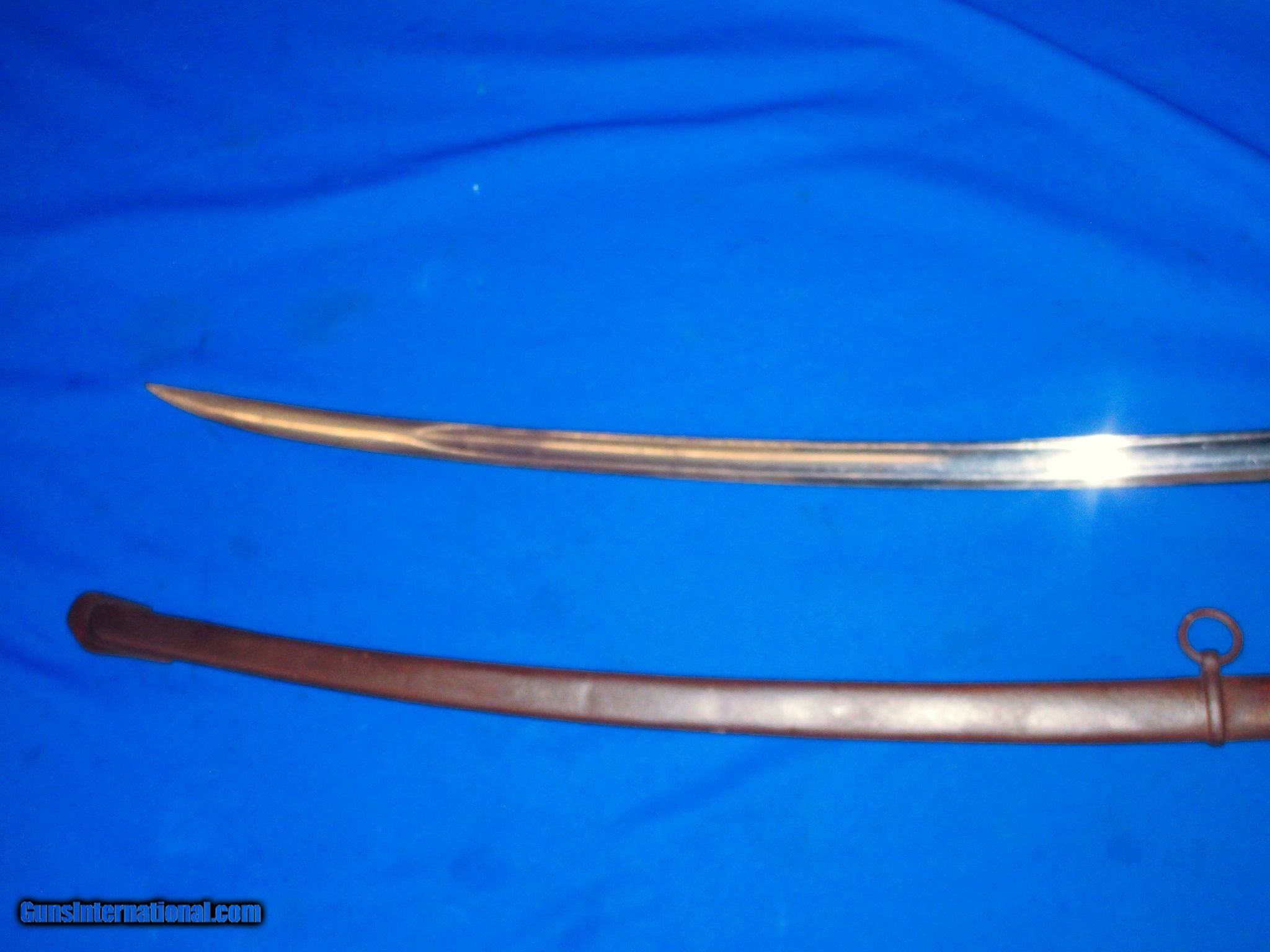 Description: A U.S. Civil War Military Issued Model 1860 Cavalry Sword Made by Mansfield & Lamb" Dated 1864 In Excellent Untouched Condition. All original and complete. The sword has an excellent untouched blade with excellent markings. It is stamped on one side of the ricasso in an oval, "MANSFIELD & LAMB, CRESTDALE, R.I." and on the other side, "U.S./J.M./1864". The blade is excellent & bright throughout with no chips and has Its original bright polished color on it. The original grip is fine and untouched throughout showing light wear. This includes the fine leather wrap, and the original brass wire. The brass guard is also fine and untouched throughout. The top of the pommel is U.S. Sub Inspected. The original scabbard is fine throughout with a wonderful mix of original color and natural patina on it. It also has some light peppering on it in spots. This Is A Very Fine Condition All Original & Untouched Example Of A U.S. Civil War Military Issued "Mansfield & Lamb" Model 1860 Cavalry Sword Dated 1864. These All Original & Untouched U.S. Civil War Cavalry Swords With Excellent Markings & Blades Are Not Easy To Come By! DISCLAIMER: All firearms are sold as collector’s items only – we did not accept responsibility as to the shooting safety or reliability of any antique firearm. All firearms as described as accurately as possible, given the restraints of a catalog listing length. We want satisfied customers and often under describe the weapons. Any city or state regulations regarding owning antique firearms are the responsibility of the purchaser. All firearms are mechanically perfect unless noted, but again are NOT warranted as safe to fire. We do not sell or ship any Antique Guns or Antique Ammo to anywhere in New York State. Price: $995.00 Contact Seller |