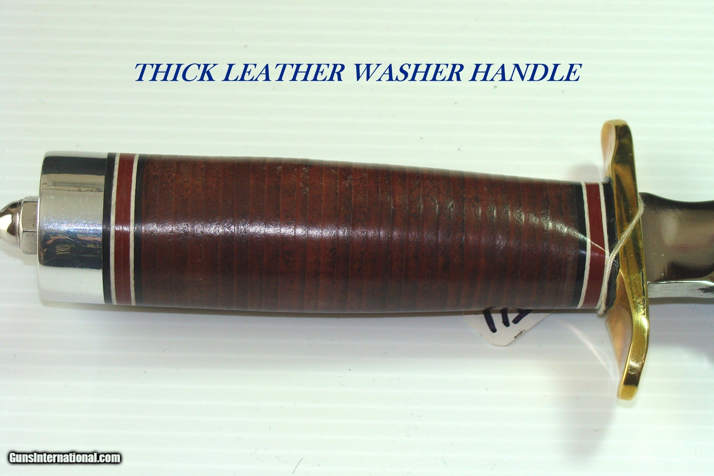 Description: WESTERN CUTLERY CO. / BLACKJACK "STERILE" MODEL 1-7 UNMARKED FOR BLACKJACK c.1994. Please see extensive explanation of these rarely seen BlackJack Model 1-7 as they are not available any longer, nor were they ever. It was a sad time for Western Cutlery, as they were going under, as well Blackjack. NOTE: OBSERVE THE SCABBARD, IT IS THE CLASSIC DESIGN FOR WESTERN SCABBARDS AFTER WW2. CONCLUSIVE EVIDENCE THAT WESTERN WAS INVOLVED BEFORE THEY WENT "UNDER". CONFIRMING THE RARITY OF THESE RARE KNIVES. BOTH OF THEM EVENTUALLY WENT BUST, AND B.J. SOLD THE FEW KNIVES TO A.G. RUSSEL AFTER ETCHING THE BLADES. THEY ARE QUITE RARE! I PICKED THIS ONE UP FROM A FORMER WESTERN CUTLERY BLADESMITH. WESTERN ALLOWED IT'S REMAINING GRINDERS/POLISHERS TO MAKE A KNIFE OR TWO AS A MOMENTO. B.J. IS STILL ALIVE TODAY AS "BARK RIVER KNIVES", MIKE STEWART STILL AT THE REINS! CAN'T KEEP A GREAT KNIFESMITH DOWN FOR LONG. WESTERN CUTLERY GROUND AND MIRROR POLISHED THESE LIMITED UNMARKED KNIVES FOR BLACKJACK BEFORE BOTH COMPANIES WENT "BUST". IN OVER A YEAR SEARCHING FOR A FEW, NO LUCK. WHAT ARE THEY WORTH? A LOT! ONLY A HANDFULL PROBABLY REST IN PRIVATE HANDS! $800, $1,000, $1200?? NOTE! OFFERS ACCEPTED! ~~~~~~~~~~~~~~~~~~~~~~~~~~~~~~~~~~~~~~~~~~~~~~~~~~~~~~~~~~~~~~~~~~~~~~~~~~~~~~~~~~~~~~~~~~~~~~~~~~~~~~~~~~~~~~~~~~~~~~~~~~~~~~~~~~~~ No guarantee or warranty is expressed or implied as to the usability of the items for its original purpose. The buyer certifies that he or she is of lawful age and is not prevented by any law from the purchase or possession of these items. The buyer is responsible for knowing, understanding and obeying all International, Federal, State and Local laws concerning the purchase and possession of these items. Offers Accepted If you have any questions regarding this, or any Allied Military Fighting Knife 1941-1975, please let me know. This has been my passion: collecting, dealing, & studying military history of high condition Allied Military Fighting Knives from 1941-1975. I personally guarantee the authenticity of any knife that I sell. If you're also not sure what knife you have, or what it's worth, let me know. I offer Free Advice! SOLD |