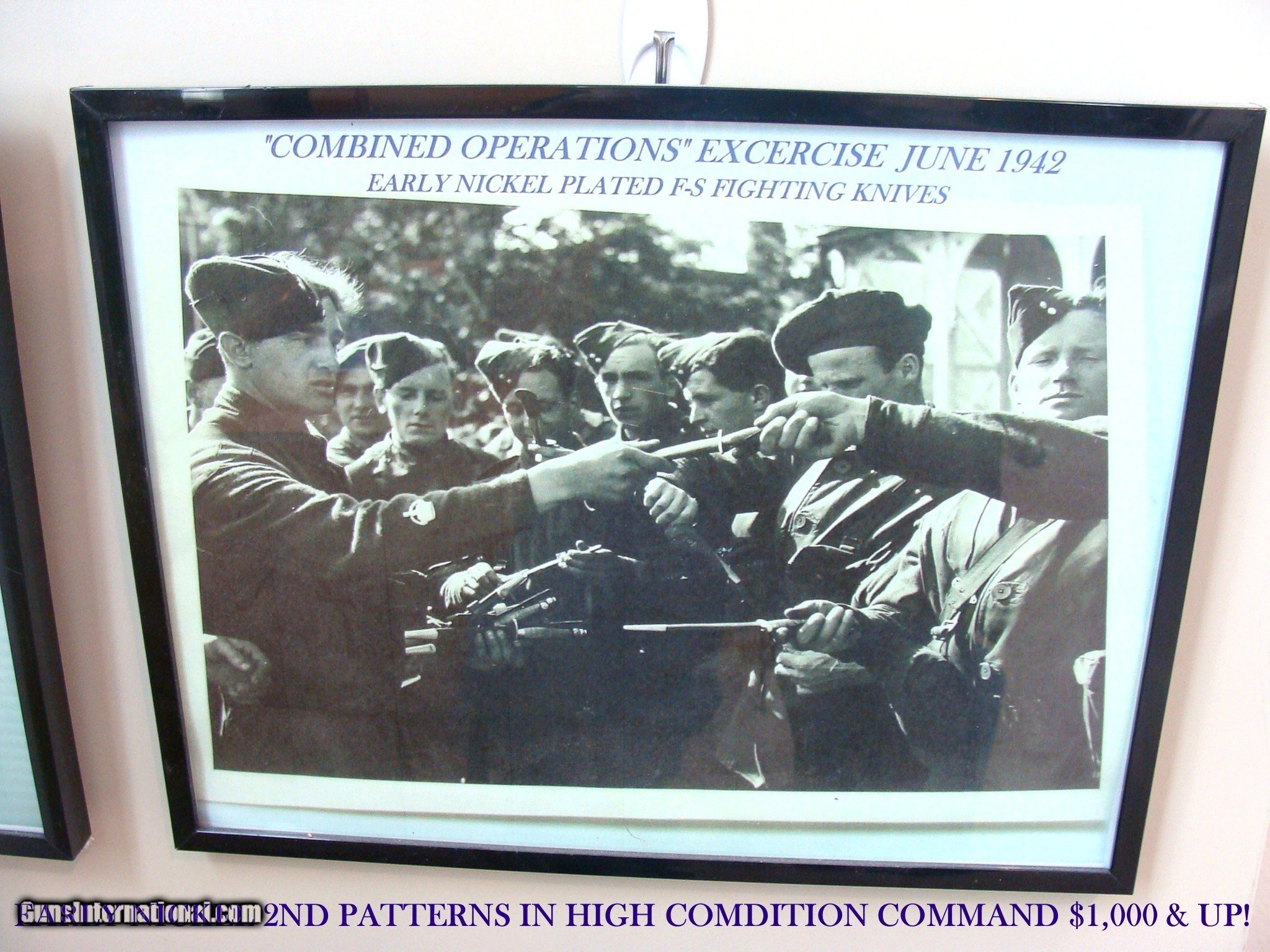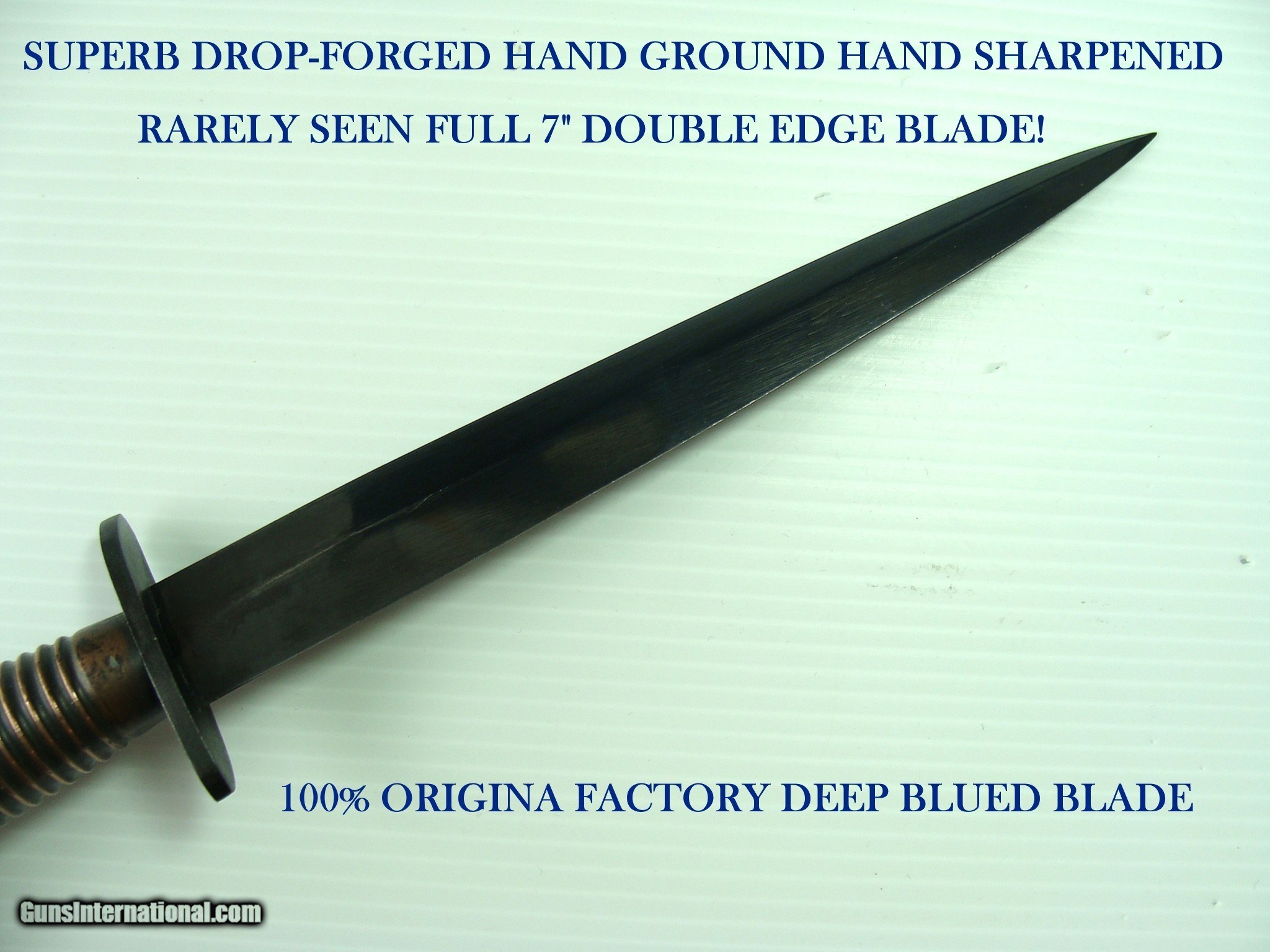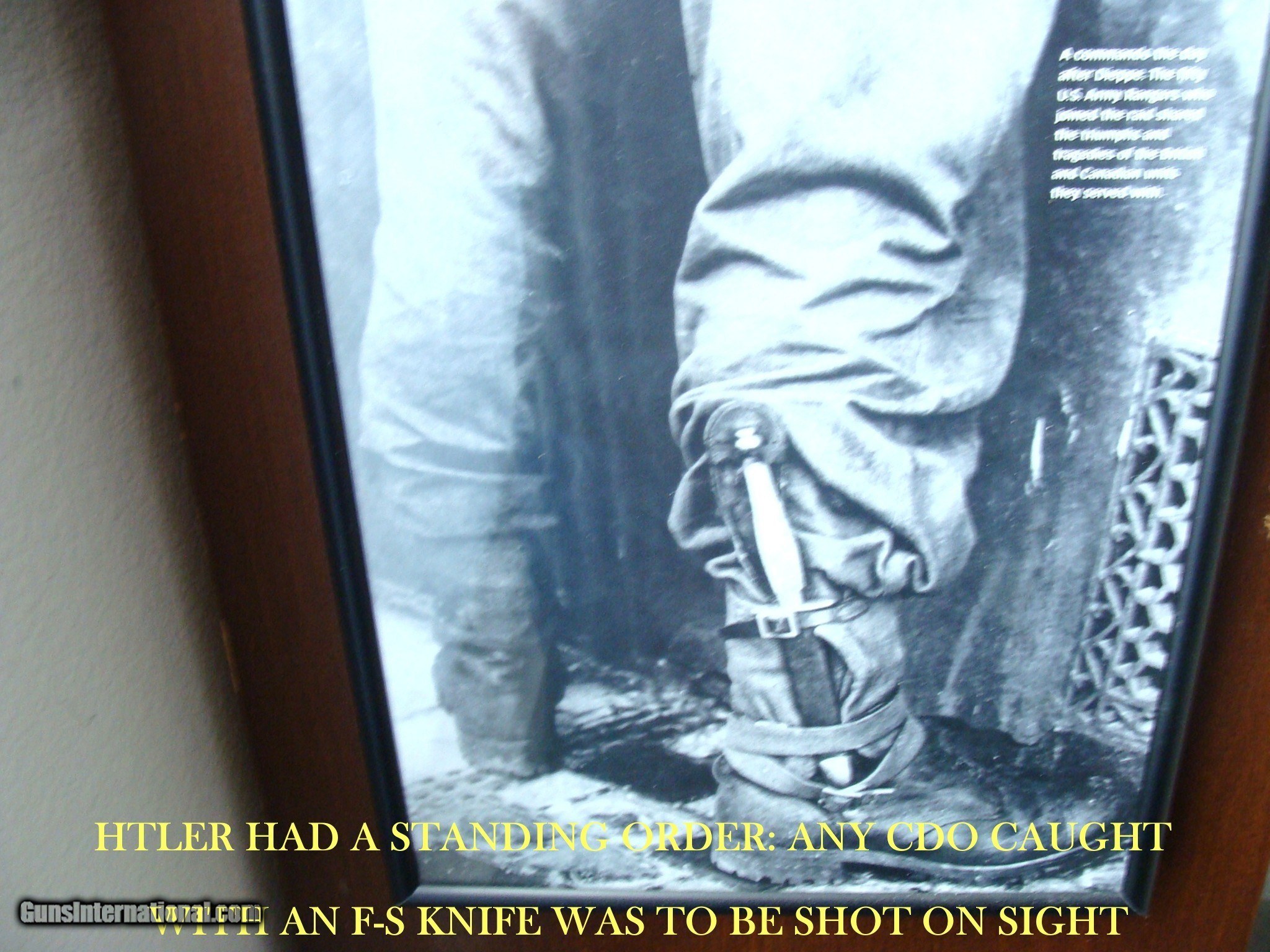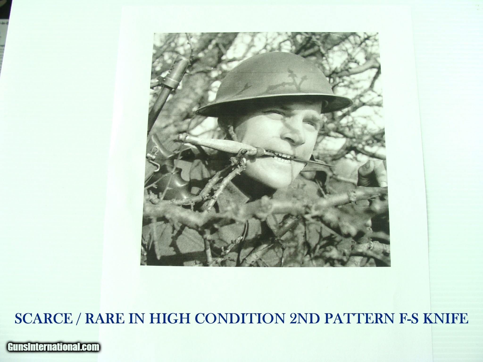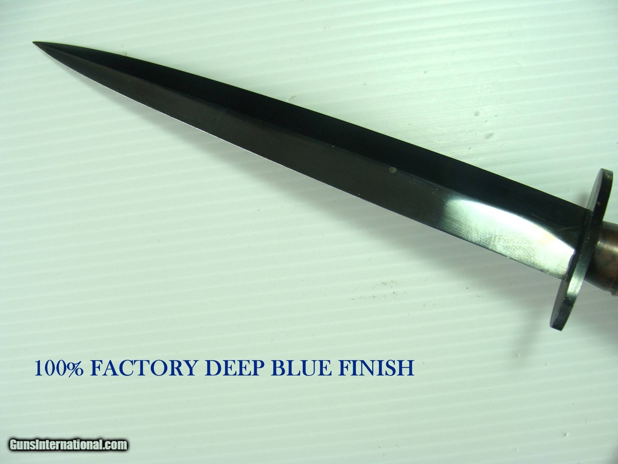 Description: WW2 ORIGINAL EARLY 3rd PATTERN BRITISH COMMANDO FAIRBAIRN SYKES FIGHTING KNIFE IN HIGH CONDITION! ~~~~~~~~~~~~~~~~~~~~~~~~~~~~~~~~~~~~~~~~~~~~~~~~~~~~~~~~~~~~~~~~~~~~~~~~~~~~~~~~~~~~~~~~~~~~~~~~~~~~~~~~~~~~~~~~~~~~~~~~~~~~~~~~~~~~~~~~~~~~~~~~~~~~~~~~~~~~~~~~~~ THIS STUNNING EXAMPLE REMAINS IN SUPERB SURVIVING CONDITION. THIS MINT BLADE IS A FULL 7", WITH A NEEDLE POINT TIP. NOT COMMON ON EARLY DROP-FORGED HAND GROUND AND SHARPENED EXAMPLES. THE BLUED CROSSGUARD IS ALSO MINT. ON THE HANDLE SIDE IS STAMPED "ENGLAND". IT IS ALSO STAMPED BROAD ARROW 21 (/|\ 21), THE MOS (MINISTRY OF SUPPLY PROOF MARKING). THE /|\21 MOS INSPECTOR IS NOT OFTEN SEEN ON CDO KNIVES! QUITE SCARCE! THE HANDLE IS MARKED WITH THE MOLD #4, WHICH INDICATES WOLVERHAMPTON CASTING CO. THE HANDLE CONDITION IS EXCELLENT PLUS WITH ORIGINAL PATINA. NEVER BEEN MOLESTED. THE POMMEL NUT IS UNTOUCHED ALSO. THE ORIGINAL CORRECT WW2 SCABBARD REMAINS IN EXCELLENT CONDITION. IT IS MISSING THE RETAINER STRAP, AND REVERSE BACKING PIECE, WHICH IS NOT UNCOMMON OF THE MORE DELICATE SCABBARDS MADE FROM FINE ENGLISH GLOVE LEATHER. THE FOUR TABS ARE PRESENT! MANY TIME COMMANDOS WOULD REMOVE THEM SO AS TO BE ABLE TO SLIP THE KNIFE INTO THE SPECIAL POCKETS MADE INTO THEIR BDU'S (BATTLE DRESS UNIFORMS.OVERALL, A DIFFICULT KNIFE TO FIND IN HIGH CONDITION. NOTE! PICTURES NOT INCLUDED ~~~~~~~~~~~~~~~~~~~~~~~~~~~~~~~~~~~~~~~~~~~~~~~~~~~~~~~~~~~~~~~~~~~~~~~~~~~~~~~~~~~~~~~~~~~~~~~~~~~~~~~~~~~~~~~~~~~~~~~~~~~~~~~~~~~~~~~~~~~~~~~~~~~~~~~~~~~~~~~~~~ NO! guarantee or warranty is expressed or implied as to the usability of the items for its original purpose. The buyer certifies that he or she is of lawful age and is not prevented by any law from the purchase or possession of these items. No guarantee or warranty is expressed or implied as to the usability of the items for its original purpose. The buyer certifies that he or she is of lawful age and is not prevented by any law from the purchase or possession of these items. The buyer is responsible for knowing, understanding and obeying all International, Federal, State and Local laws concerning the use and possession of these items. Offers Accepted PAYPAL PREFERRED I HAVE BEEN AN ADVANCED COLLECTOR, DEALER, MILITARY HISTORIAN OF HIGH CONDITION ALLIED MILITARY FIGHTING KNIVES, AND THE MEN THAT CARRIED THEM, 1918-1975, FOR OVER 40+ YEARS, INCLUDING RANDALL MADE KNIVES, AND GERBER MK.2'S 1950-1975. I PAY TOP DOLLAR FOR TOP CONDITION! THANK YOU FOR YOUR INTEREST! OFFERS ACCEPTED! PAYPAL PREFERRED! SOLD |