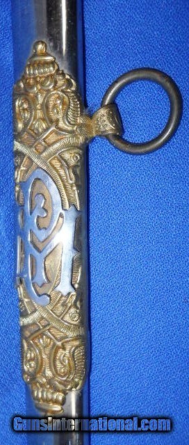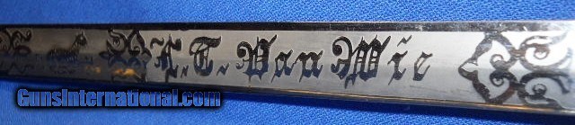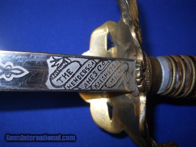 Description: ANTIQUE FRATERNAL "PM" "PATRIARCH'S MILITANT" SWORD & SCABBARD MFG. BY THE HENDERSON AMES CO. KALAMAZOO, MICH. 36" OVERALL WITH 29" BLADE ONCE OWNED BY "L.T. VAN WIE" BLADE FEATURES DEEPLY ETCHED DESIGNS ON BOTH SIDES. A VERY SCARCE SWORD, IN VERY GOOD TO EXCELLENT CONDITION, AS PICTURED. $35.00 S&H EAST or $40.00 WEST OF THE BIG RIVER DIRECT TO BUYER ANYWHERE THAT'S OK. SEE ALL "ESTATE ANTIQUES" LISTINGS FOR MORE GOODIES FROM OLD TIME COLLECTIONS & ESTATES SOLD |
