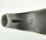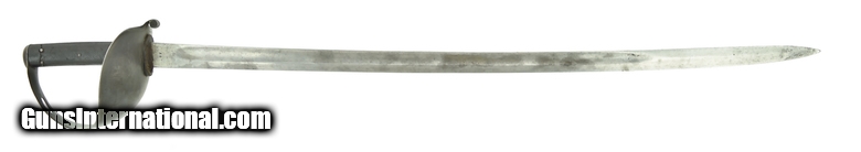 Description: Brazillian Cavalry Saber late 19th century. Later sold to Egypt. Islamic numerals on the scabbard. The blade is 30.9” long, marked AG and Alex Copp Solingen. Iron guard stamped EUB over crowned cannon barrels. (Estados Unidos do Brasil.) Pressured rubber grips. SOLD |
