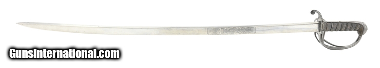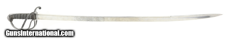 Description: " British 1821/1822 Pattern Light Cavalry Officers Sword. Blade is 35” and has the Royal Cypher of Queen Victoria. Rayskin and wire wrap are very good. Very good plus overall condition. SOLD |