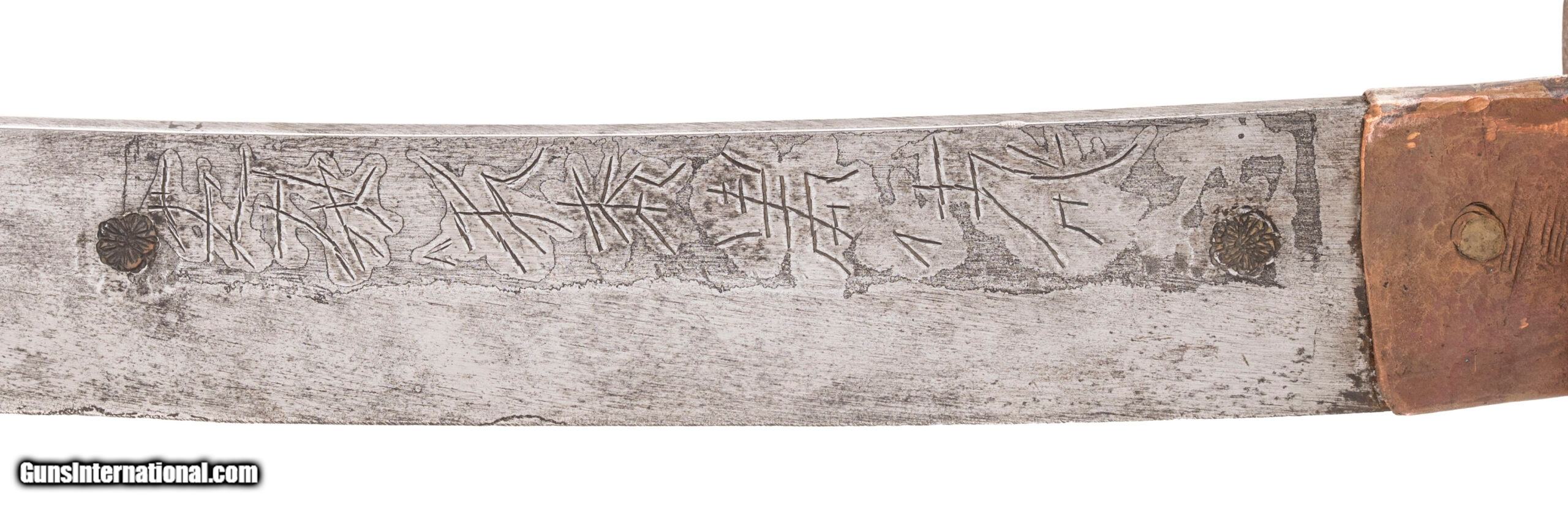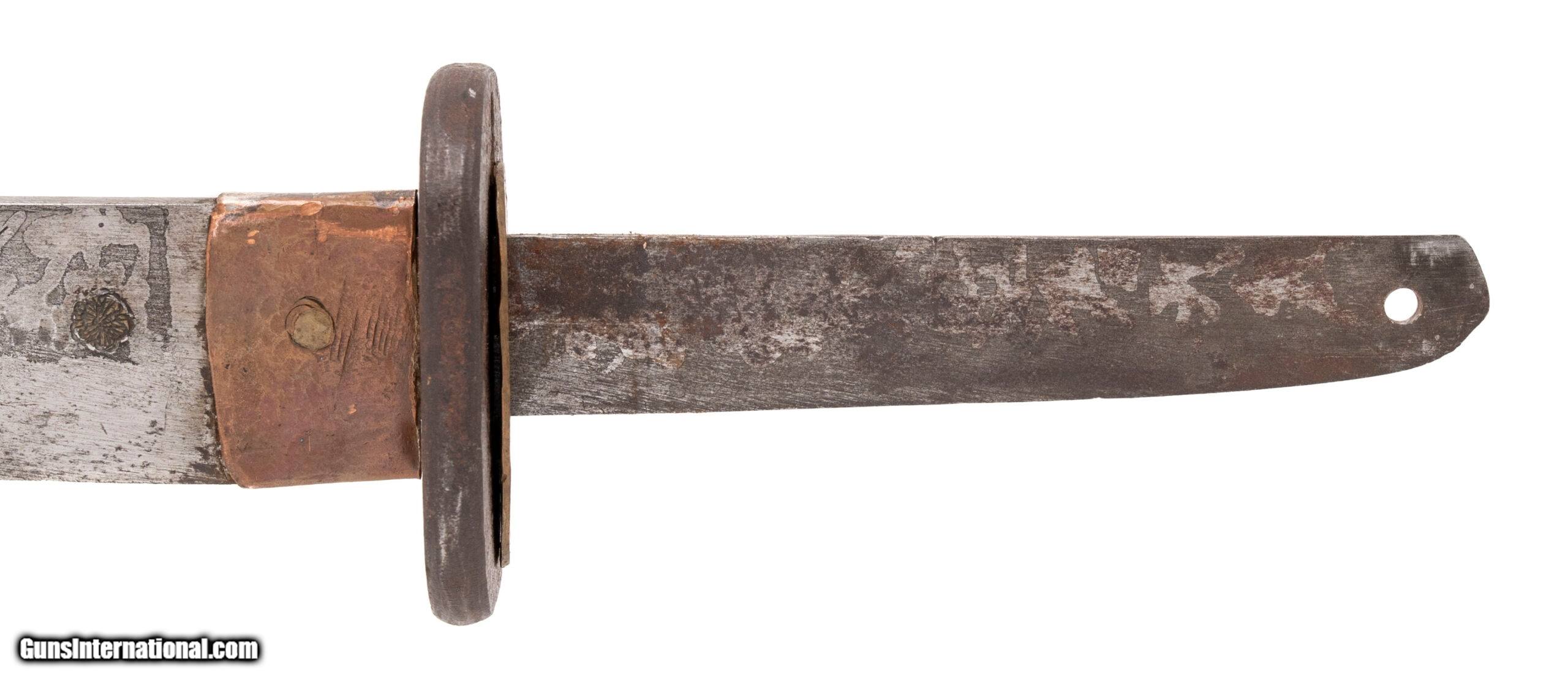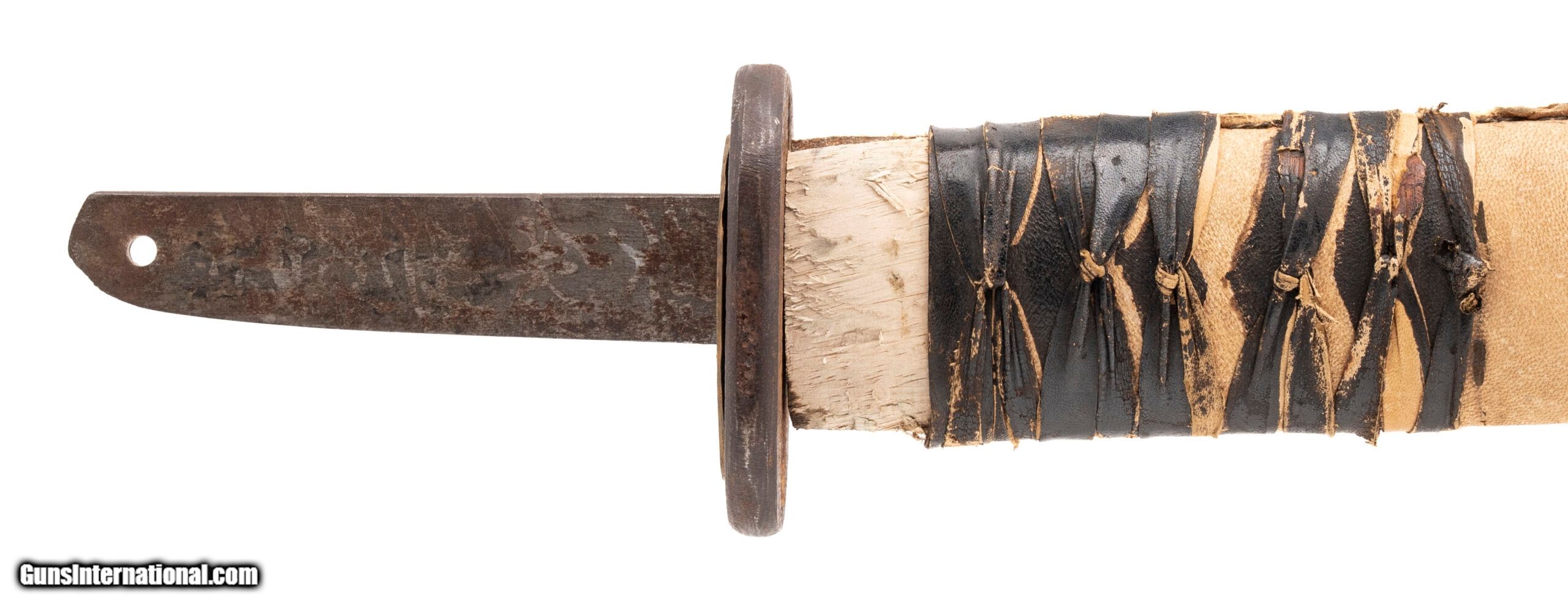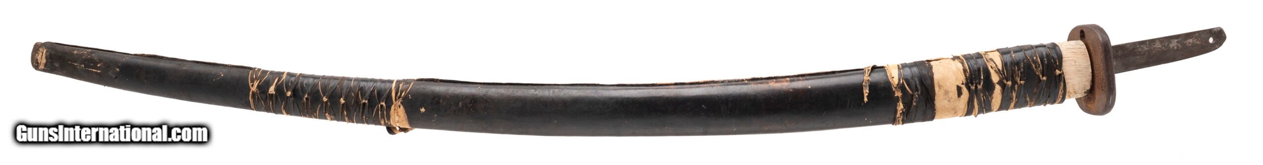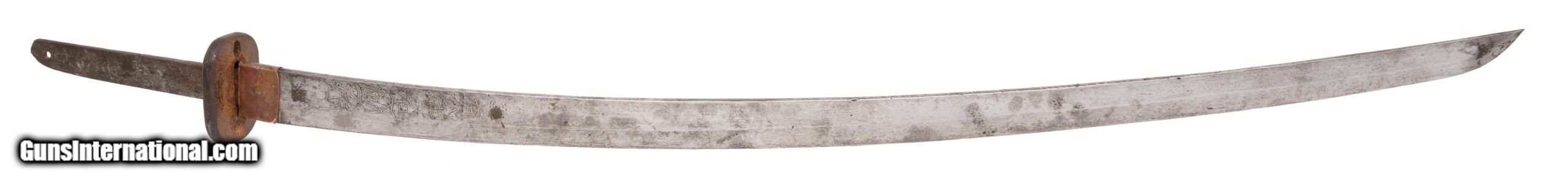 Description: "A rare and imposing Japanese honoto (shrine dedication sword), measuring 39.5 inches in cutting length with a width of 1.625 inches. Unlike combat swords, this oversized odachi-style blade was produced for ceremonial and religious purposes. One side bears the inscription ???? (“Respectfully Dedicated to Military Glory"), while the other reads ?????? (“Respectfully Dedicated to Kurahachi Shrine"), each flanked by chrysanthemum crests of Imperial association. Such swords were typically offered at Shinto shrines as acts of devotion or patriotic dedication, particularly during the late Meiji through Showa periods. The sheer size, bold inscriptions, and imperial symbolism make this a highly unusual and significant example of a shrine dedication blade, suitable as a centerpiece in a collection of Japanese militaria or religious artifacts. Price: $9,500.00 Contact Seller |