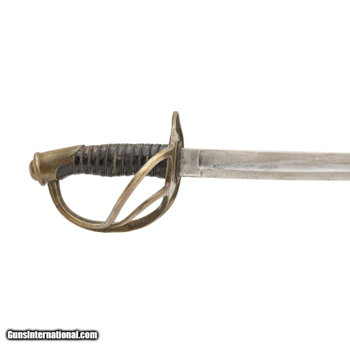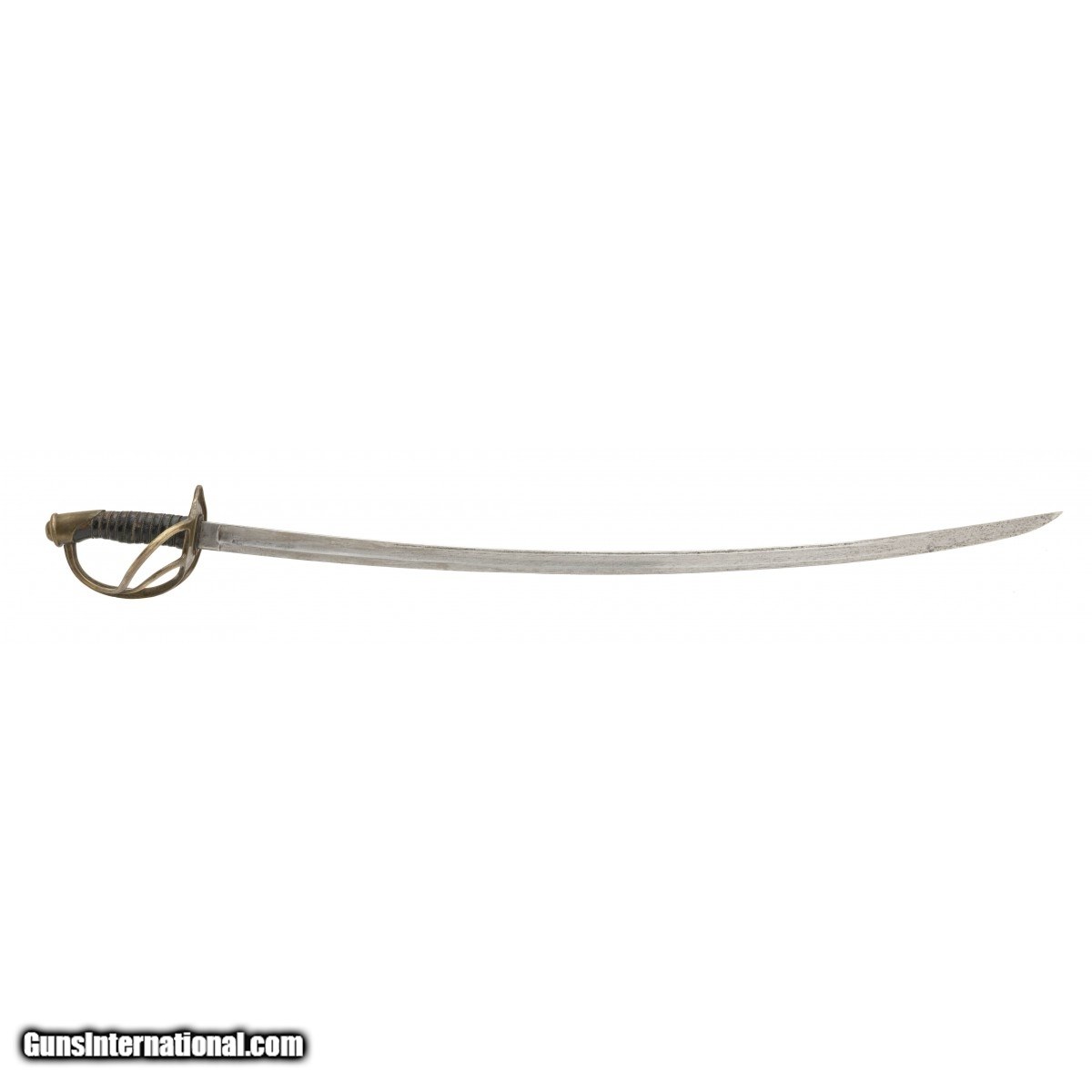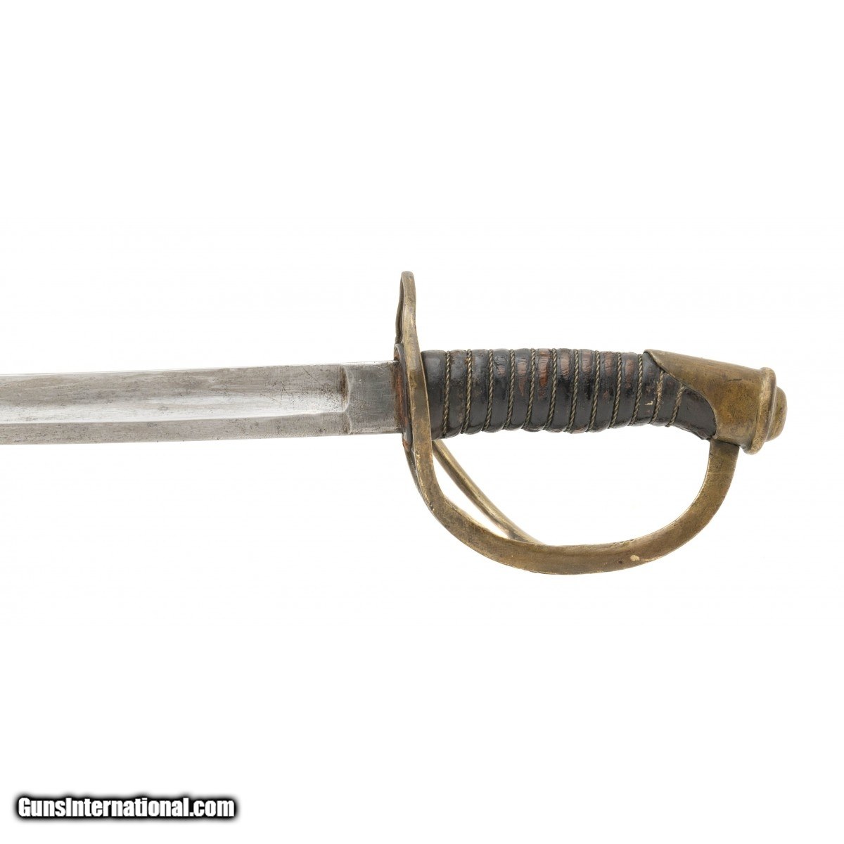 Description: " U.S. Model 1860 saber unmarked in overall good condition, scabbard and blade have been cleaned and are a grey patina. Wire wrap and leather are intact and fair. SOLD |