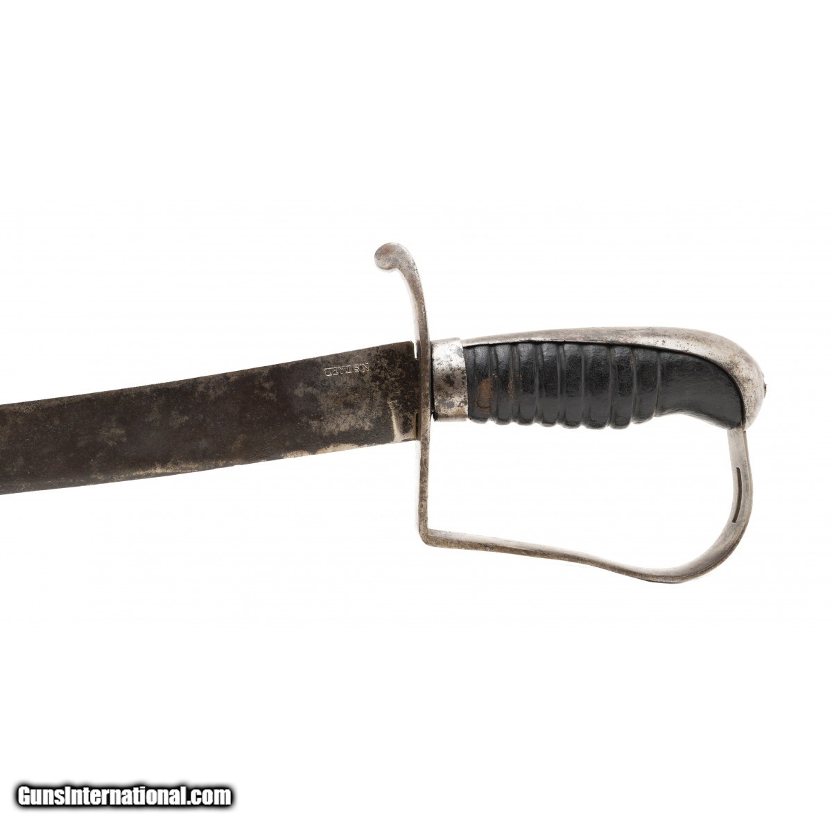 Description: "32 ½" blade with a dark patina with pitting. Good leather remains on the grip. Scabbard is missing. SOLD |