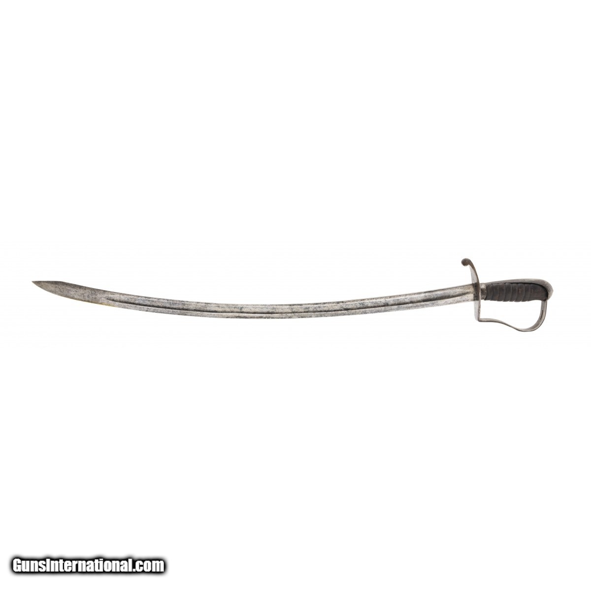 Description: "32" blade with a mottled light gray patina. Gilt has most of the leather wrap. Blade has nice clear markings. Scabbard is very good overall with some pitting. SOLD |