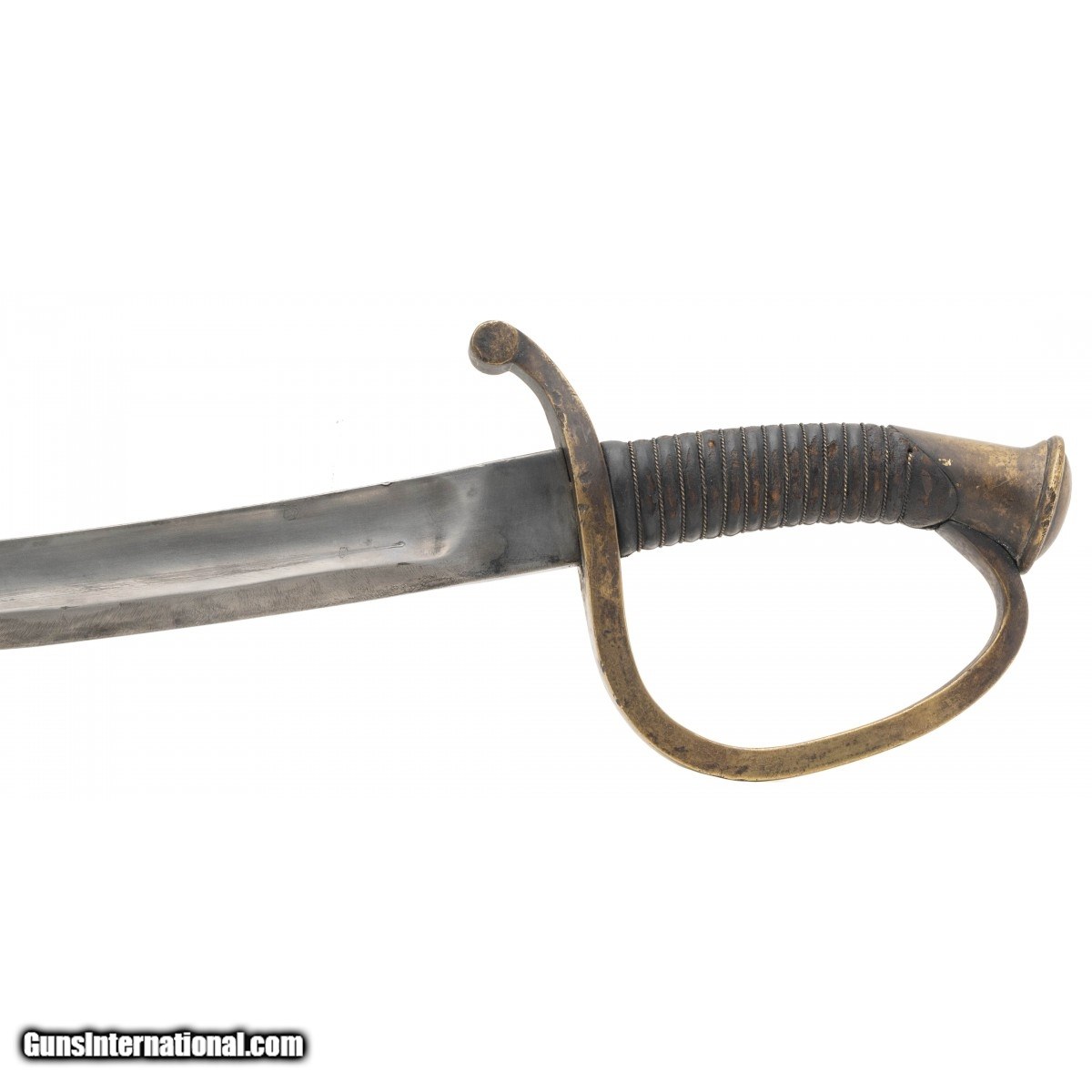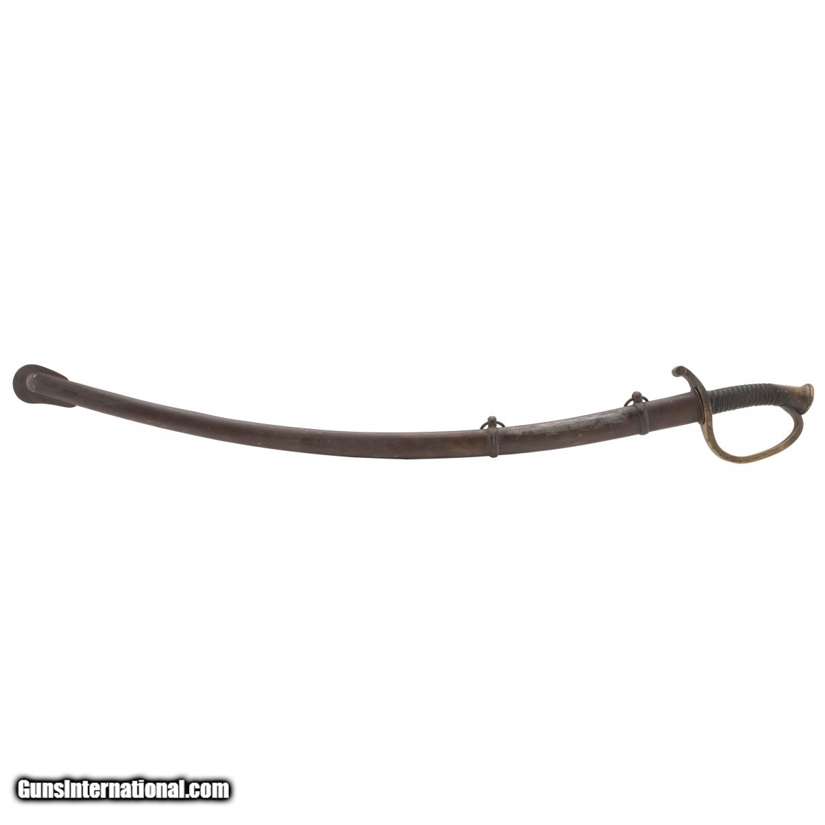 Description: " Civil War era. Scabbard is very good with a brown patina, no dents or dings. Grip is good with original leather wrap and wire. Ricasso is unmarked. Very good overall condition. SOLD |