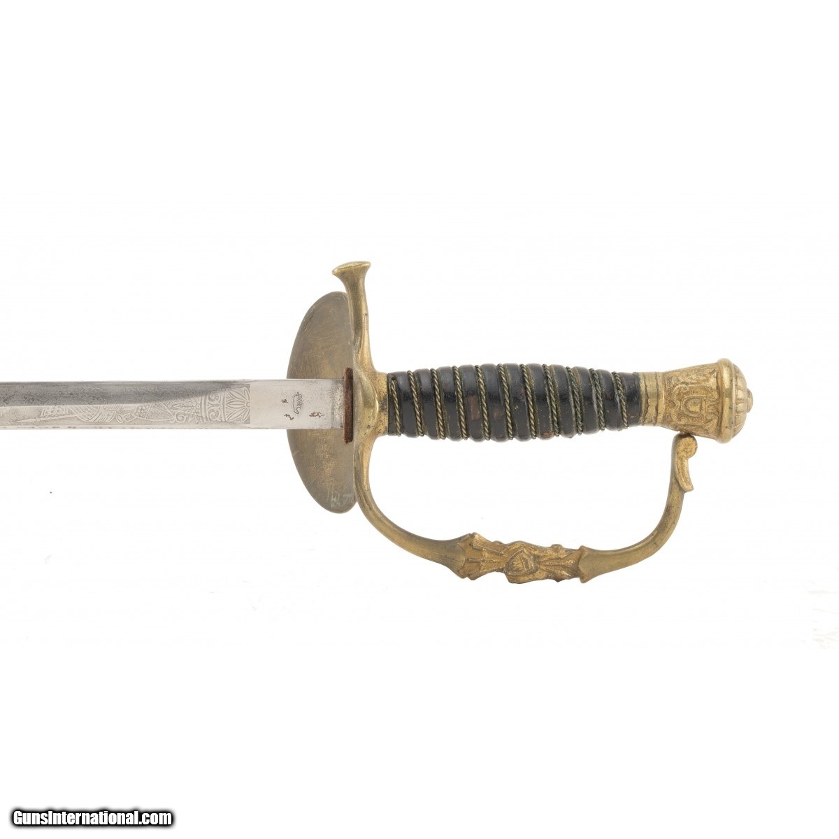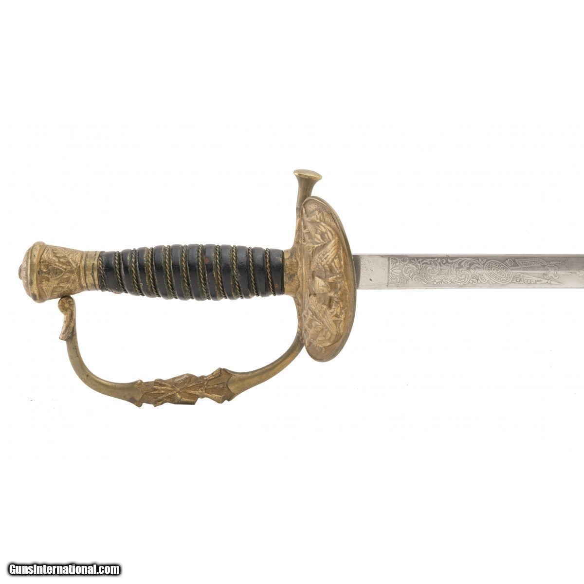 Post civil war officer's sword. Blade is 28"" and has a floral motif with US inscribed in center. Guard has a federal eagle. Wire and leather wrap are very good. Very good overall condition.