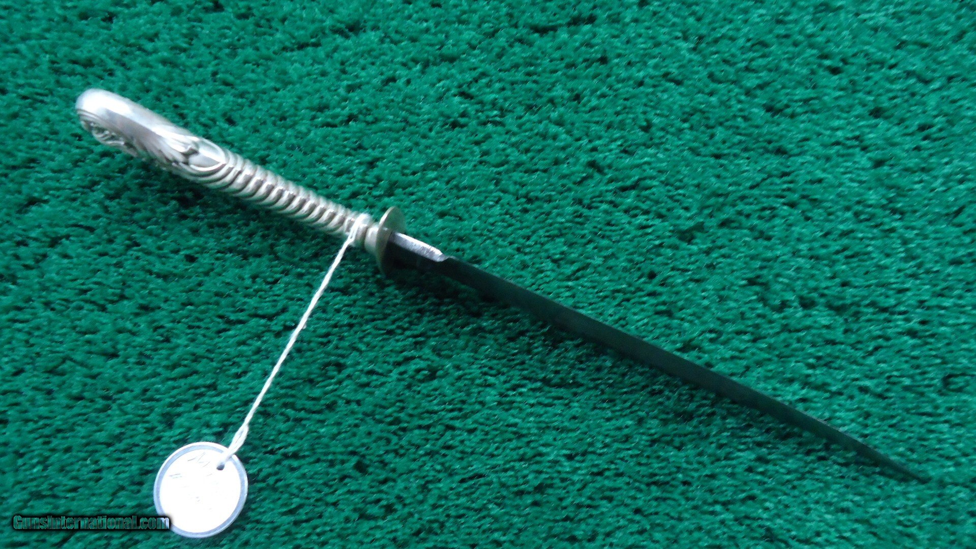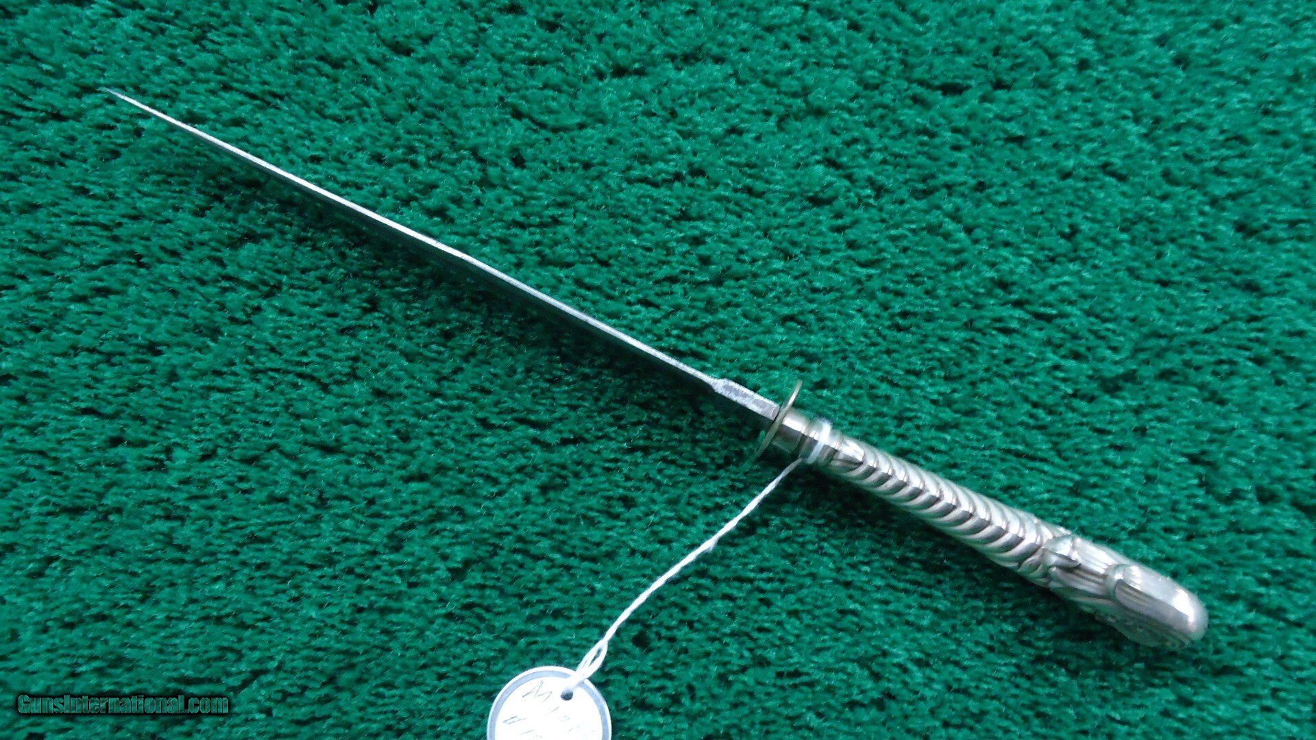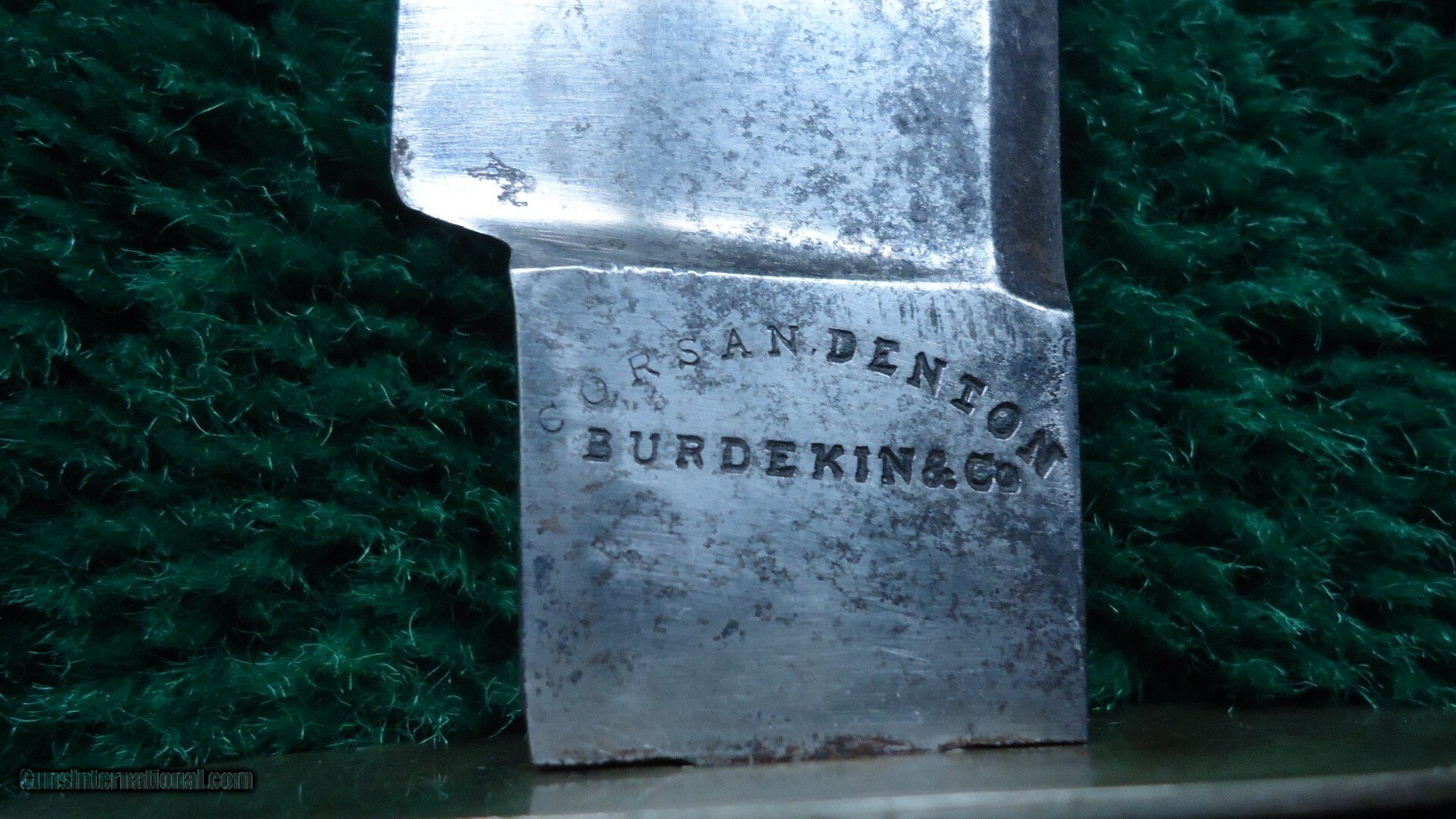 Description: Blade length is 8 inches with an overall length of 12-1/2 inches. Marked on left side Corsen Denton, Burdekin & Co. Blade is etched with the pre-civil war federal eagle and "America & Liberty" on a scroll. Original grip but no sheath. Leroy Merz Antique Firearms specializes in antique and vintage Winchesters and other fine American firearms. Since 1965 Mr. Merz has taken part in the world of firearms and has been a contributor to many well known reference books. We have hundreds of additional guns in every price range at our home online. Search for Merz Antiques in google. Price: $150.00 Contact Seller |