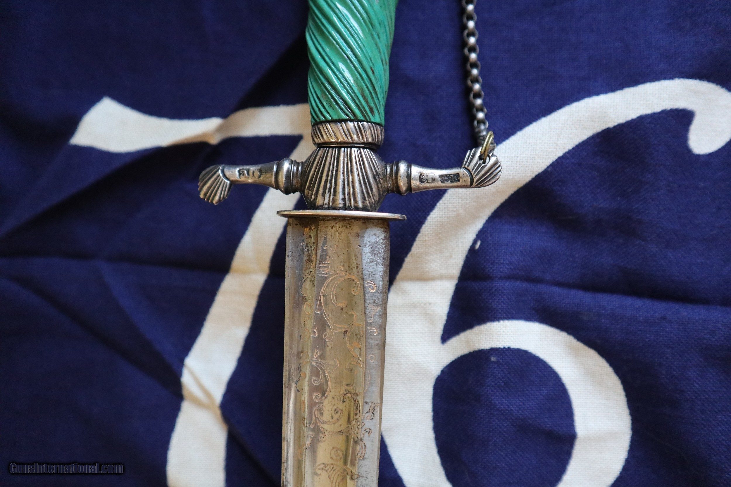 AMERICAN REVOLUTIONARY WAR SILVER HILT SWORD W GREEN IVORY HANDLE HALLMARKED 1773