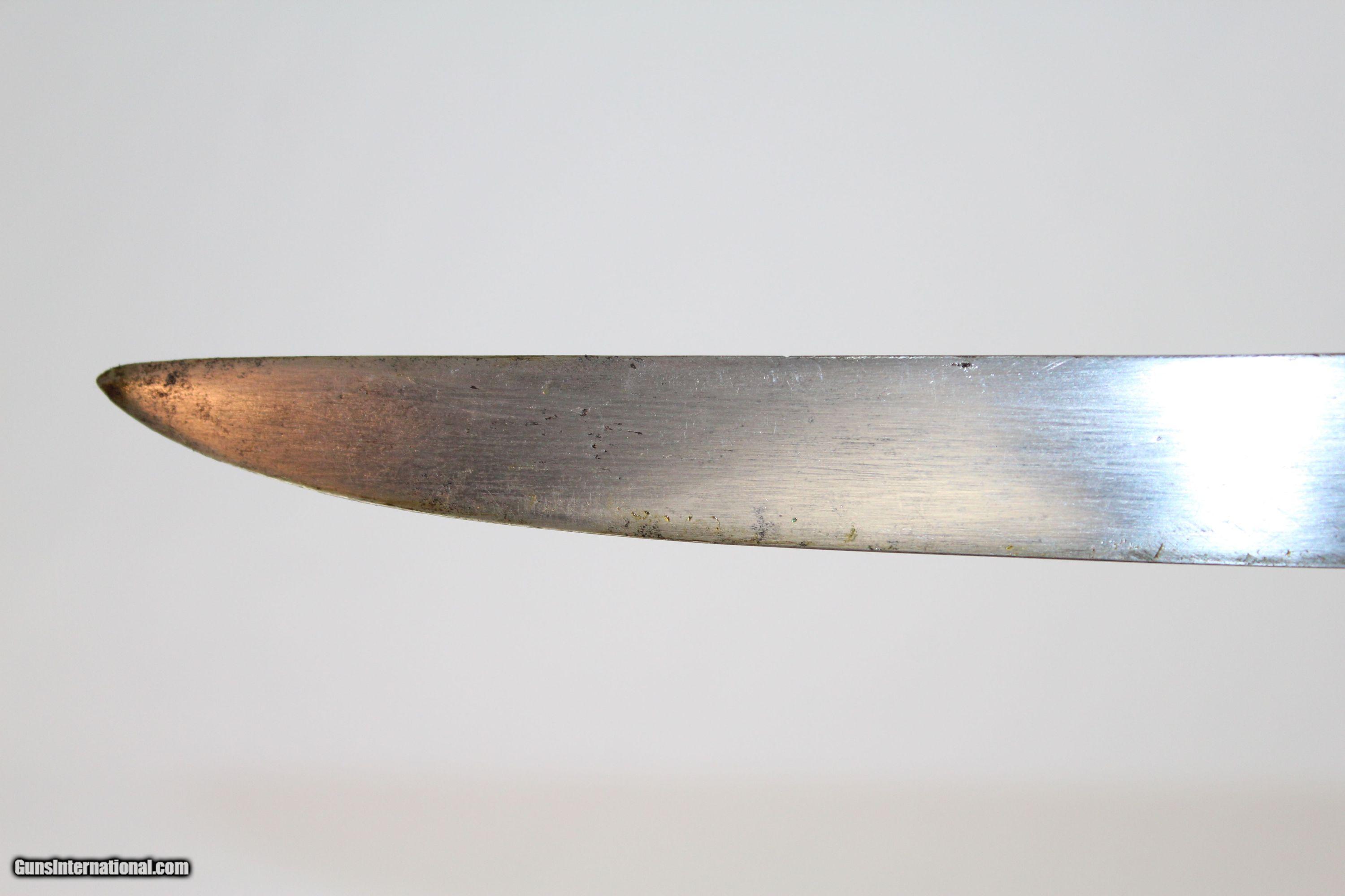 Description: Antique S&K Contract 1840 “OLD WRISTBREAKER” Saber Schnitzler & Kirschbaum of Solingen Contract Sword Here we present an antique U.S. Model 1840 “Old Wristbreaker” Heavy Cavalry Saber, made circa the 1840s by Schnitzler & Kirschbaum of Solingen, Germany. The Model 1840 was the second cavalry saber adopted by the U.S. after the M1833. The M1840 actually reached back further to the French M1822 for its inspiration. It was heavy and made for slashing during the cavalry charge with its swept back blade shape. Its moniker, “Old Wristbreaker”, was quite fitting. It served through the Mexican American War, and even though a new blade was adopted in the Model 1860 Light Cavalry Saber, the M1840 saw fighting from both the Union and Confederate points of view. S&K made these high-quality blades on contract for the U.S. government. The spine is marked “crown/proof/RC/S&K”. The hilt bears a “crown/D” proof mark. The leather grip is original, thin in places, but otherwise complete. The wire wrap and leather washer are also original. Markings are clear. The blade has a few old nicks, to be expected from a blade used in combat. The scabbard is in very nice shape. Own the original! This is a legitimate antique and not a reproduction. Overall condition as seen in photos. Very Fast. Very Safe. FREE SHIPPING WORLDWIDE. Delivered directly to your door by express mail! Guaranteed AUTHENTIC & Includes CERTIFICATE OF AUTHENTICITY. ancestryguns $1100 ? #5010 SOLD |
