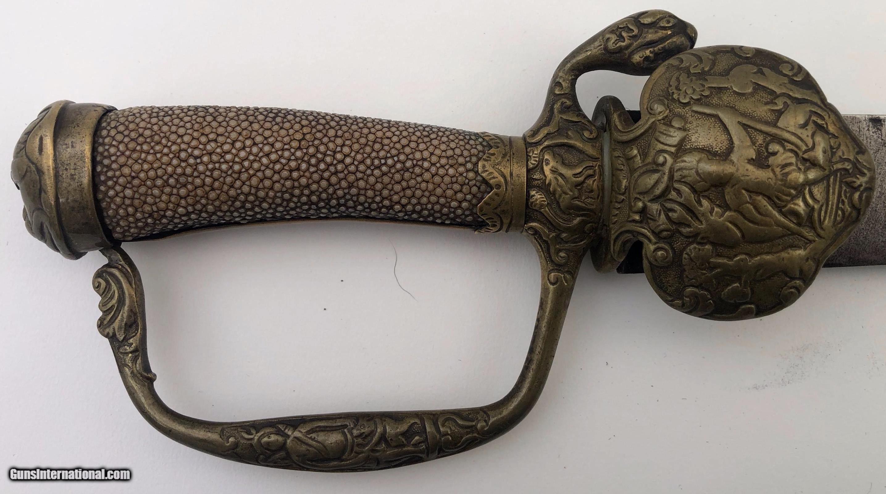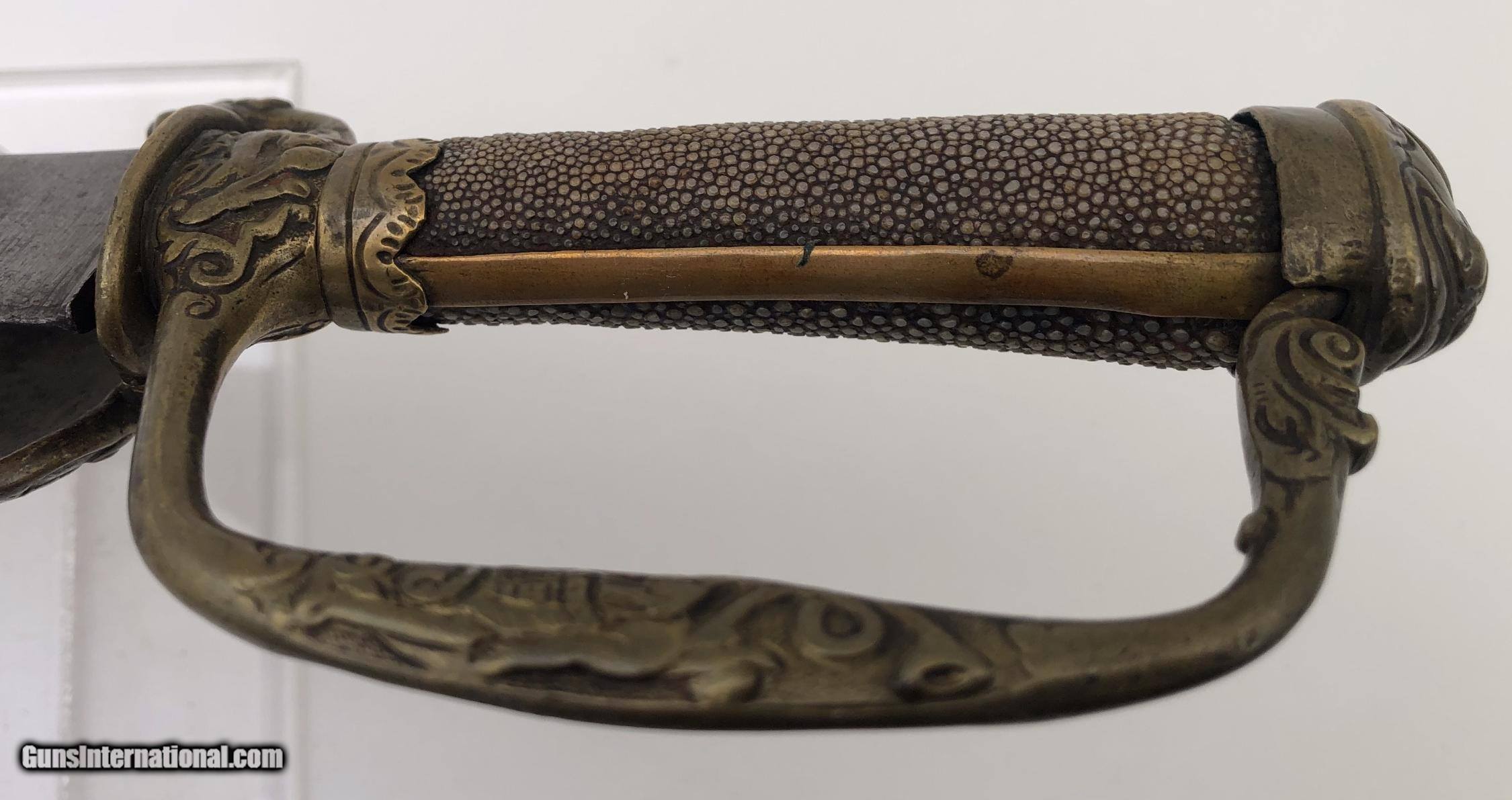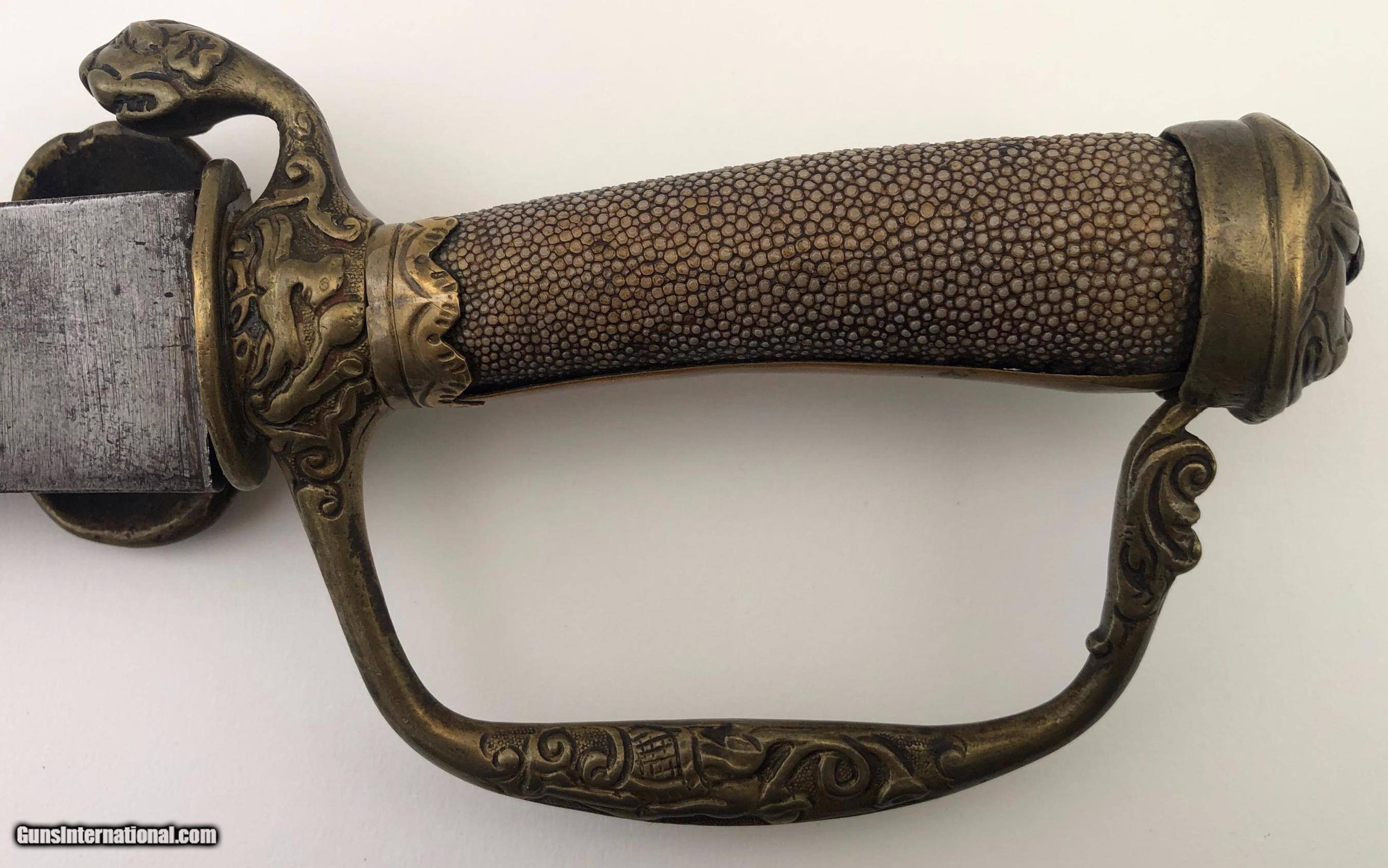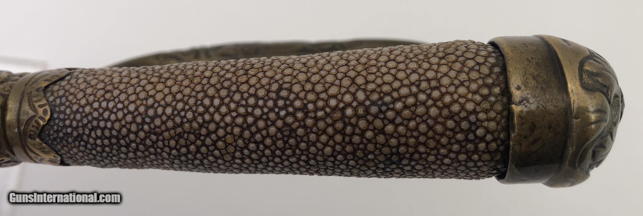 Asian 17-1800s Shagreen Handle Hunting Sword