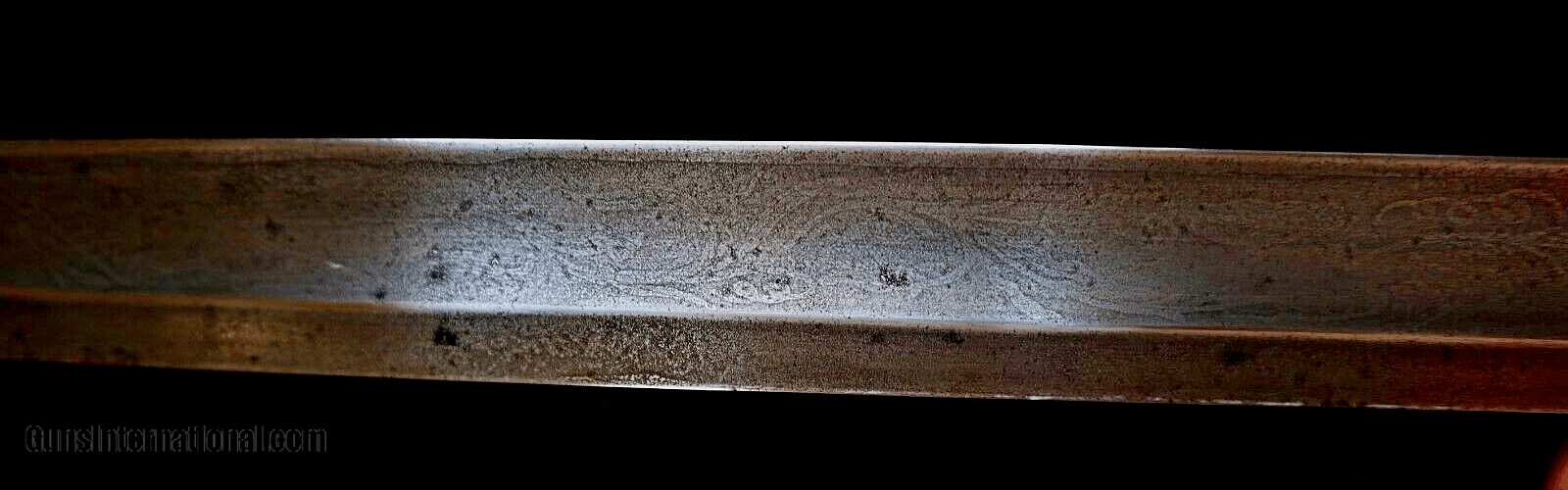 Description: PRESERVENG HISTORY, AMERICAN CIVIL WAR CONFEDERATE MOUNTED FOOT OFFICER TEXAS J C WILSON HOUSTON TEXAS SWORD FROM THE COLLECTION OF AUTHOR KEVIN HOFFMAN ONLY 5 KNOWN EXAMPLE OF THIS MOUNTED FOOT OFFICER SWORD IN EXISTANCE. DECORATED BLADE ON BOTH SIDES ETCHING IS FAINT EXTREMELY RARE SWORD AND RARE TEXAS MAKER. THIS IS A MUST HAVE FOR THE SEASONED CONFEDERATE COLLECTOR. KEVIN PAID $20,000 FOR THIS SWORD IN 1998 ONE SOLD FOR $93,750 NOVEMBER 2019 IT HAD THE CS ON THE GUARD WHEN YOU BUY THE BEST YOU WILL NEVER HAVE TO MAKE EXCUSES LATER. J.C. Wilson was in the Confederate sword manufacturing business in 1862 and is listed in the Tr-Weekly Telegraph (Houston) on September 3, 1862 as being in the process of selling his sword manufacturing equipment and stock at J.C. Wilson, Main Street (Directory of American Military Goods Dealers, Bazelon & McGuinn, Page 532, Volume 2). He is unquestionably one of the very early war Confederate sword makers whose specimens are extremely scarce and sought after. SOLD |