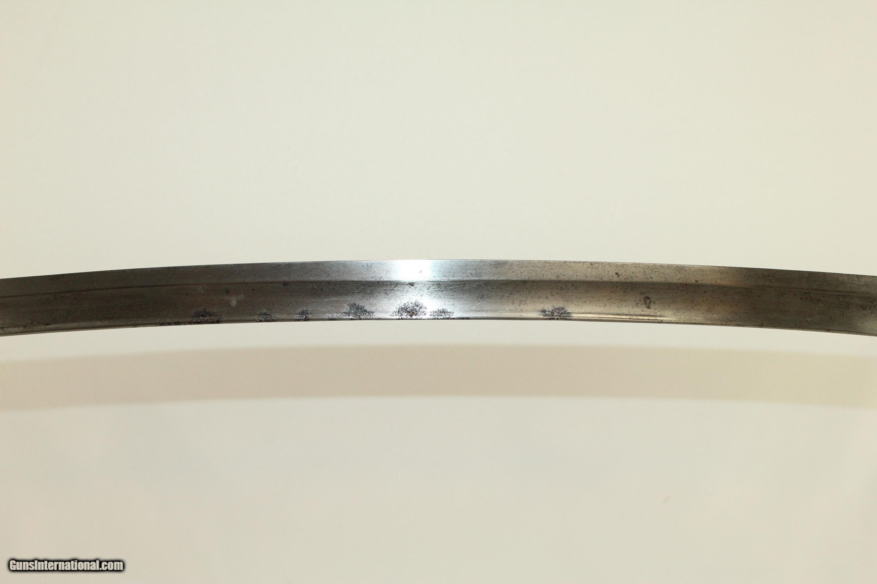 Description: CIVIL WAR US Model 1860 Cavalry Saber Union Light Cavalry Sword Here we present an antique U.S. Model 1860 Cavalry Saber, made circa 1863. 200,000 were made by Ames Mfg. Company, with others being contracted to make tens of thousands more. The M1860 has been called the “light” cavalry saber, but it is by no means small or very light. The M1860 was first issued in 1862 and was used by the Federal Cavalry through the end of the Civil War and beyond, into the Indian Wars in the American West. This specimen is marked on the right side of the ricasso with “U.S./A._._./186_”. This sword was inspected by A.D. King during the Civil War. The number “133” is also marked on the pommel and the handguard. The overall condition is very good. The blade is still bright, protected by the scabbard, while the brass has a darker patina. The leather is still intact on the handle, though the wire wrap is gone. The scabbard is in good shape but oxidized. Own the original! This is a legitimate antique and not a reproduction. Blade is 35 inches in length. Overall condition as seen in photos. Very Fast. Very Safe. FREE SHIPPING WORLDWIDE. Delivered directly to your door by express mail! Guaranteed AUTHENTIC & Includes CERTIFICATE OF AUTHENTICITY. ancestryguns $950 #30125 SOLD |