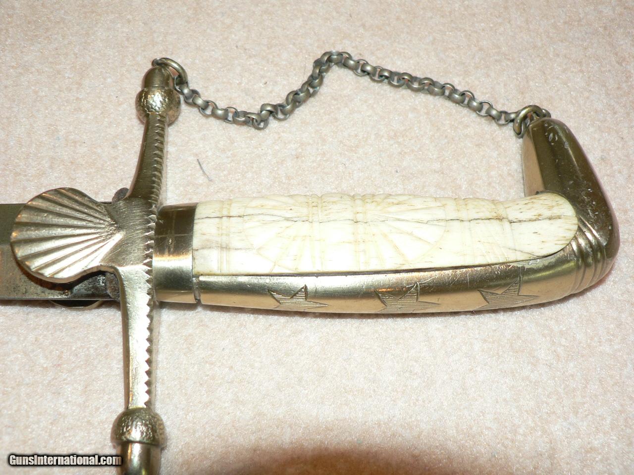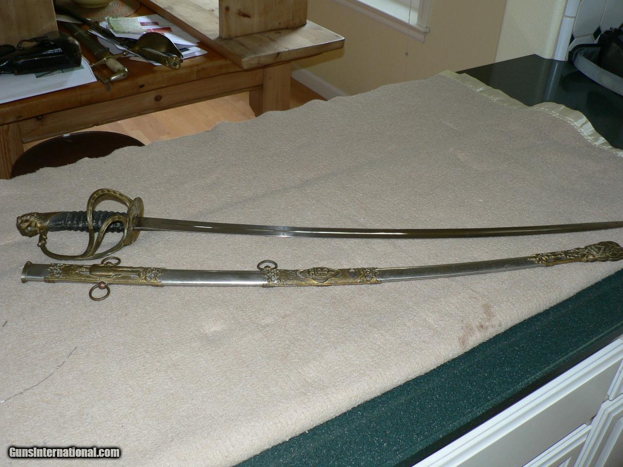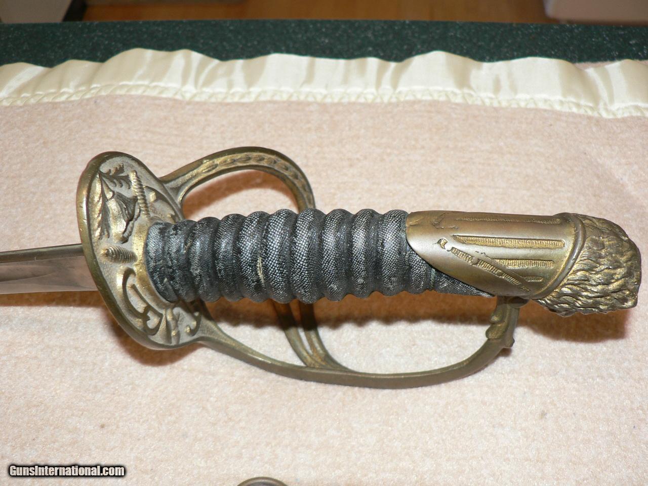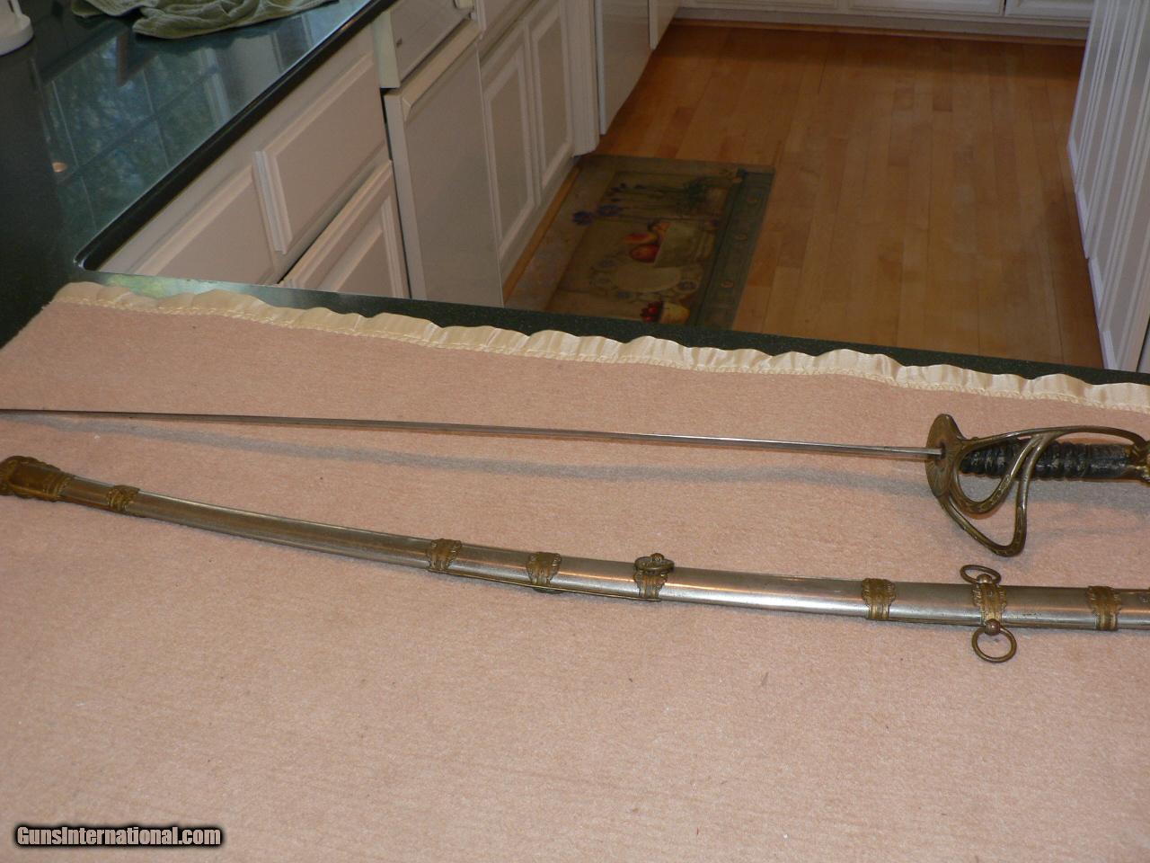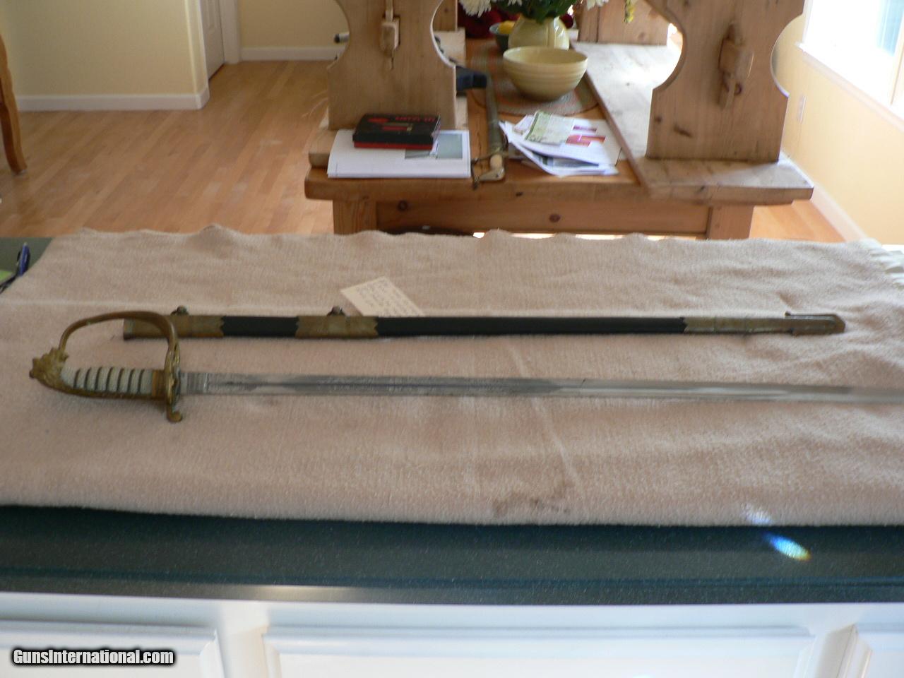 Description: Civil War Calvary Saber-lack of markings-demensions-design and engraved numbers all point to Confederate made sword-1860-64-probably by Haiman Bros. Very good condition for its age, complete with scabbard. Wire and leather intact and in good condition. Price is based on overall condition-rarity and comparable listings. $2,500. Have other swords and many other weapons for sale. Click on other ads by same seller Collector W Will ship for shipping/handling. Some trades acepted. Selling my entire collection of firearms and weapons. Over 50+ years of collecting. SOLD |