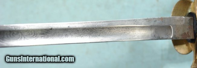 Description: EARLY MEXICAN WAR HORSTMANN & SONS U.S. MODEL 1840 NON-COMISSIONED OFFICER’S SWORD WITH RARE ETCHED BLADE CIRCA 1840’S-50’S. 35 ½” o/a with 30” floral etched blade stamped on the riccasso “HORSTMANN/& SONS” and “PHILADELPHIA” on the obverse. Incorporated in the floral motifs on each side are martial stands of flags. Brass hilt of higher quality with turned down counter with light border engraving. Very good overall and nice etching. Rare early Mexican War N.C.O. SOLD |