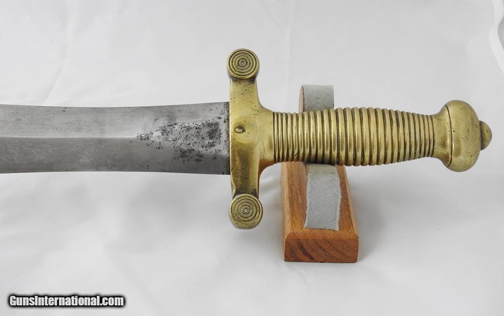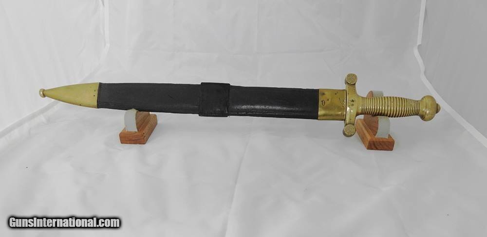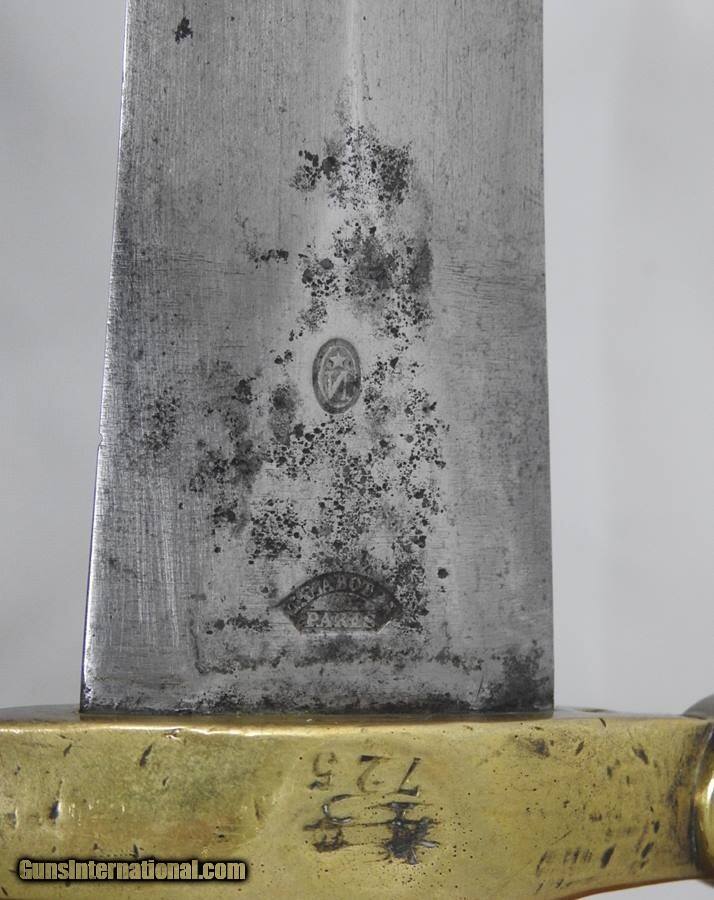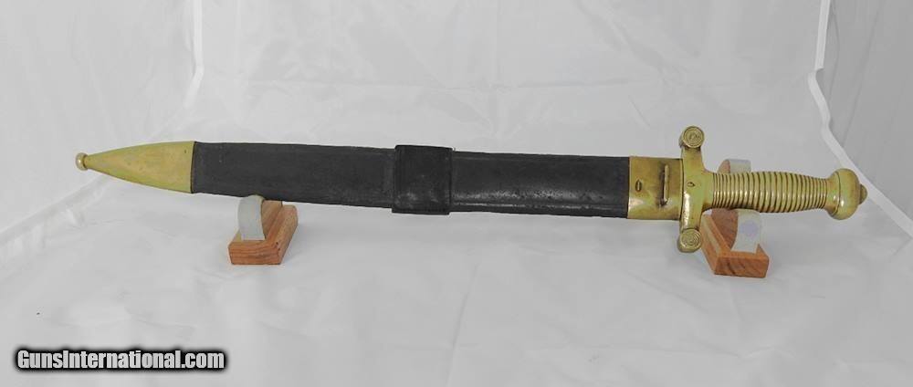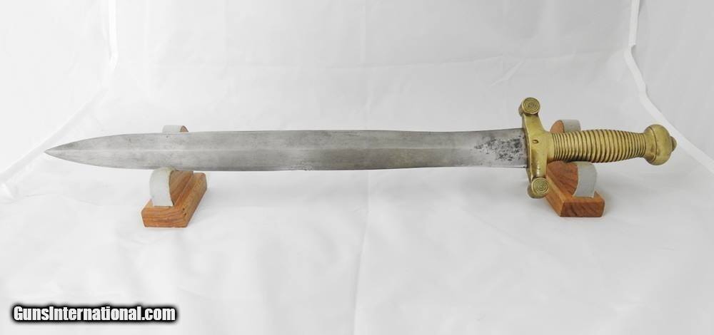 Description: This is the French 1831 Foot Artillery Sword. This was made at the Talabot Arsenal in Paris France. The sword and scabbard are number 725. The sword and scabbard are in very fine condition. I would consider trades for pre 1899 ANTIQUE PISTOLS and rifles on any of my items.. WHAT DO YOU HAVE TO TRADE? Ask about our 30-90 day lay-away program. We accept Bank Check, Money order, Personal checks or wire transfer. Price: $750.00 Contact Seller |