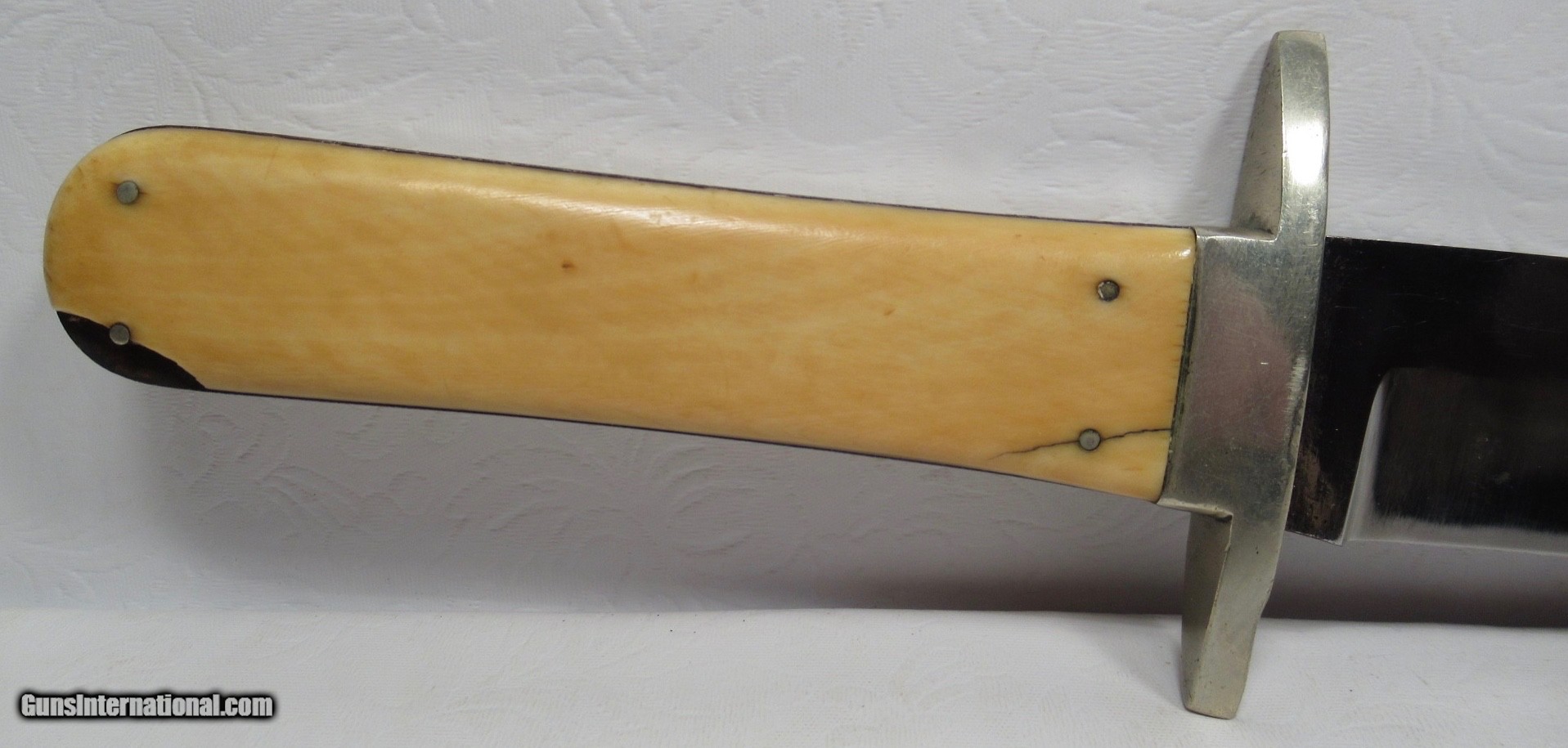 Description: Very Well Known I*XL Bowie Knife with 9 ½” Blade & Ivory Scales; Identified to John M. Heath – Co. E, 149thReg., N.Y. Vol. 3rdBrig. 2ndDiv.; Letter from Grandson; Authentic Photo of Union Solider wearing similar knife; Many Documents; Provenance William R. Williamson; Frank Trzaska; Tommy Knox; No License Required for Shipping; from my own personal collection; Price includes insured shipping; SOLD |
