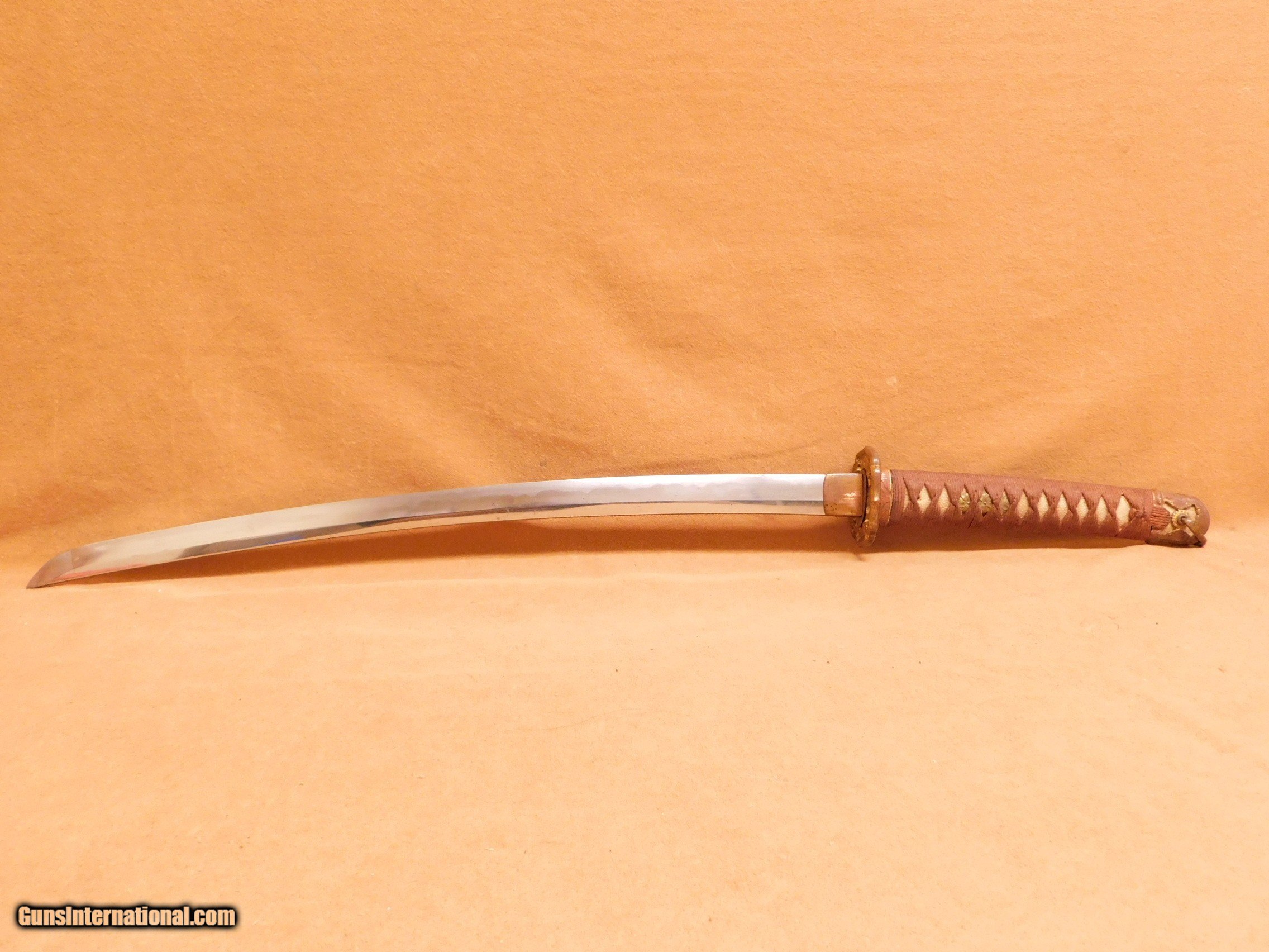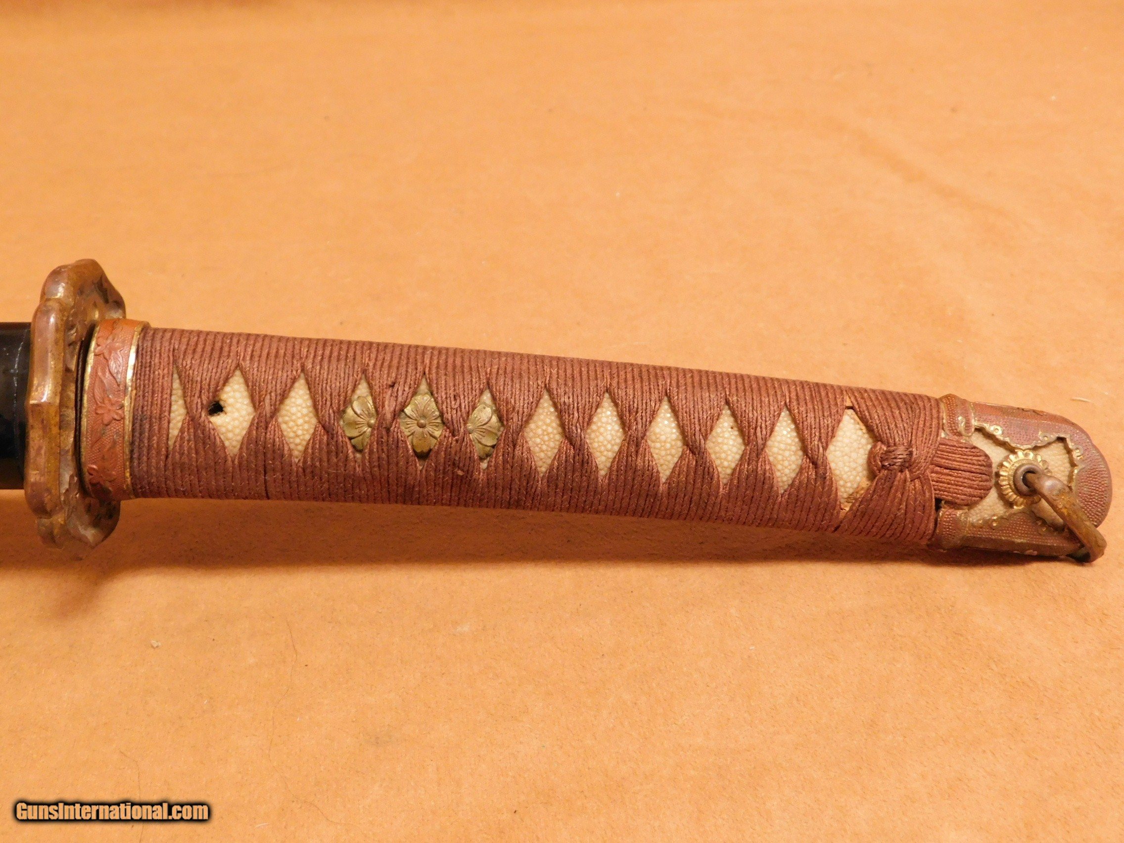 Description: This is a Koto-era O-wakizashi. Its blade measures 22-1/8", or 56 cm, with a 21-1/4" cutting edge and a 5.2" tang. It is an early blade that is signed by Mihara ju Masahisa, a known maker from the Bingo province, and is estimated to have been made between 1550 and 1575. Kanji is present on both sides, but only one side is legible. This sword is mounted in Gunto mounts and a sword-length scabbard. All items are also available for sale in our brick & mortar store and are subject to prior sale. Think long, think wrong. Payment On firearms, we typically only accept credit cards or money orders/cashier's checks.