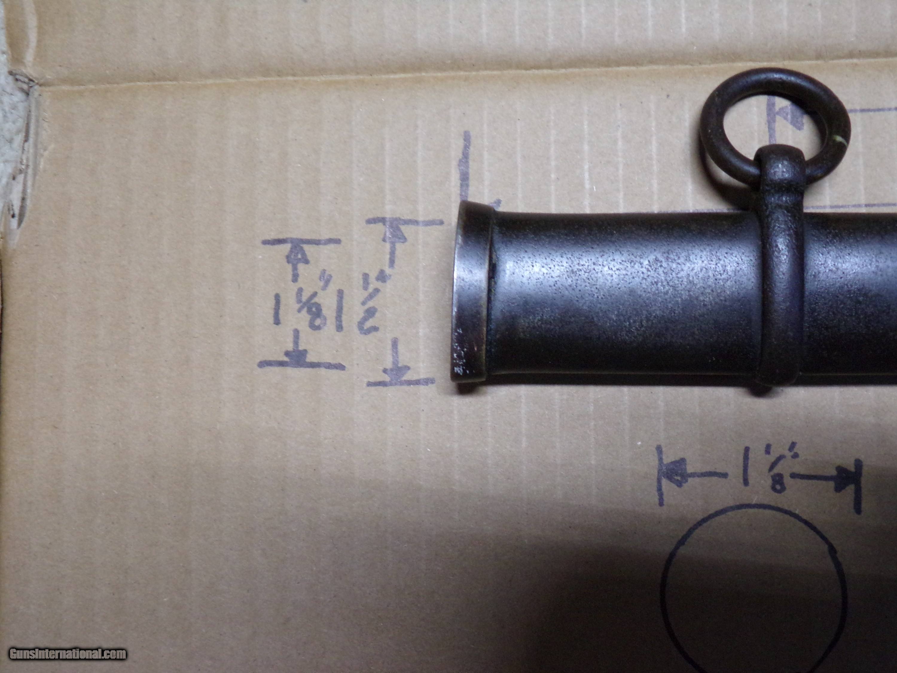 Description: M 1840 cavalry sword scabbard in original condition with no dents(rare)Scabbard is unmarked with 100% patina throughout and unrefinished.Measurements are included in one of the pics.Buyer pays $25 shipping /insurance SOLD |