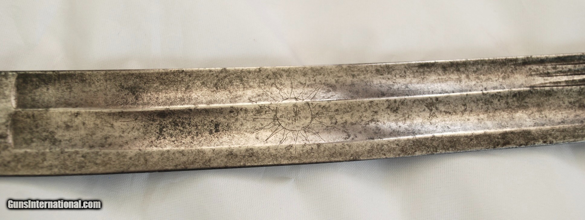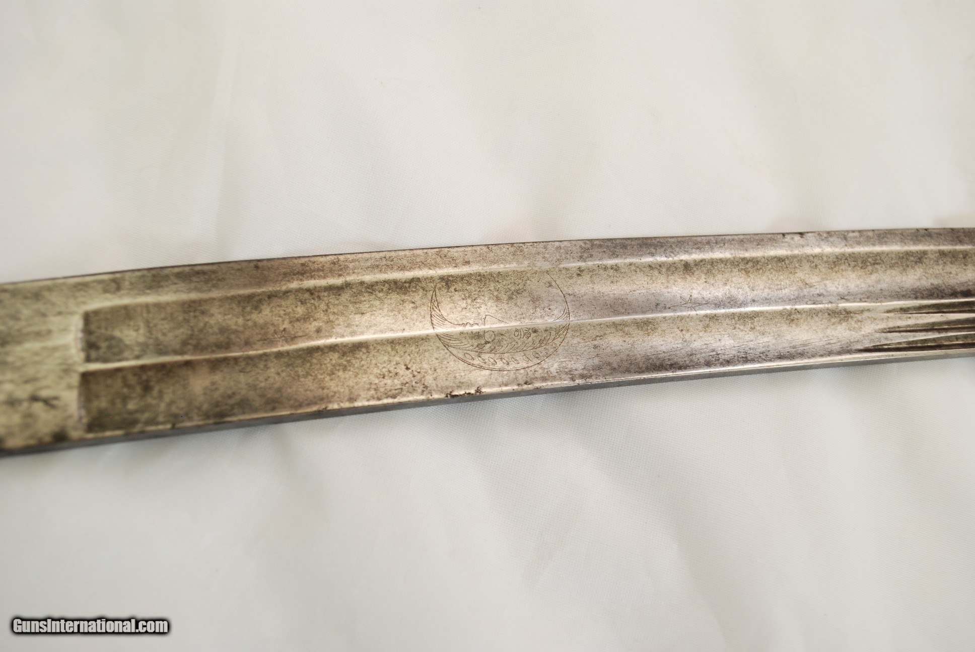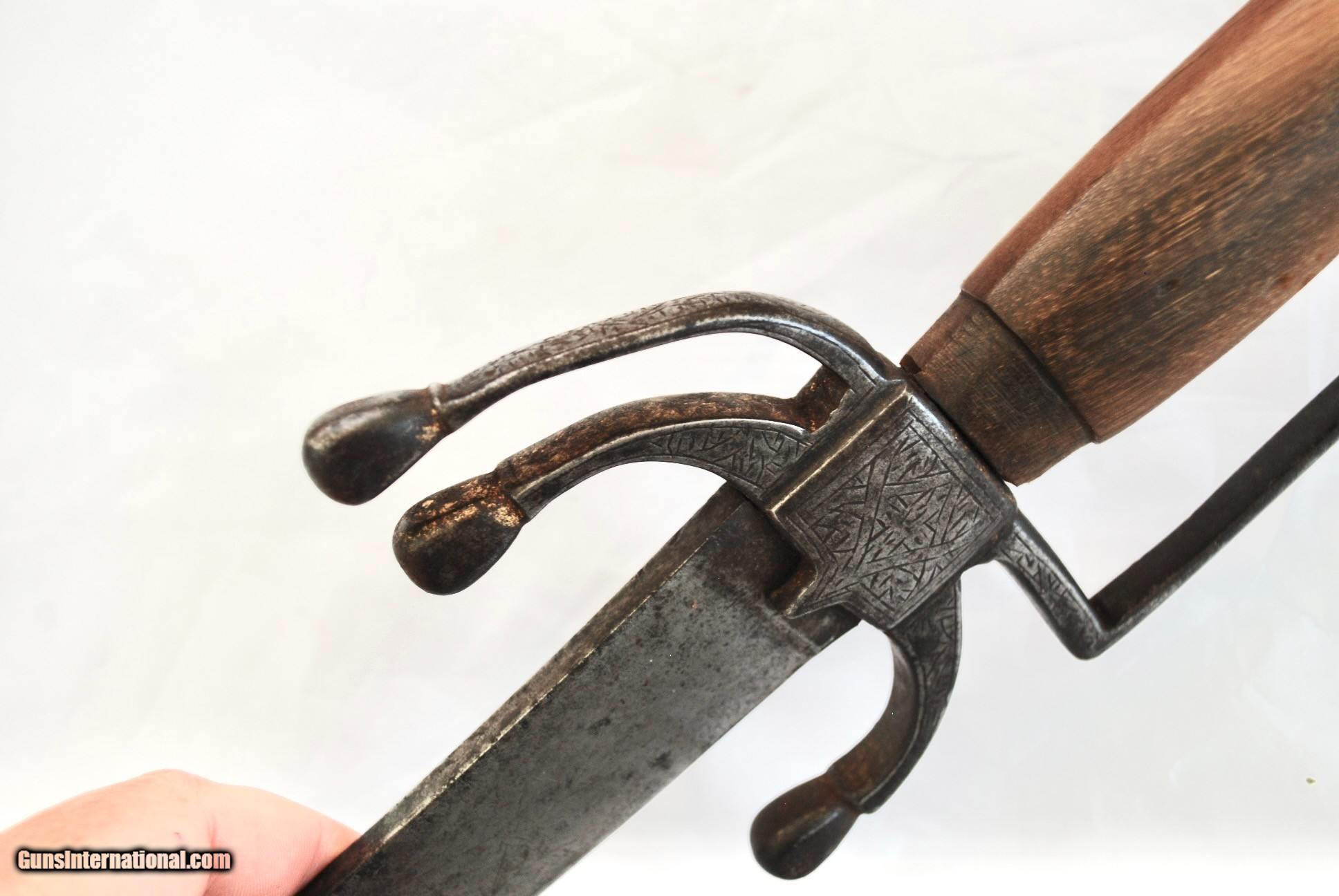 Description: This Nimcha sword is 40" overall with a 32" high quality European blade and an exquisite Rhino horn handle which is one of the rarest and most desirable materials on earth now, IT IS WORTH MORE THAN ITS WEIGHT IN GOLD OR DIAMONDS, look it up. ://newsroom.ucla.edu/releases/which-is-most-valuable-gold-cocaine-or-rhino-horn. The sword handle was obviously made well before rhino horn trade was banned. Overall condition is very good, leather held up surprisingly good, there are traces of gold wash on the handle;the sword was obviously made for a wealthy and influential individual. Npo international shipping on this one. Visa/MC add 3%. Thanks check my other listings. SOLD |