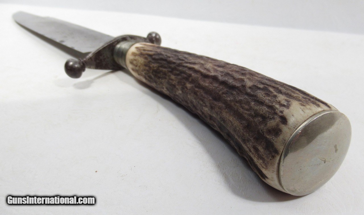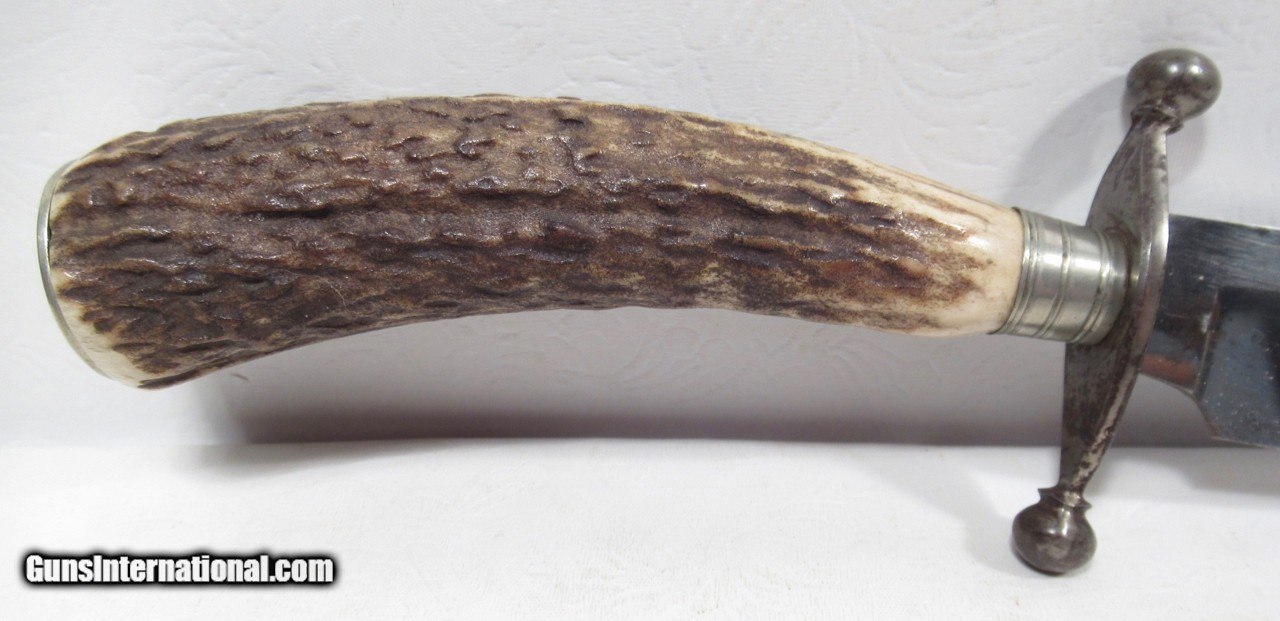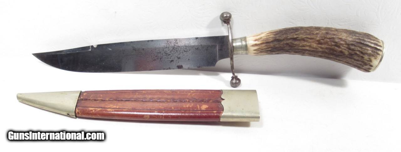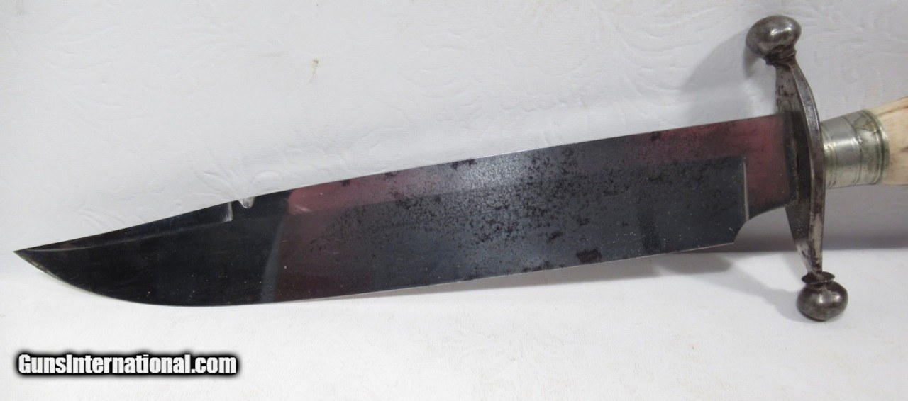 Description: SOLD-Very Nice Bowie Knife with 7 ¼” Clip Point Heavy Blade; 3/16” Thick; Nice Original Sheath; Stage Handle; 12 ½” L.O.A.; See All Photos for Condition; No Texts. Call or Email Only; PERSONAL PROPERTY of Harold Wieser; Price: $975 + $45 S&H Via FedEx Express; Price includes insured shipping; return policy: three days inspection from the date the item is received; full refund of shipping both ways ONLY IF THE ITEM IS MISREPRESENTED. SOLD |