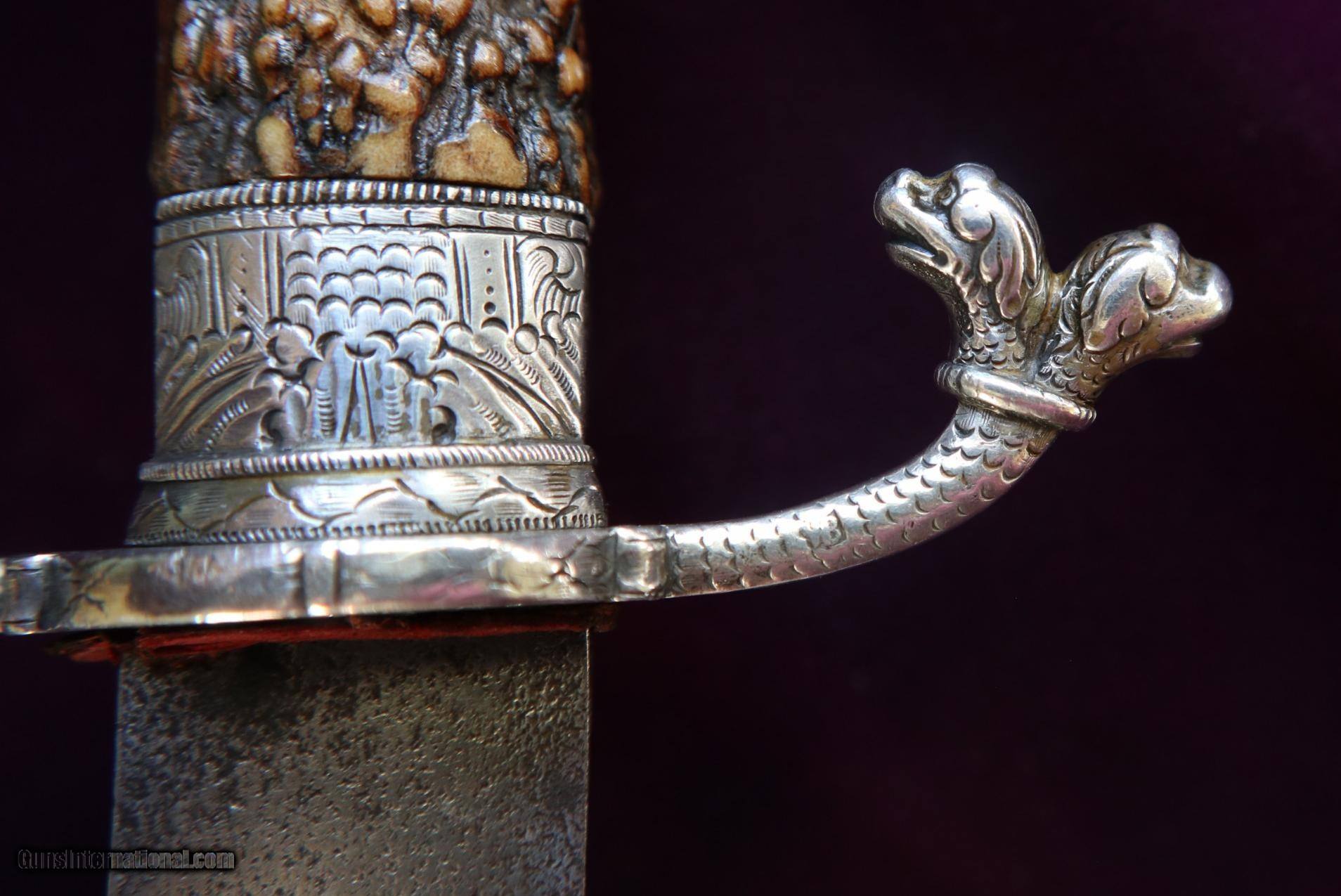 PRE FRENCH INDIAN WAR REVOLUTIONARY WAR DOG HEAD SILVER HILT SWORD CA 1670