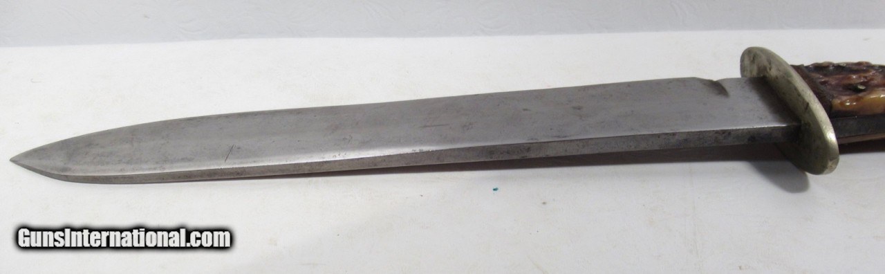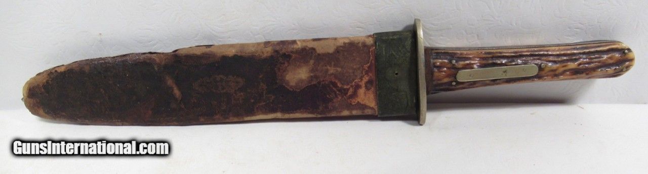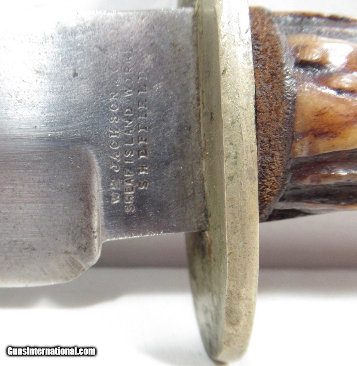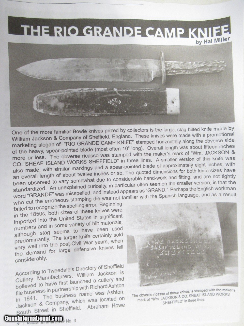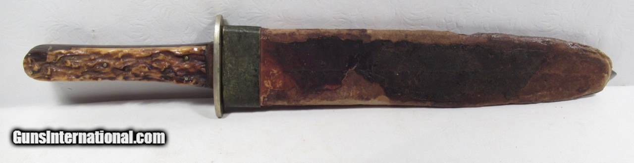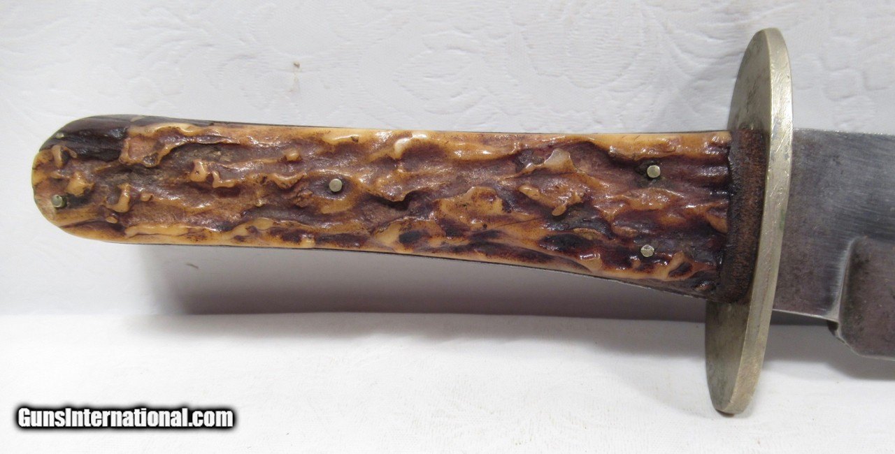 Description: William Jackson & Co. Bowie Knife; 10” Spear Point Blade; 15” L.O.A.; Stag Hilt; Marked “Rio Grande Camp Knife” on Obverse Blade; Circa 1850; See All Photos for Condition; No Texts. Call or Email Only; PERSONAL PROPERTY of Harold Wieser; Price: $3,475 + $45 S&H Via FedEx Express; Price includes insured shipping; return policy: three days inspection from the date the item is received; full refund of shipping both ways ONLY IF THE ITEM IS MISREPRESENTED. SOLD |