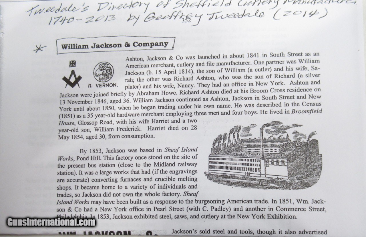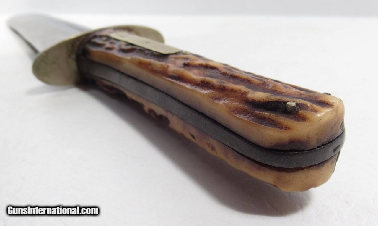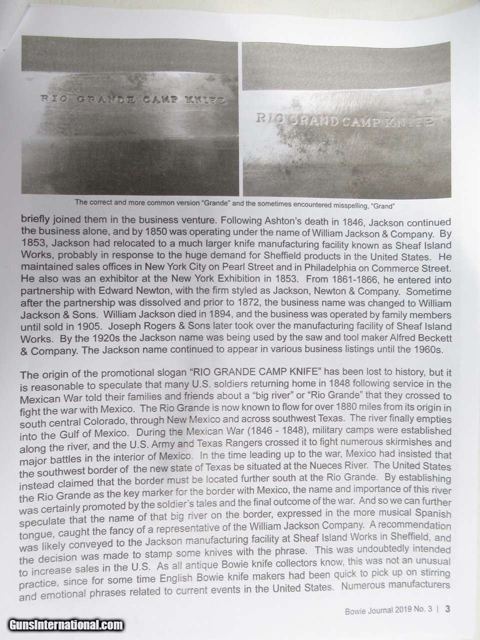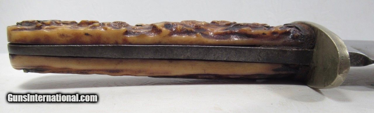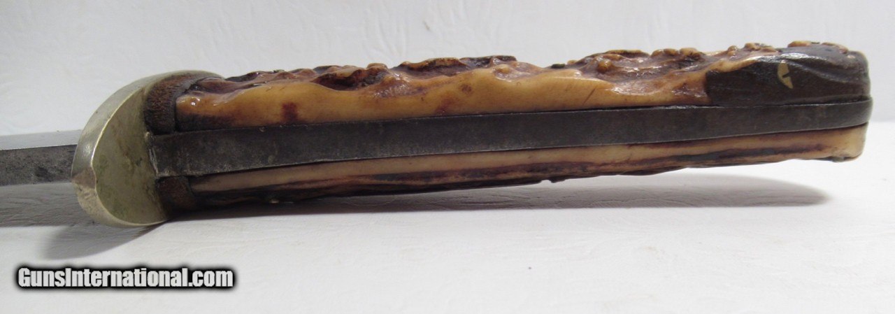 Description: William Jackson & Co. Bowie Knife; 10” Spear Point Blade; 15” L.O.A.; Stag Hilt; Marked “Rio Grande Camp Knife” on Obverse Blade; Circa 1850; See All Photos for Condition; No Texts. Call or Email Only; PERSONAL PROPERTY of Harold Wieser; Price: $3,475 + $45 S&H Via FedEx Express; Price includes insured shipping; return policy: three days inspection from the date the item is received; full refund of shipping both ways ONLY IF THE ITEM IS MISREPRESENTED. SOLD |