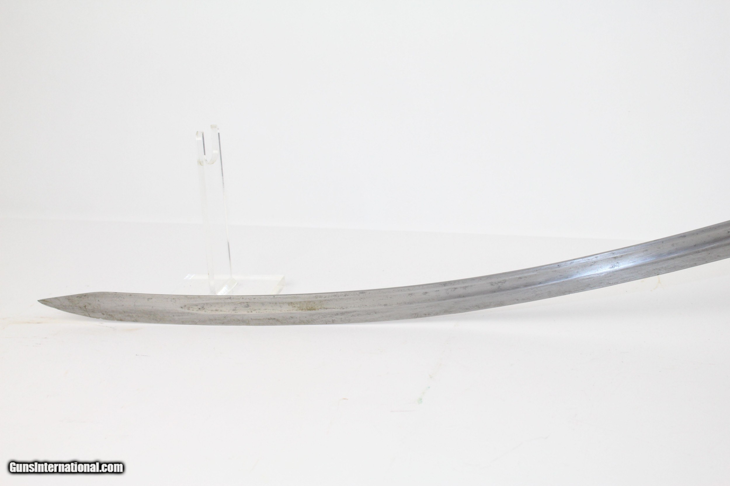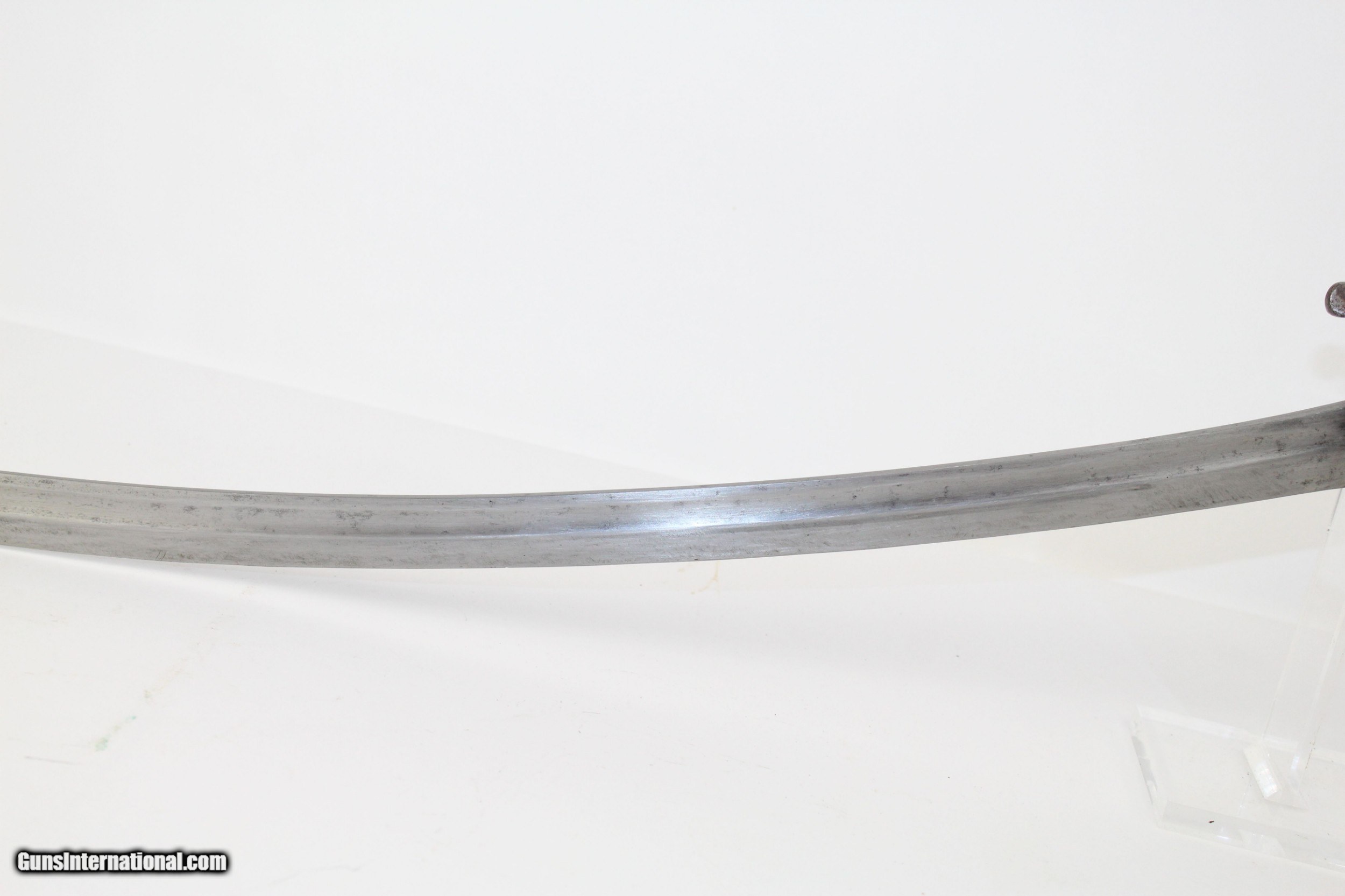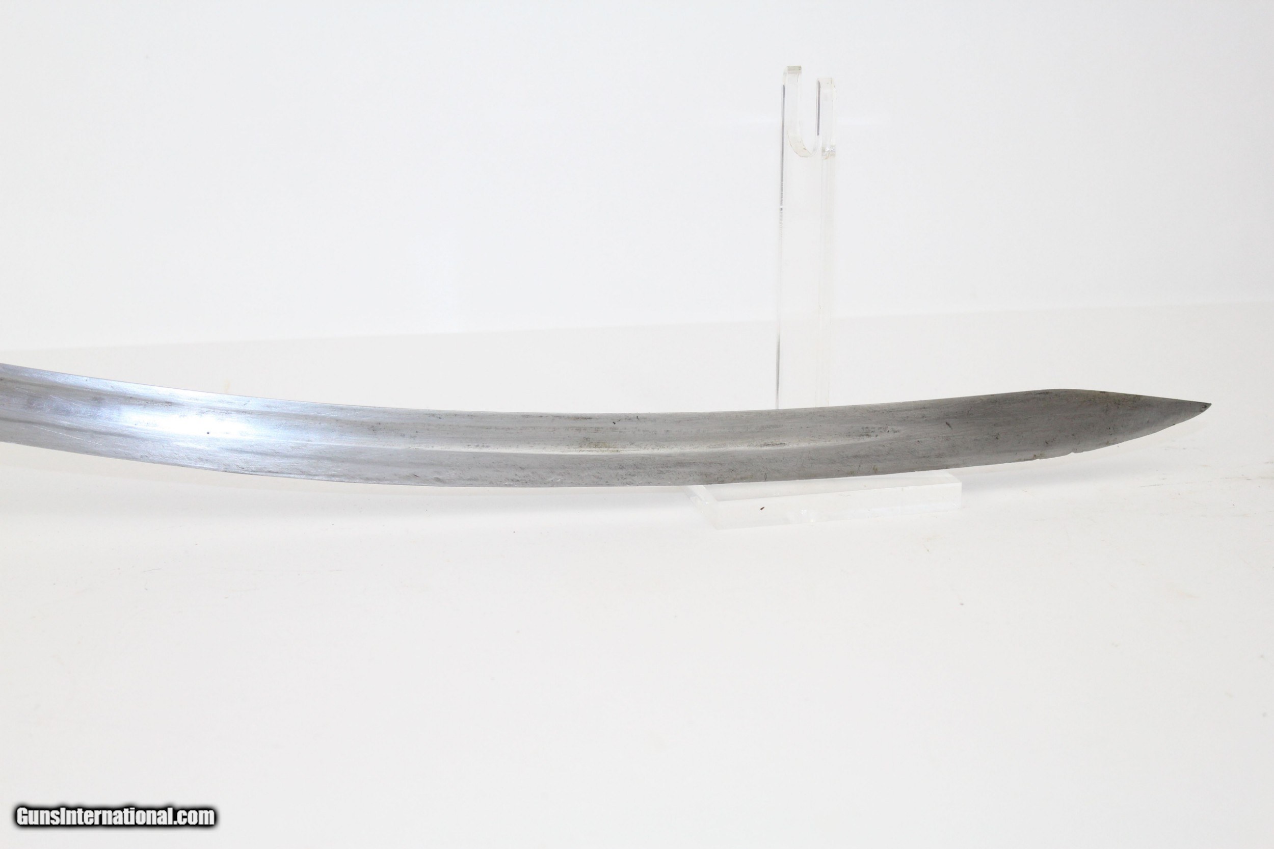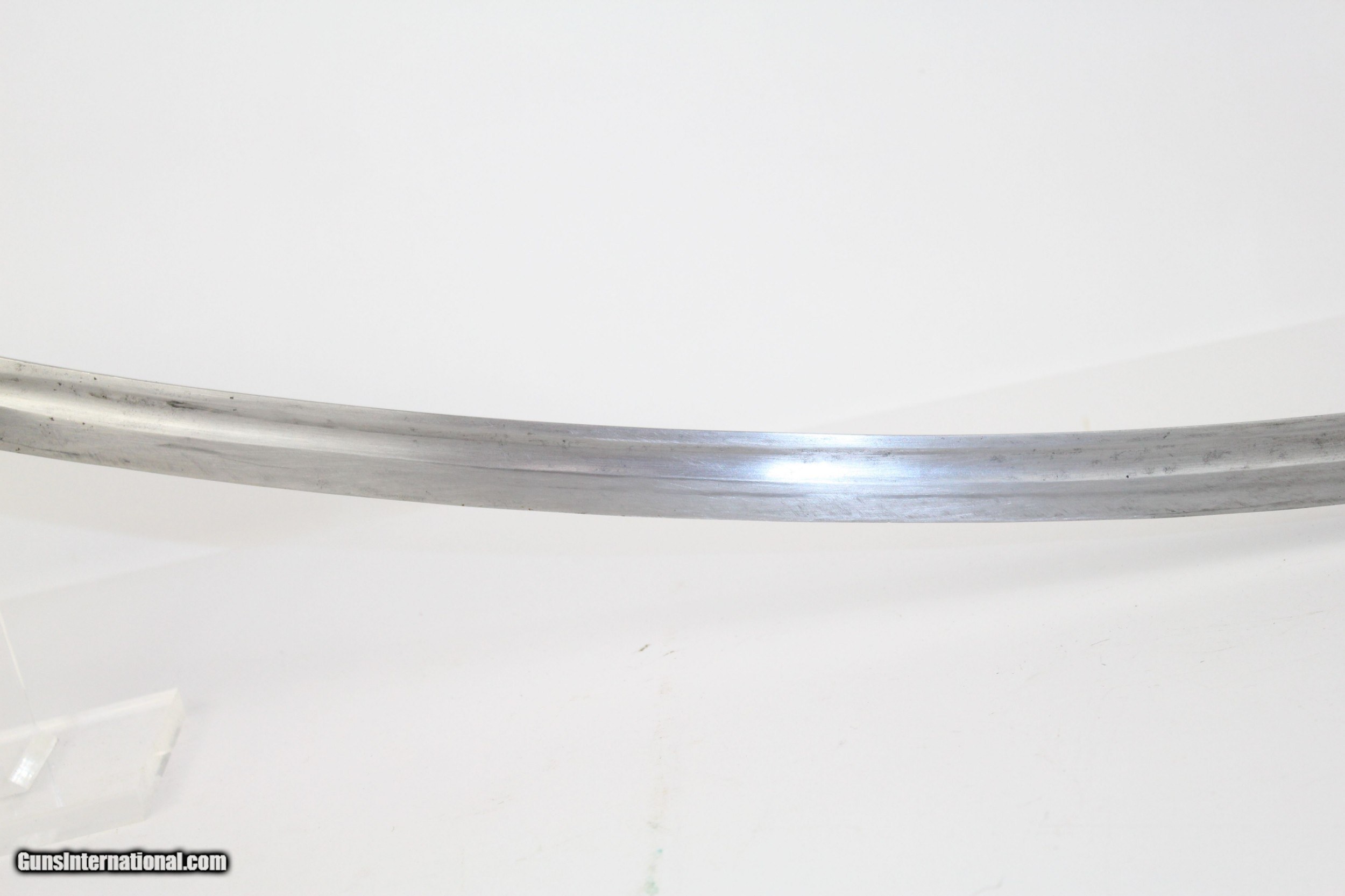 Description: SCARCE Antique STARR 1818 Contract Cavalry SABER Dated “1821” & Inspected by Luther Sage Here we present an antique U.S. Starr 1818 Contract Cavalry Saber, made in 1821 by Starr in Middletown, Connecticut. Only about 10,000 were produced. This cavalry saber is very similar to the 1812 Contract version, which was based on the British Pattern 1796 Dragoon Saber. This saber features a wide, curved blade and a simple stirrup style guard. The knuckleguard is dated “1821”. The ricasso is marked “US/P/LS/N.STARR”. The inspector’s initials are those of Luther Sage. The overall condition is very good. The blade length is 32 inches and remains bright. The markings are clear. The iron hilt and scabbard have a dark gray patina. The black leather grip is still very much intact. Here is a great example of a scarce US Saber! Own the original! This is a legitimate antique and not a reproduction. Overall condition as seen in photos. Very Fast. Very Safe. FREE SHIPPING WORLDWIDE. Delivered directly to your door by express mail! Guaranteed AUTHENTIC & Includes CERTIFICATE OF AUTHENTICITY. ancestryguns $950 #7136.1 SOLD |