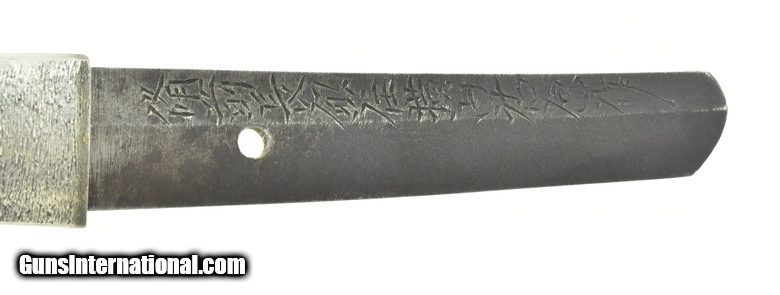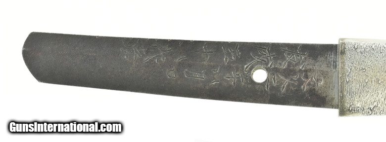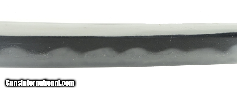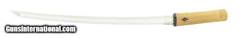 Description: Suke Kane Wakisashi This is a finally forged wakizashi that is inscribed Bizen Osafune Ju Yokoyama Suke Kane Saku. On the reverse of the Nakago (tang) is the inscription: Tomonari Go Ju Hachid Mago. This means that the smith is the 58th generation of Tomonari. Actual genealogy across 58 generations cannot be expected, so this is a self-styled continuation of the work left behind by the ancestor Tomonari. Also, inscribed is the date of Bun-Kvu Ninen hachi gatsu (August of 1862). The Nagasa (cutting edge) is 45.7cm (18”). This blade features a distictive choji midar with profuse nie. It is in old Shirasaya with horn with a silver foil habaki. Reference: Hawley, p. 764; Shinto Jiten, p. 482. This is a full “in polish” Wakizashi in a fine Shira Saya (resting case). Beautiful sword! SOLD |