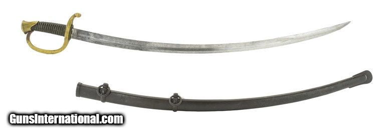 Description: U.S. Model 1840 Artillery Saber. Made in 1861, for the Civil War, by Ames. Scabbard is very good, no dents or dings. Ricosso is marked “US ADK 1861” on one side and marked “Made by Ames MFG Chicopee Mass” on other. Wire wrap and leather are intact and excellent. Very good plus condition overall. A fine Civil War saber. SOLD |