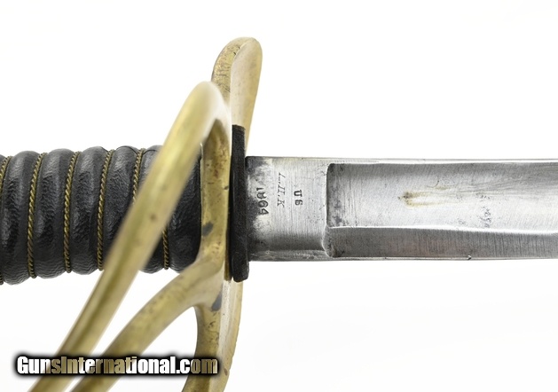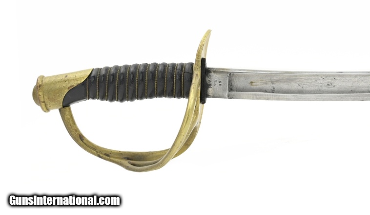 Description: U.S. Model 1860 Cavalry Saber. Ricasso is “LHK” inspector marked and dated “1864”, with a faint “Ames” marking. Blade is approximately 34” with some minor nicks. Leather wrap and wire are excellent. Very good overall condition. Civil War saber. SOLD |