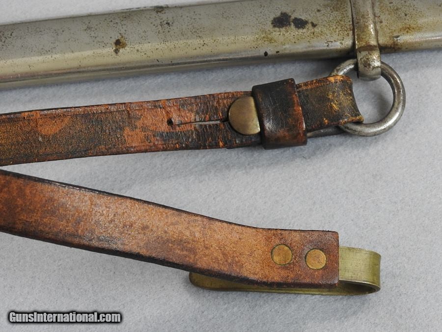 Description: This is a very nice Civil War U.S. Model 1860 Calvary Saber by C Roby and is dated 1864 with crisp markings. The wire and leather grip are very good condition and blade is very fine. There are no dents or damage to the scabbard. The very good condition blade is 35” long and is 41” overall in length. The leather grip is very good condition. One of the leather hangers appears to be original and the other strap looks to be replaced. Both of the brass hooks are original. I would consider trades for pre 1899 ANTIQUE PISTOLS and rifles on any of my items.. WHAT DO YOU HAVE TO TRADE? Ask about our 30-90 day lay-away program. We accept Bank Check, Money order, Personal checks or wire transfer. SOLD |
