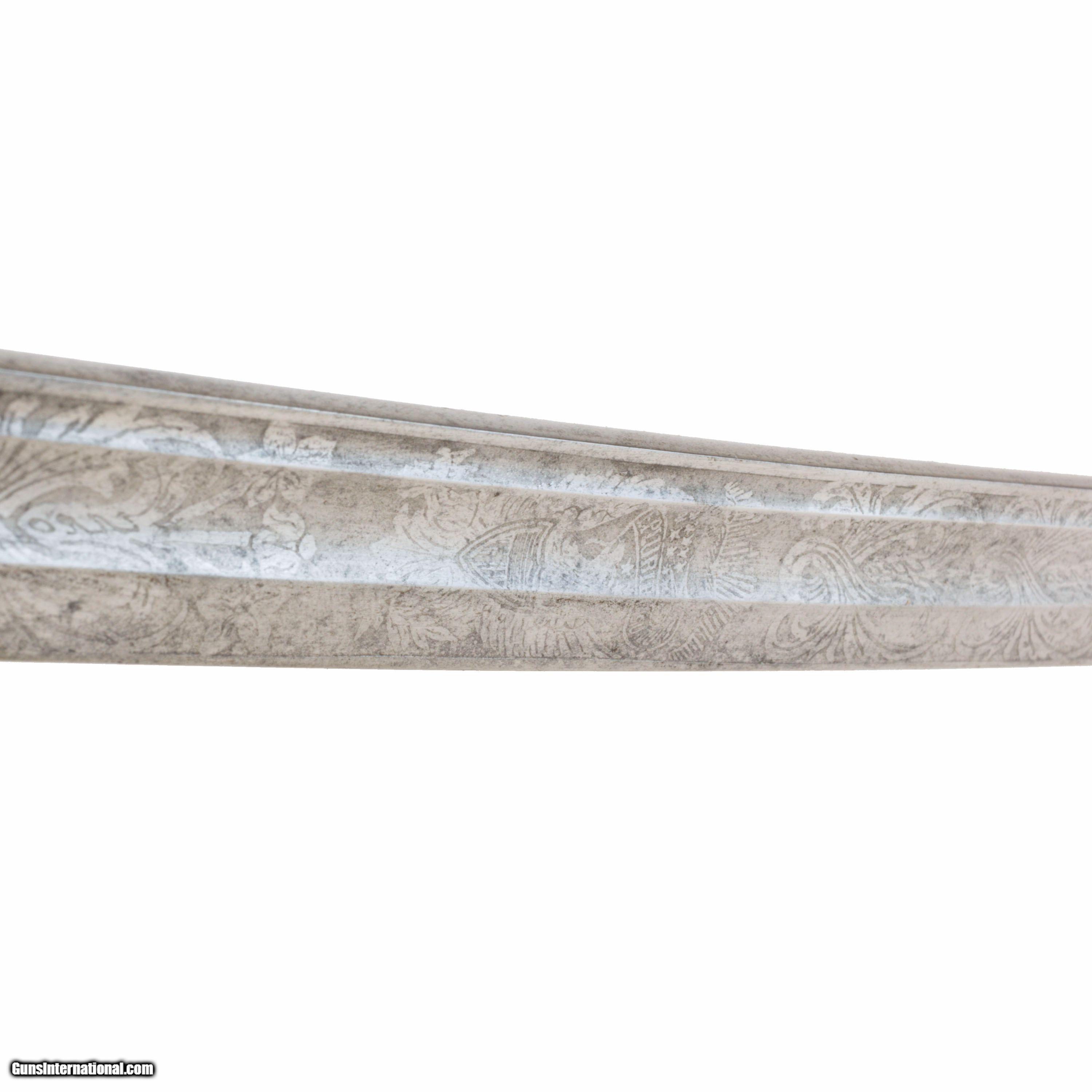 Description: US Model 1872 Sword The blade is decorated with "US" and spread eagle surrounded by floral sprays. Complete with original scabbard. PERIOD: 1872 ORIGIN: US SIZE: 31 1/2" blade, 35" total length SOLD |