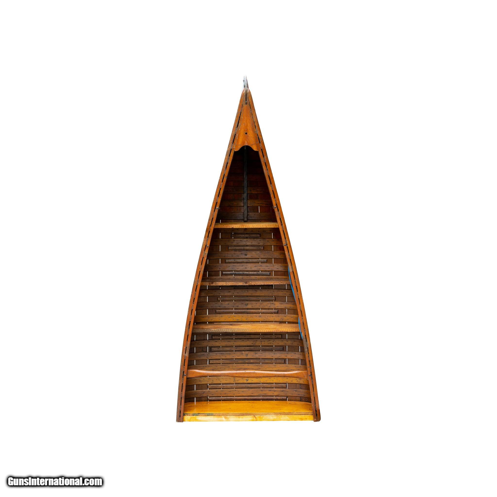 Description: Lighted canoe shelf from a 19th Century canoe with three shelves plus bottom. Once had a skin, now removed and shellacked. A match for item AG0815. Great for decor in a rustic home, mountain or lake cabin, or modern home. Size: 6’4”x 36’W x 15”deep Family Owned & Operated Cisco’s Gallery deals in the rare, exceptional, and one-of-a-kind pieces that define the history of America and the Old West. Our pieces range from American Indian to Cowboy Western and include original items of everyday life, commerce, art, and warfare that tamed America’s frontier. Our 14,000 square foot gallery opened in 1996 in beautiful Coeur d’Alene, Idaho. Personal Service Cisco’s operates on old fashioned values – honesty and integrity, and all of our items are backed by our money back guarantee. We appreciate the opportunity to earn your business. Whether you desire assistance with a jewelry purchase, choosing a gift, identification, or even selling – we hope to be your trusted source. SOLD |