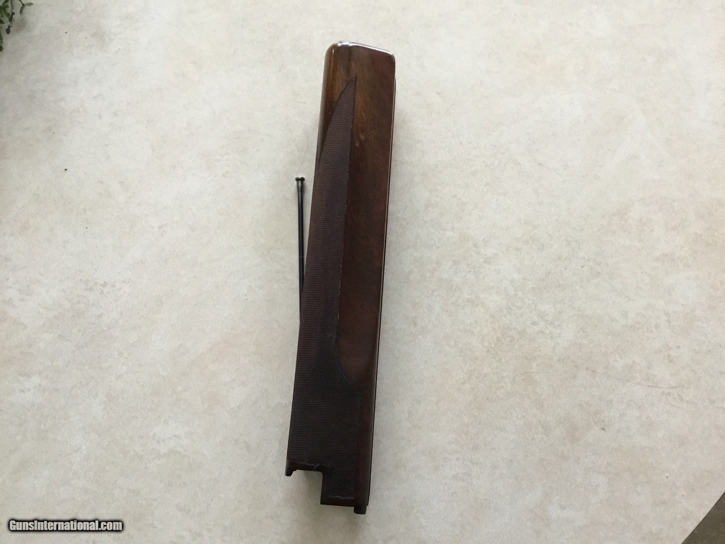 Description: Browning Superposed 12ga. Skeet forearm-early 70’s with front screw. Fine checkering. Couple slight indentations on left side, otherwise perfect SOLD |