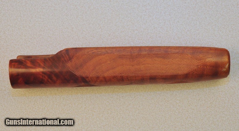 Description: Cutom aftermarket beavertail forearm of fancy walnut. Hand checkering in Double Diamond Deluxe pattern. Very good finish. No cracks or damage. SOLD |