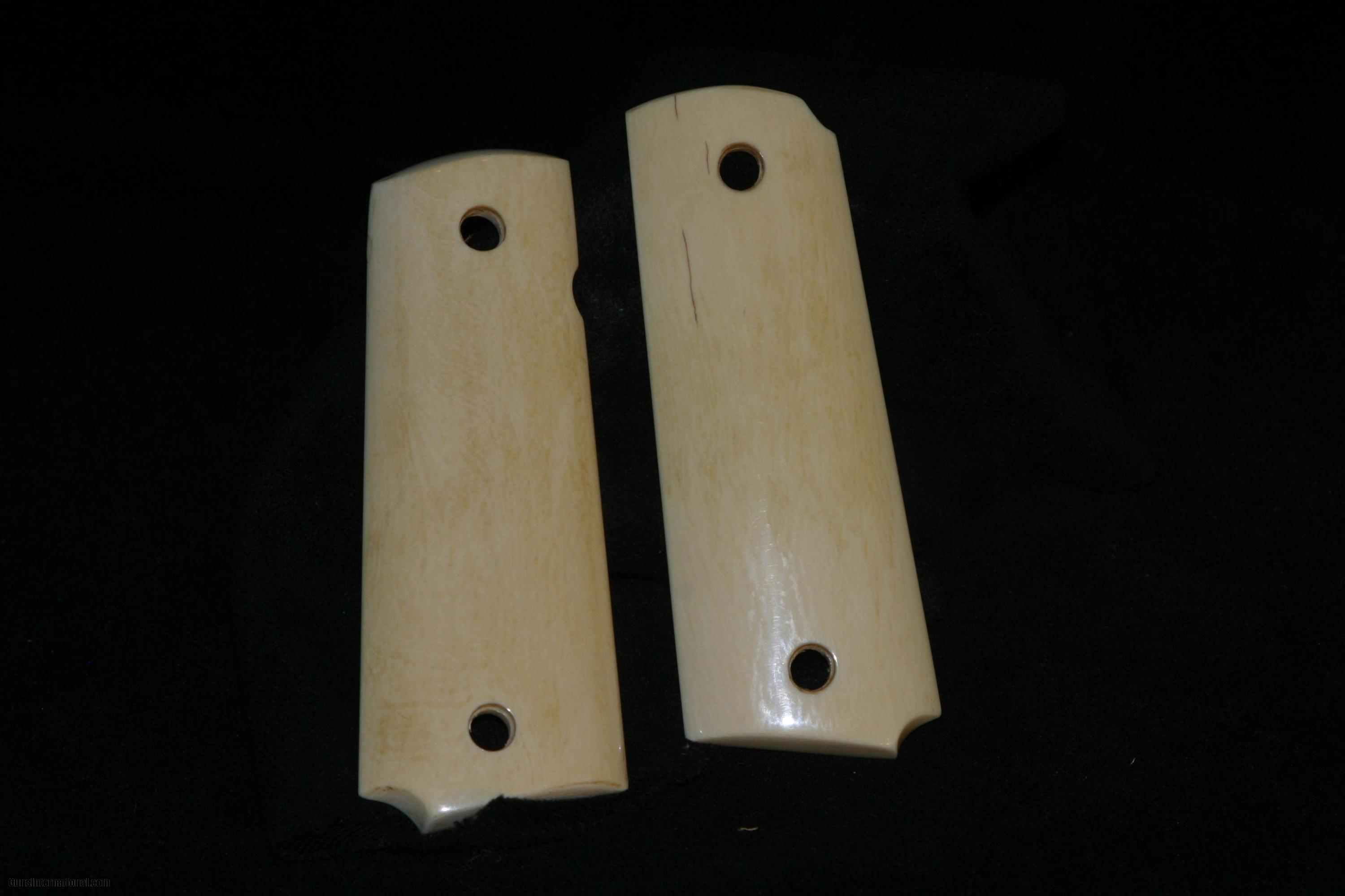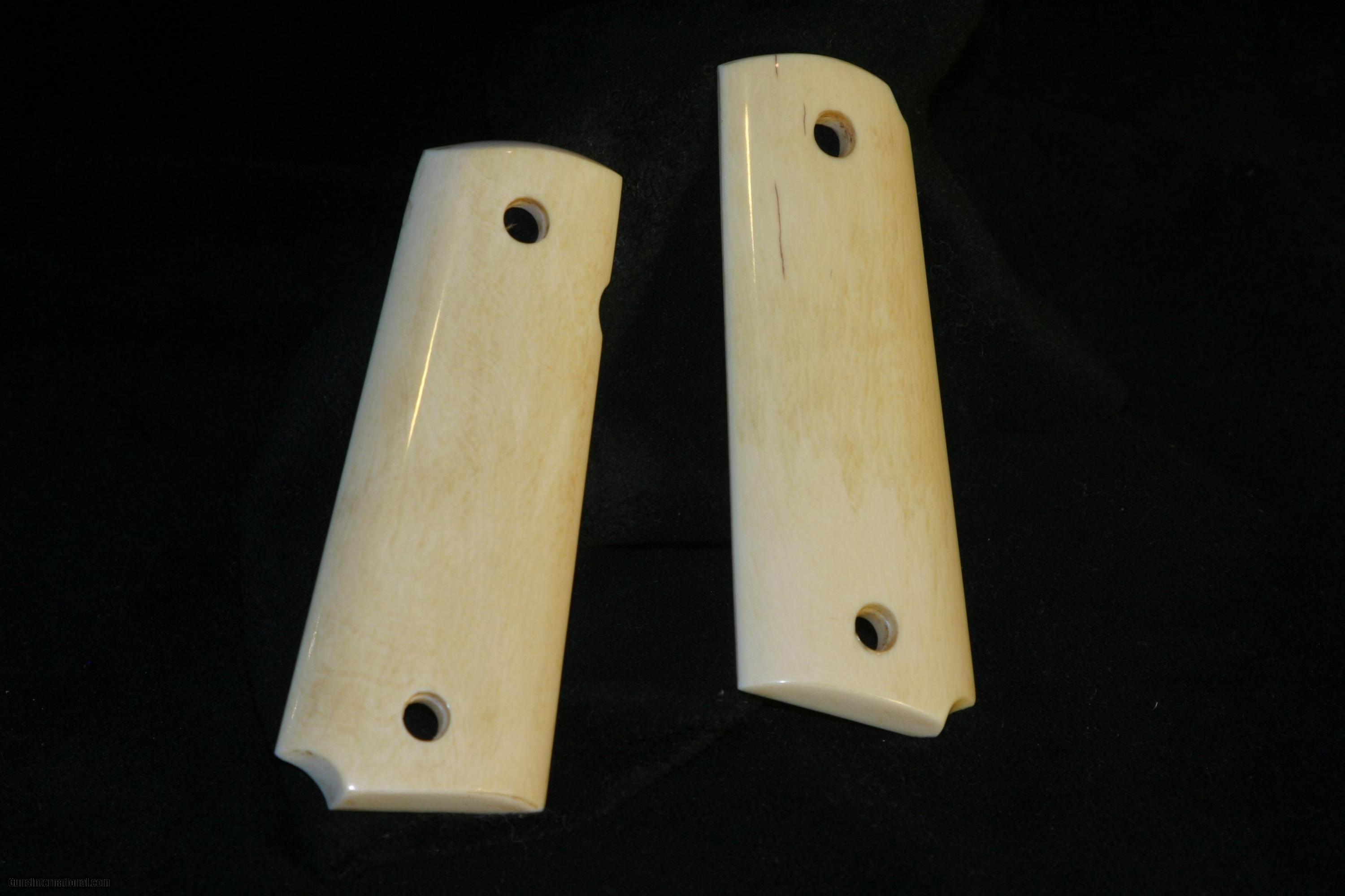 Description: Pre-ban Elephant Ivory 1911 full size and Commander 1911. Fitted,but not used,antique finish. Excellent color and condition Below Market value....!! SOLD |